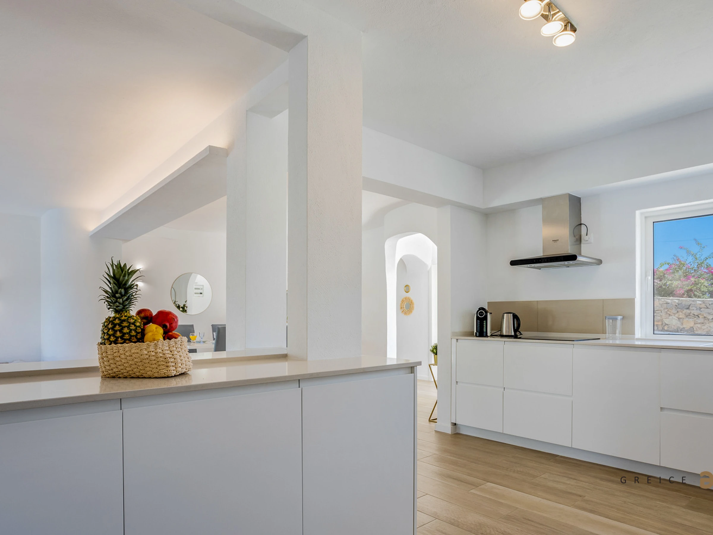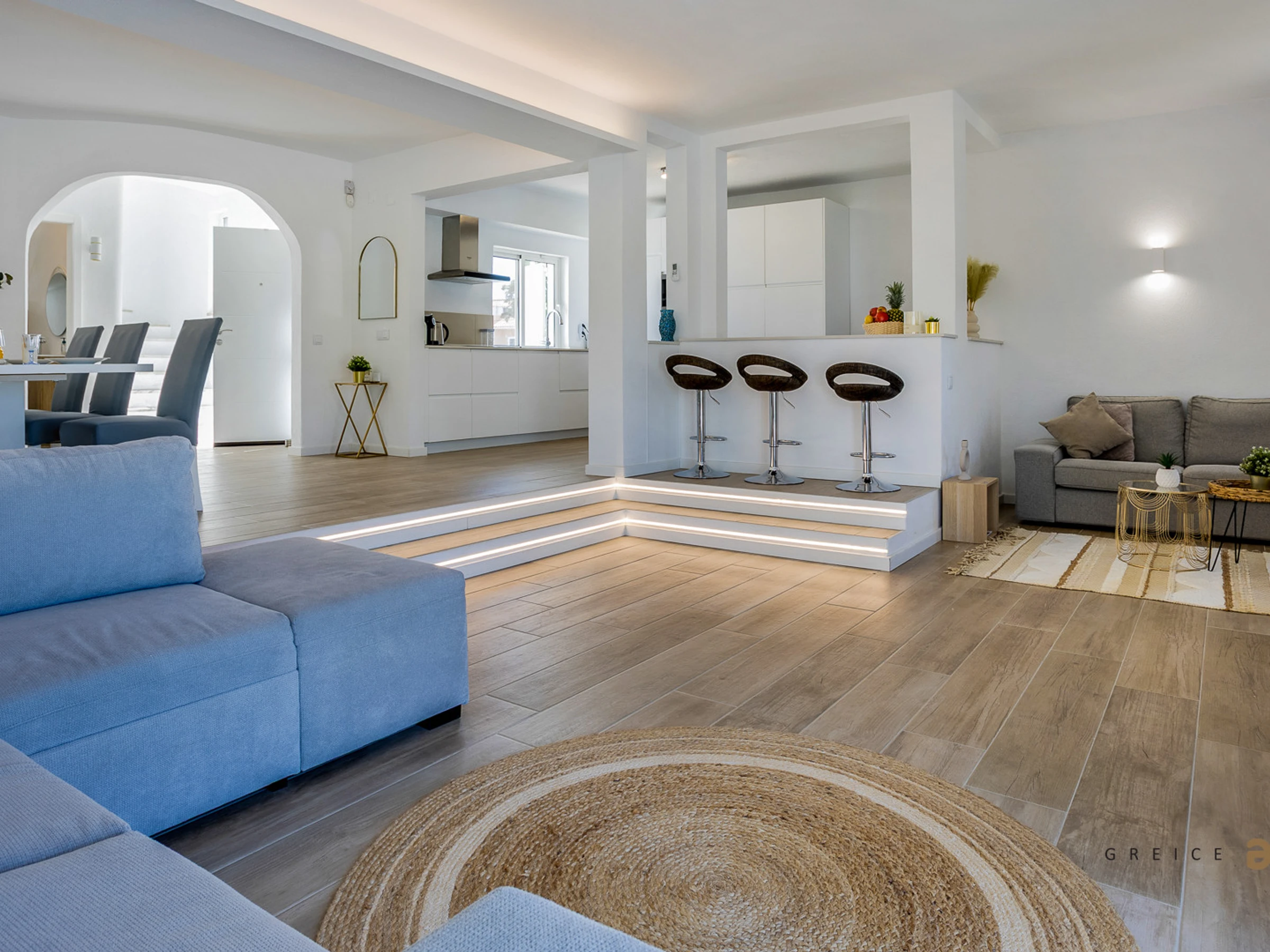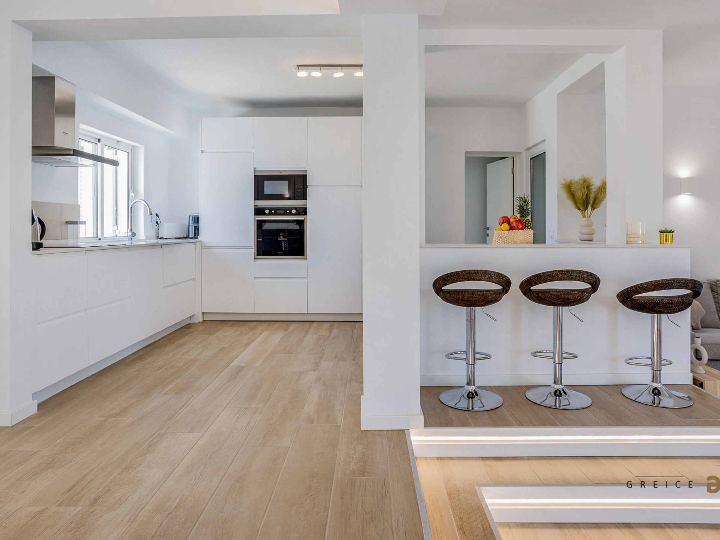 On the ground floor, you will find a bright living room, dining area, and a fully equipped kitchen with dishwasher, oven, microwave and refrigerator, as well as a laundry room with washing machine and dryer.