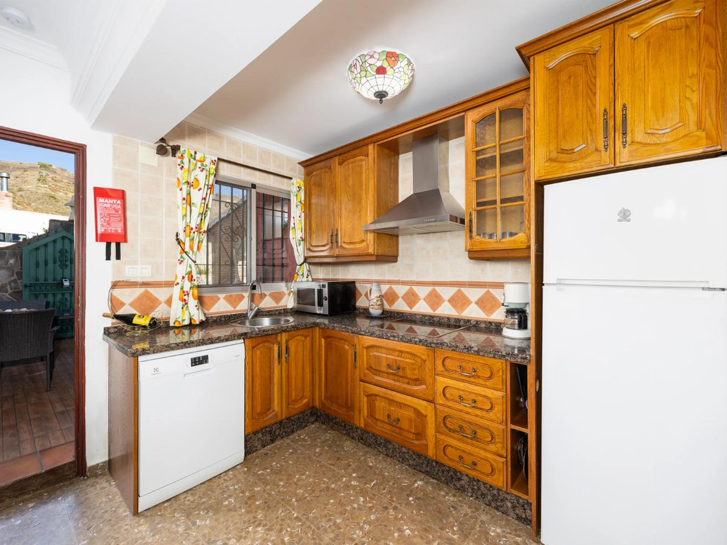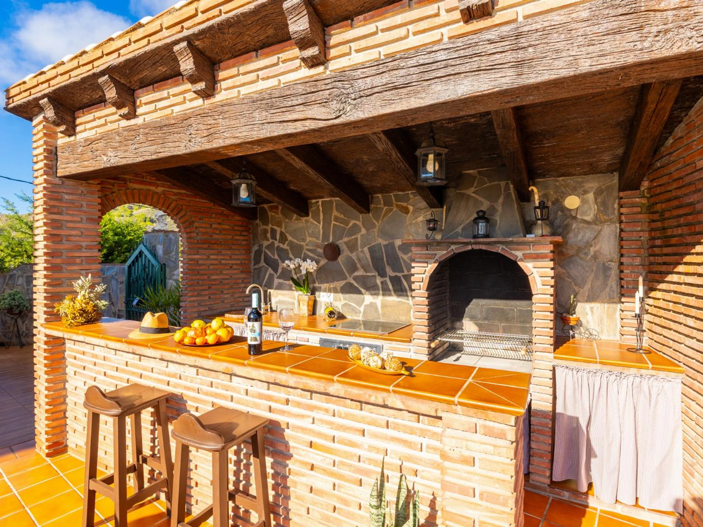 stove/hob and oven. There is also a barbecue outside.