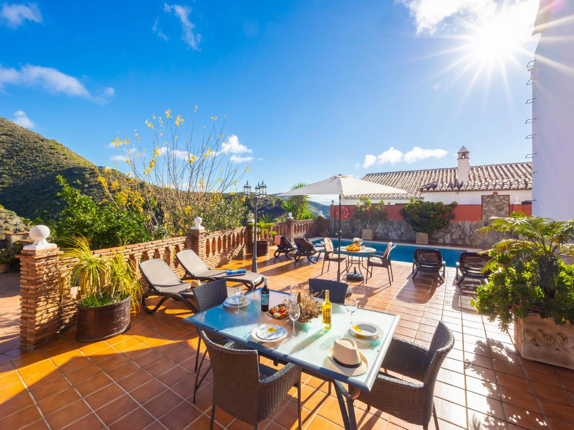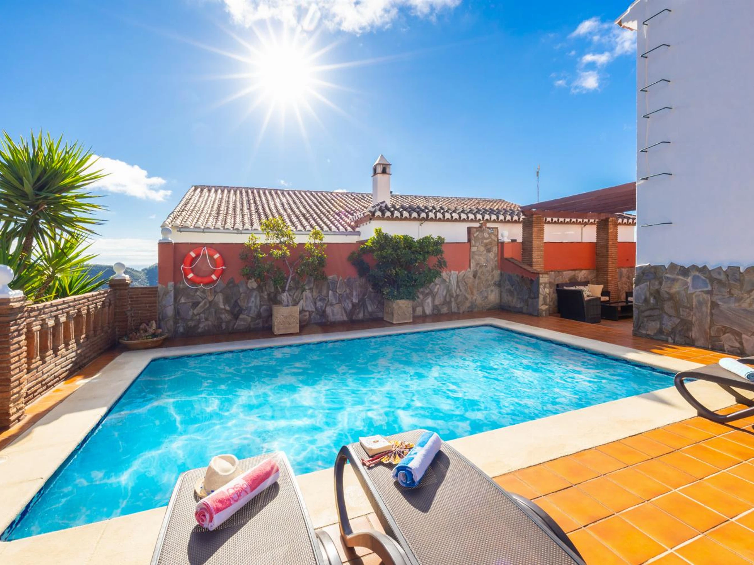 Additional Pool Features: Pergola, Sun Beds and Poolside Dining Area.