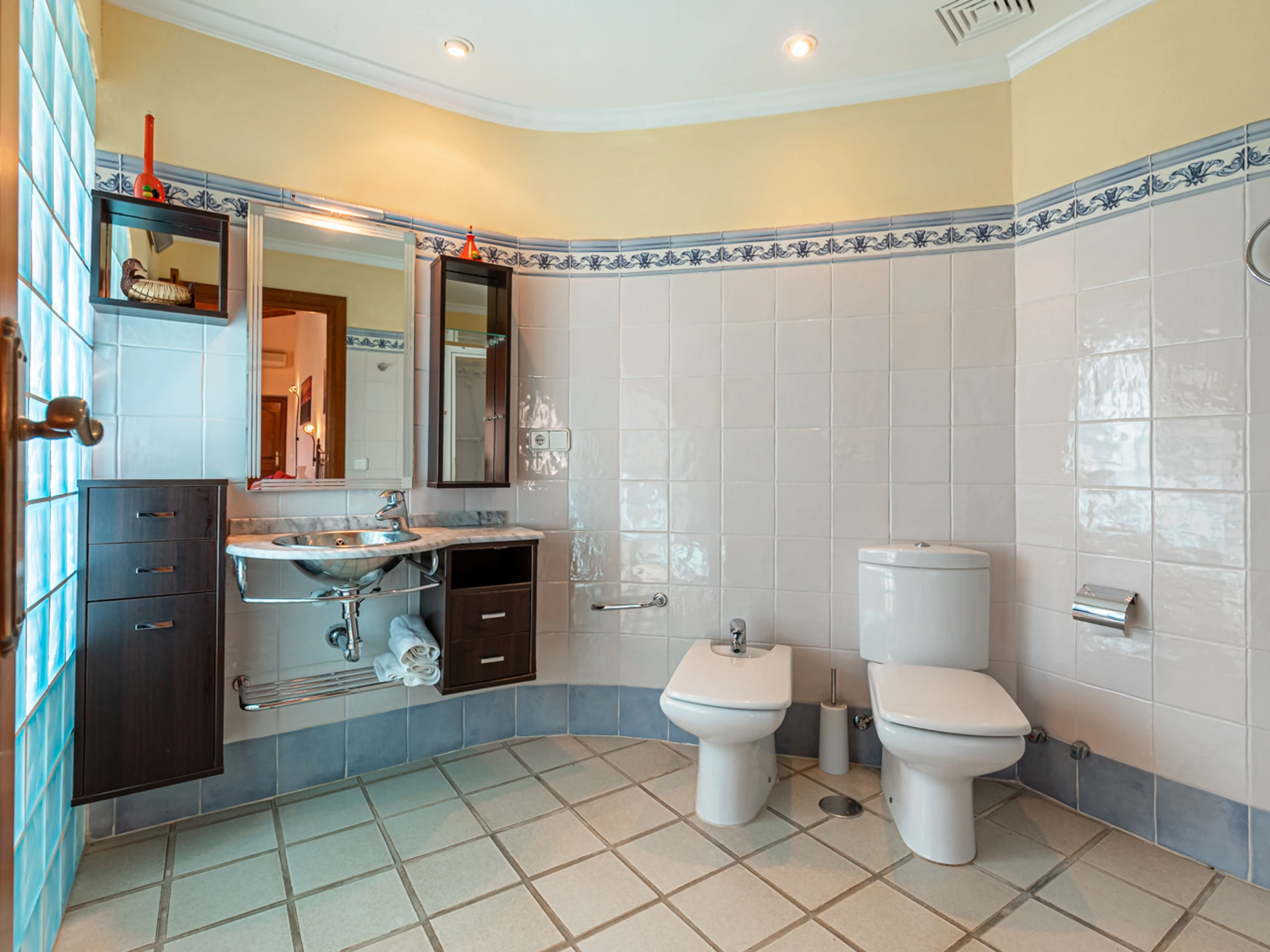 * en-suite bathroom with single washbasin, shower, bidet and toilet Exterior