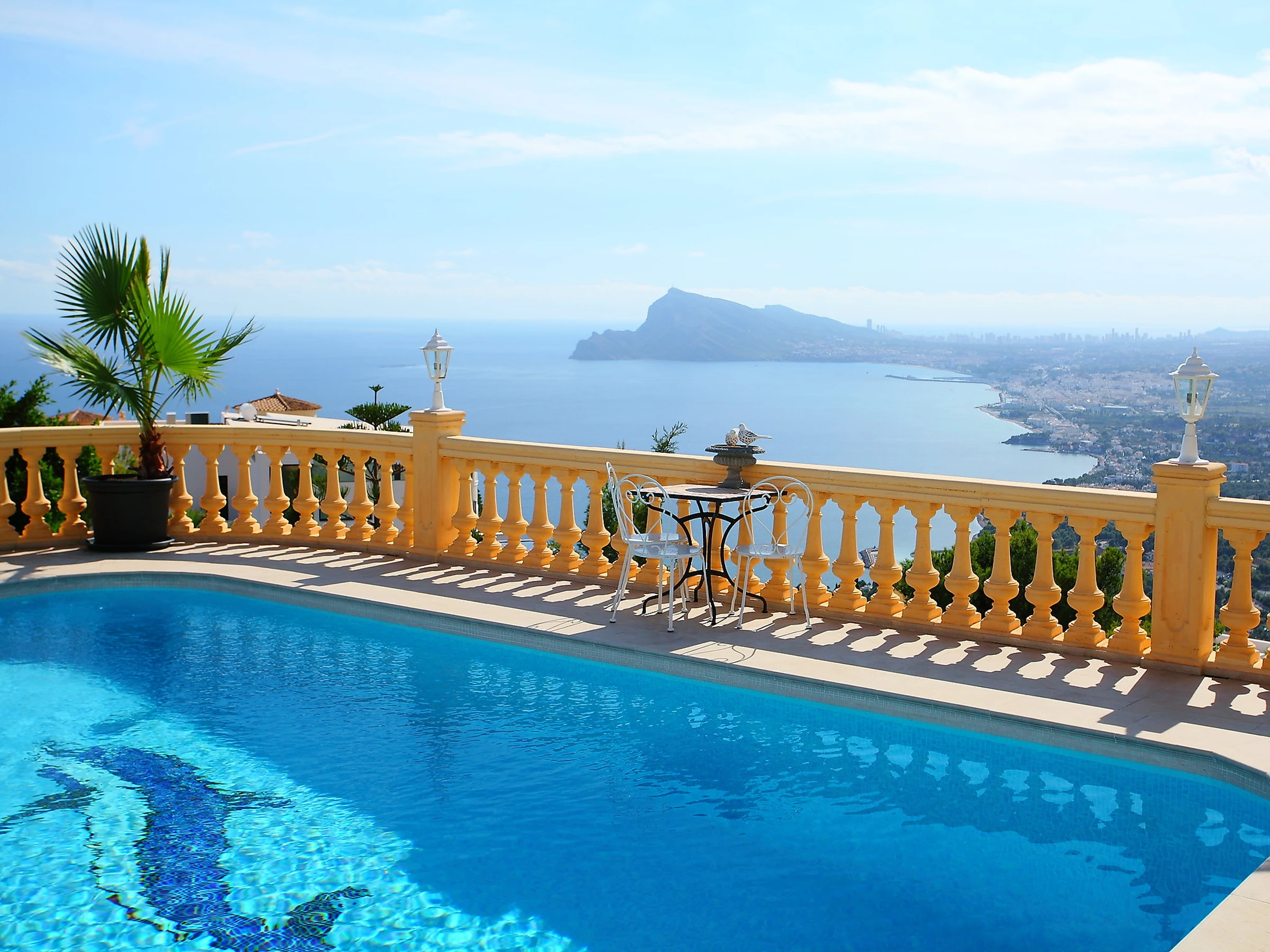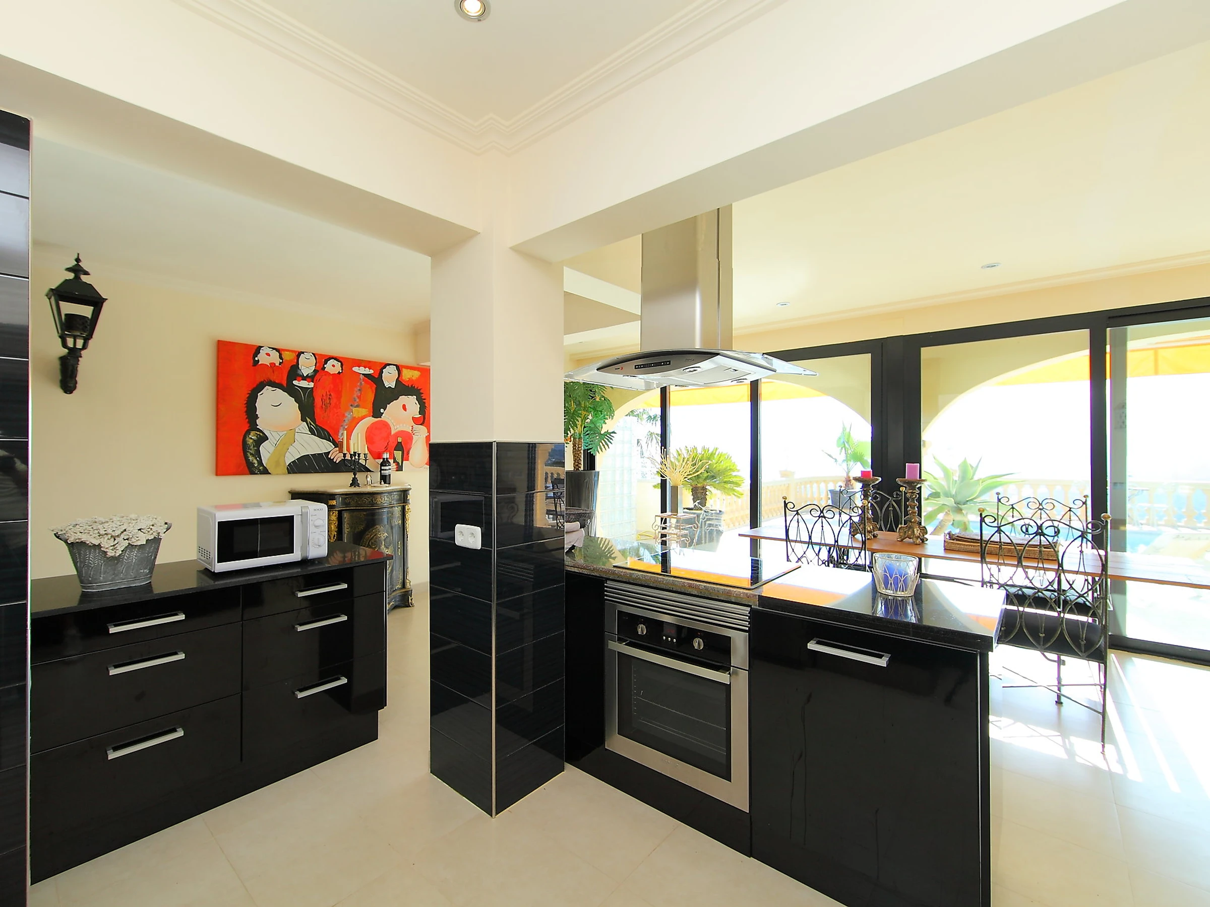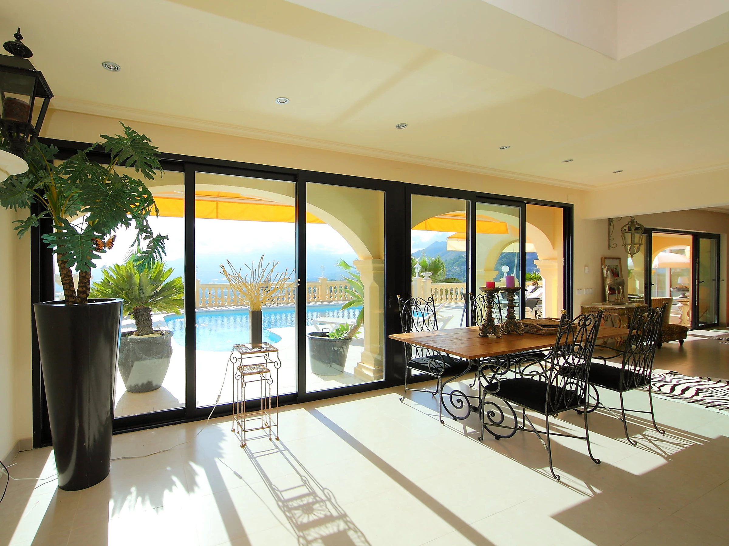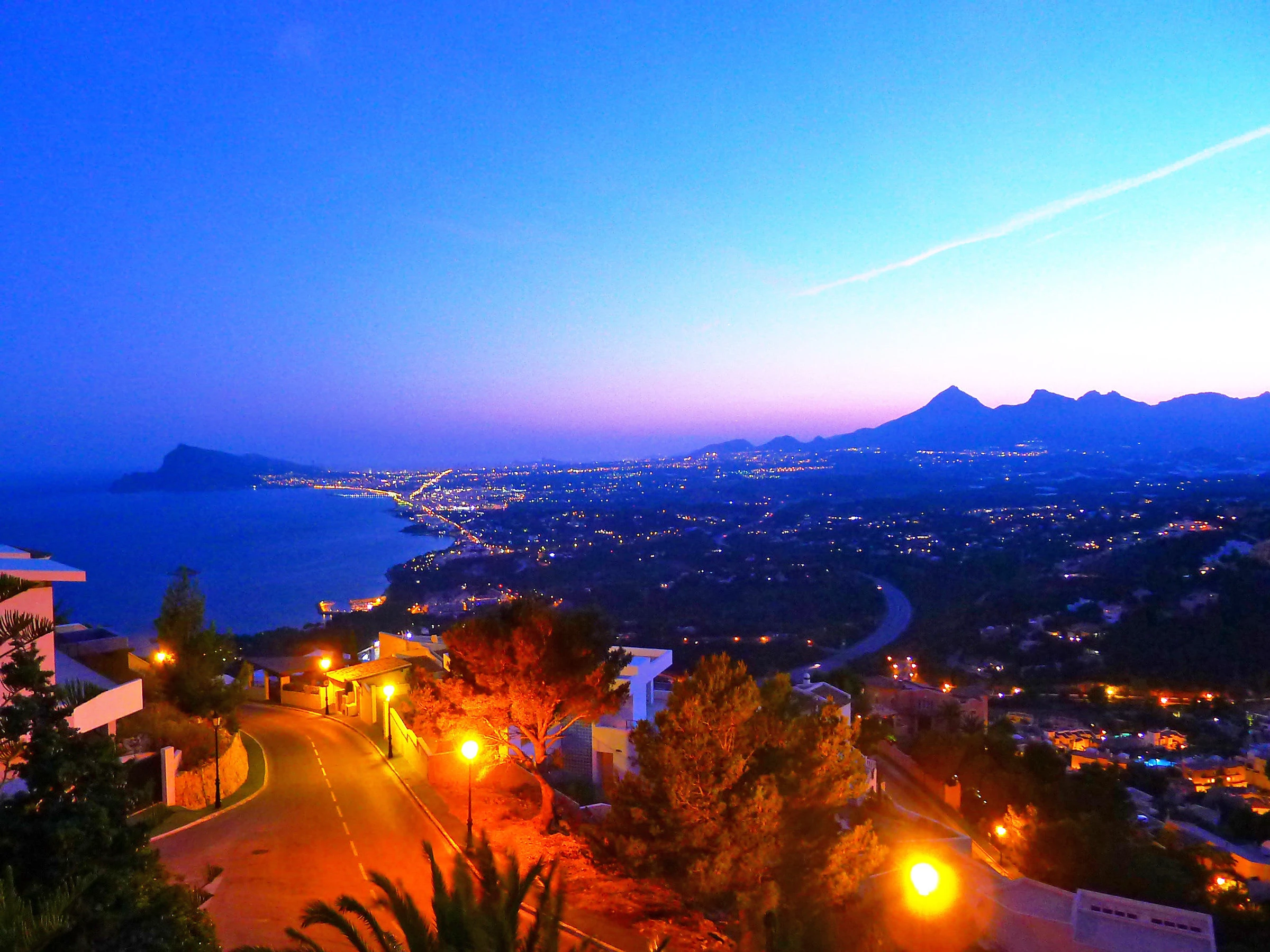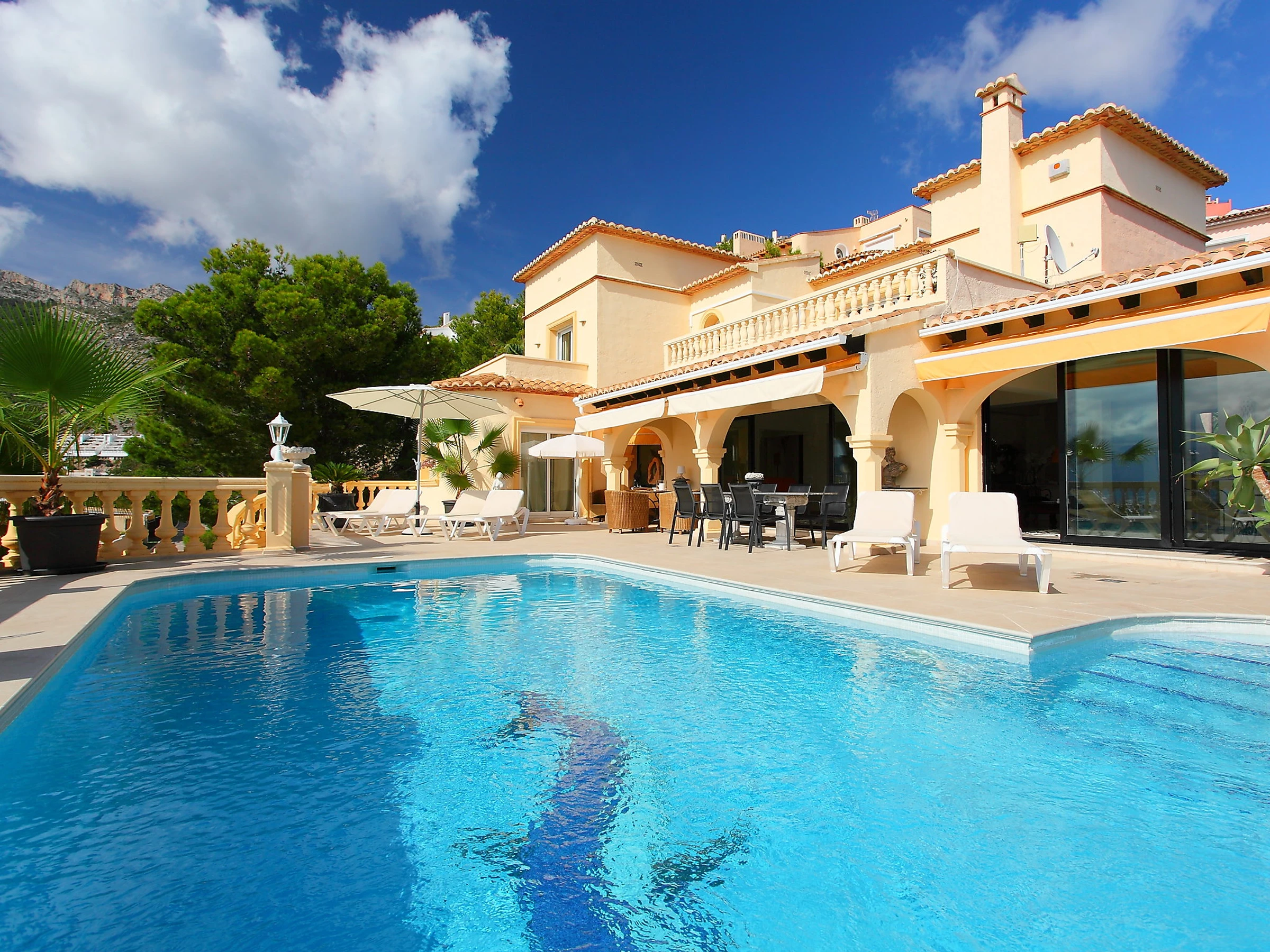 Altea Hills: Modern, very comfortable villa "Del Sol". In a sunny, elevated position, 6 km from the sea, in a cul-de-sac. Private: property 890 m2 (fenced), swimming pool (8 x 5 m, seasonal availability: [hidden] - [hidden] with internal staircase. Outdoor shower, terrace, garden furniture. Supermarket 2 km, restaurant 2 km, bar 2 km, sandy beach 6 km pebble beach 6 km. Golf course (9 hole) 4 km, tennis 2 km. Nearby attractions: Aqualandia, Mundomar, Terra Mítica, Terra Natura, y Benidorm Palace (Benidorm). Nice view of the Sierra de Bernia, ideal for hiking.