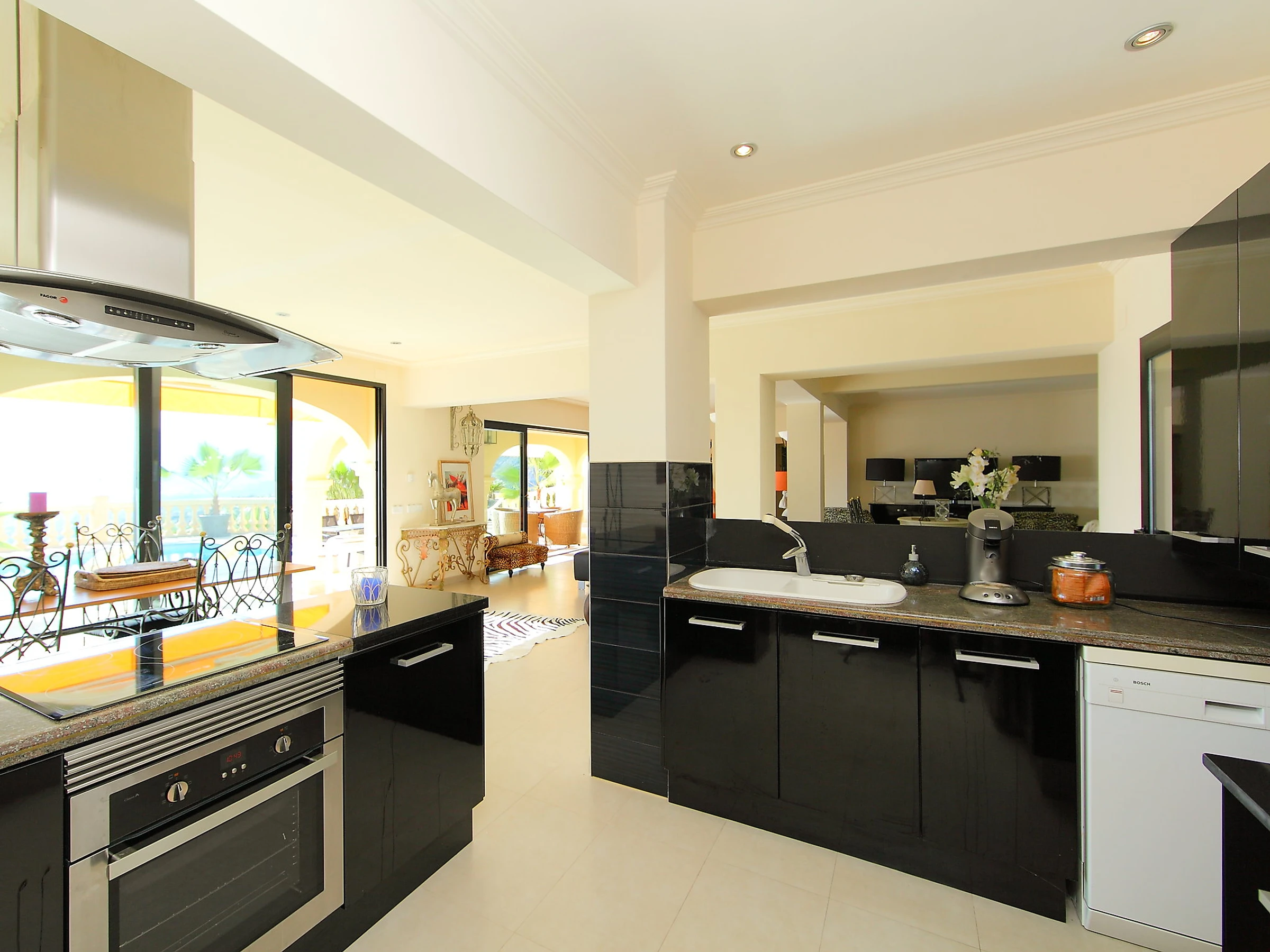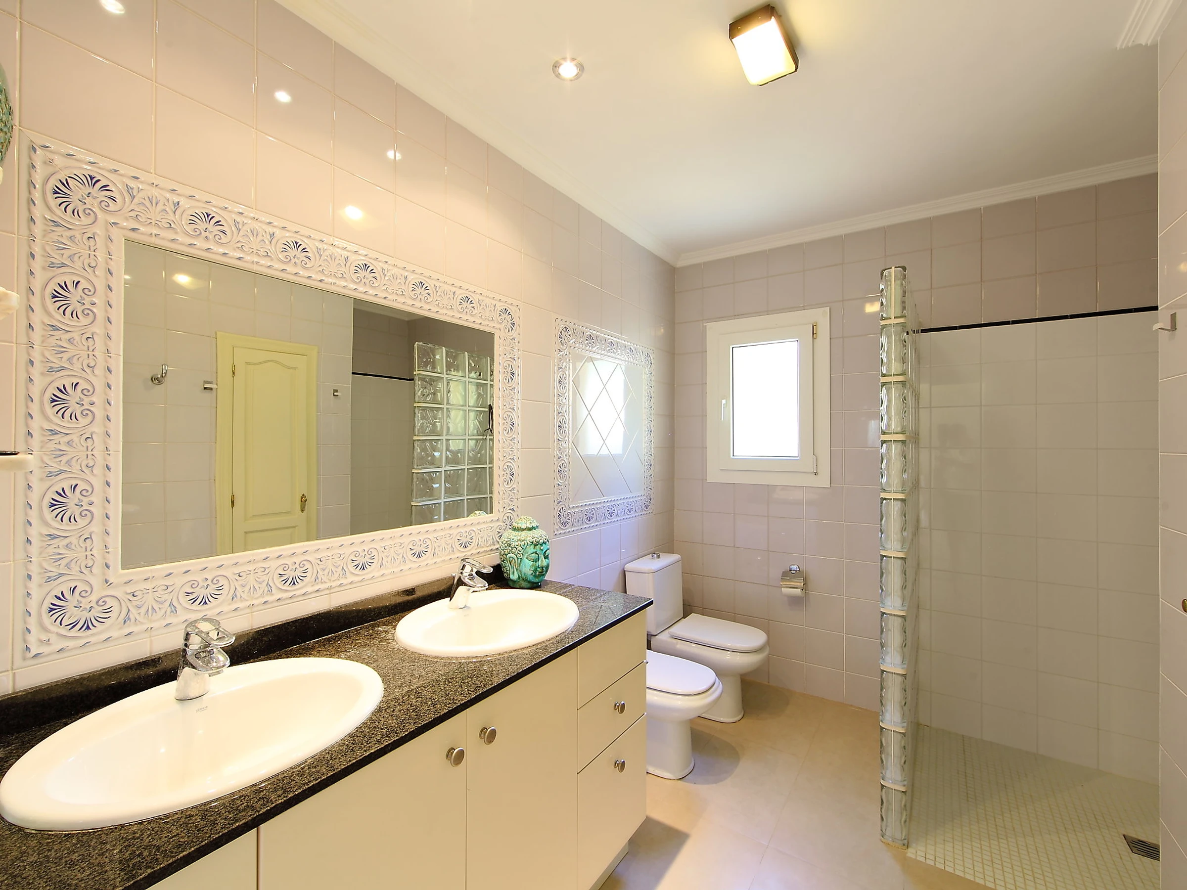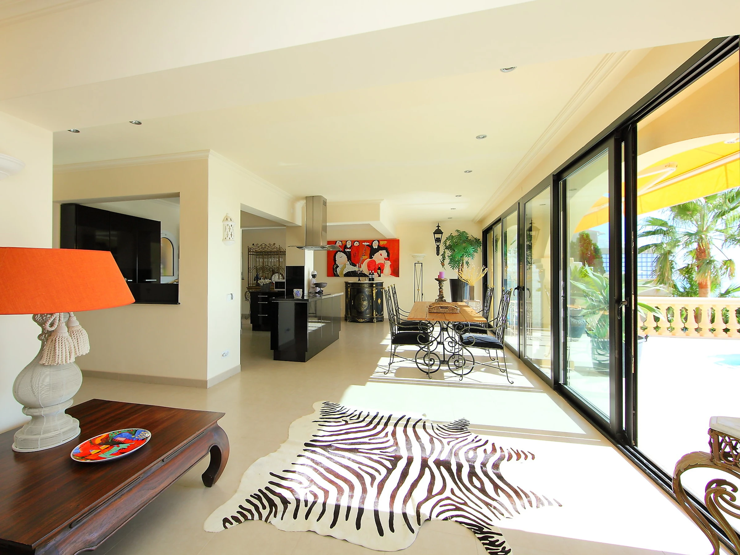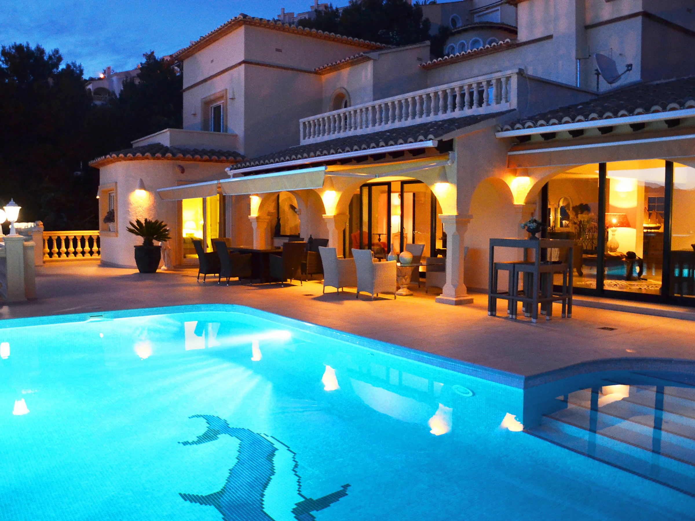 Altea Hills: Modern, very comfortable villa "Del Sol". In a sunny, elevated position, 6 km from the sea, in a cul-de-sac. Private: property 890 m2 (fenced), swimming pool (8 x 5 m, seasonal availability: [hidden] - [hidden] with internal staircase. Outdoor shower, terrace, garden furniture. Supermarket 2 km, restaurant 2 km, bar 2 km, sandy beach 6 km pebble beach 6 km. Golf course (9 hole) 4 km, tennis 2 km. Nearby attractions: Aqualandia, Mundomar, Terra Mítica, Terra Natura, y Benidorm Palace (Benidorm). Nice view of the Sierra de Bernia, ideal for hiking.