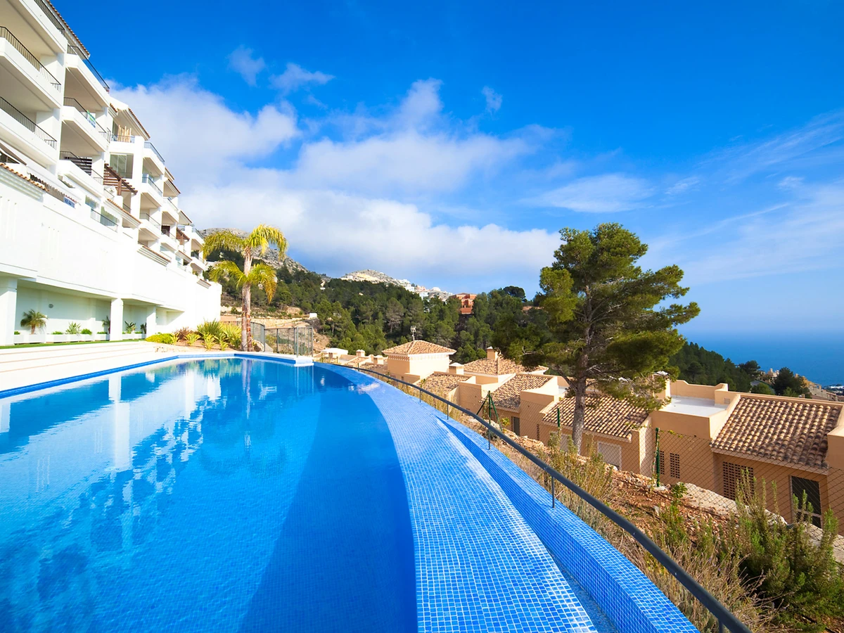 Altea Hills: Cosy apartment block "Los Lirios", built in 2011. 7.5 km from the centre of Altea, in a quiet position, 3.9 km from the sea, 3.9 km from the beach, in a cul-de-sac, south facing position. For shared use: beautiful garden to relax, 2 swimming pools (20 x 7 m, depth 100 - 200 cm, seasonal availability: [hidden] - [hidden] Outdoor shower, children's playground. In the house: lift. Roofed, parking. Shop 7.5 km, supermarket 3.5 km, restaurant 4.7 km, bar 4.7 km, sandy beach "Calpe" 11 km, shingle beach 3.5 km. Sports harbour 4.7 km, marina 4.7 km, golf course (9 hole) 6 km, children's playground 100 m. Nearby attractions: Mundomar, Aqualandia, Terra Natura, Terra Mítica, Benidorm Palace en Benidorm, Club de Golf Don Cayo 6 km, Club Villaitana Golf 22.4 km. Hiking paths: Sierra Bernia. Please note: car recommended. Suitable for families, suitable for seniors. Guarded residence. Residence with electric gates. Additional accommodations can be booked. Property ref. ES9740.49.1 is situated on the same property.