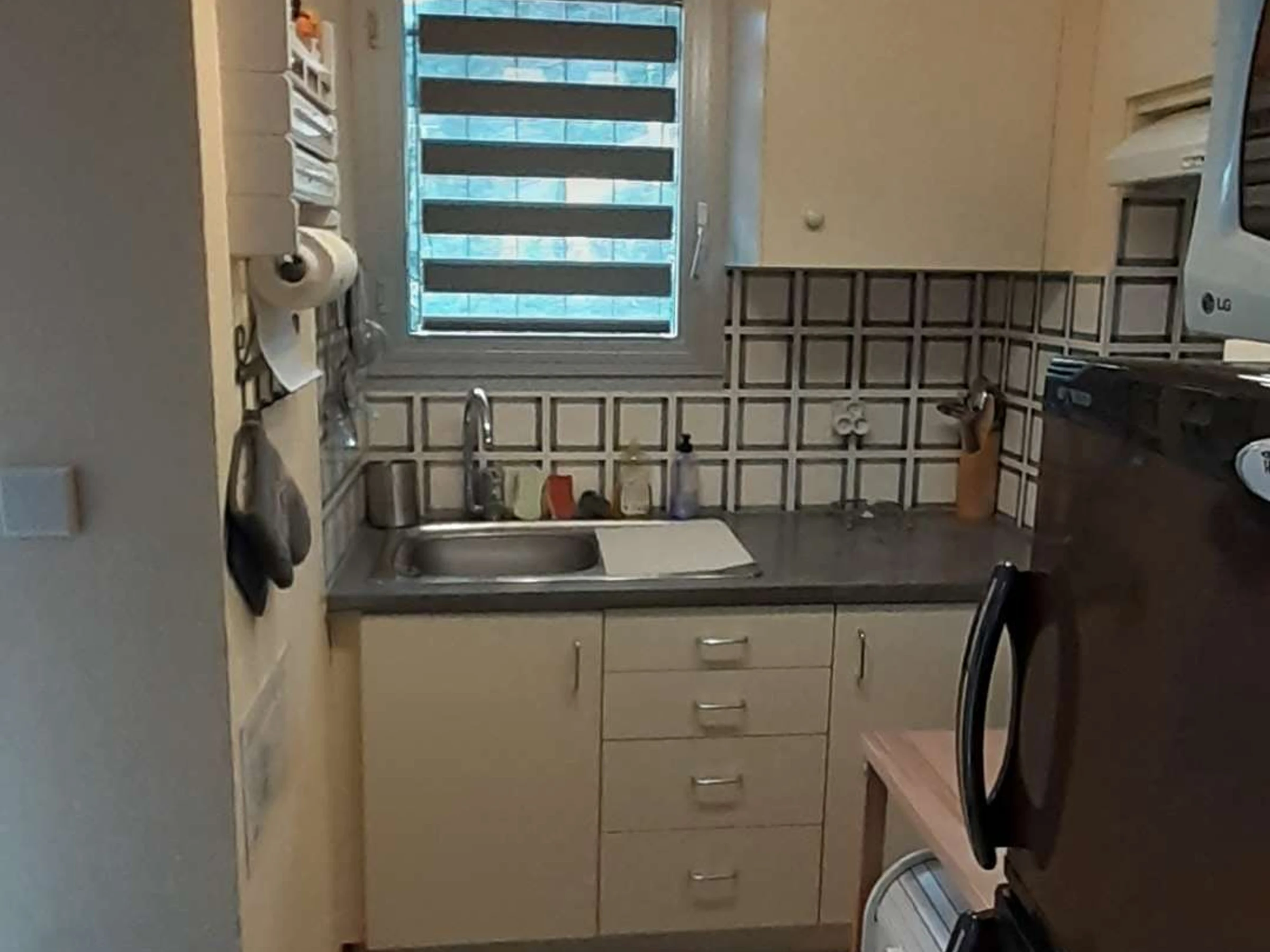 KITCHEN AREA: sink - refrigerator/freezer - basic utensils - storage units - induction cooktop - extractor hood - toaster - kettle - Philips Lor Barista coffee machine - microwave - oven - bin - clock