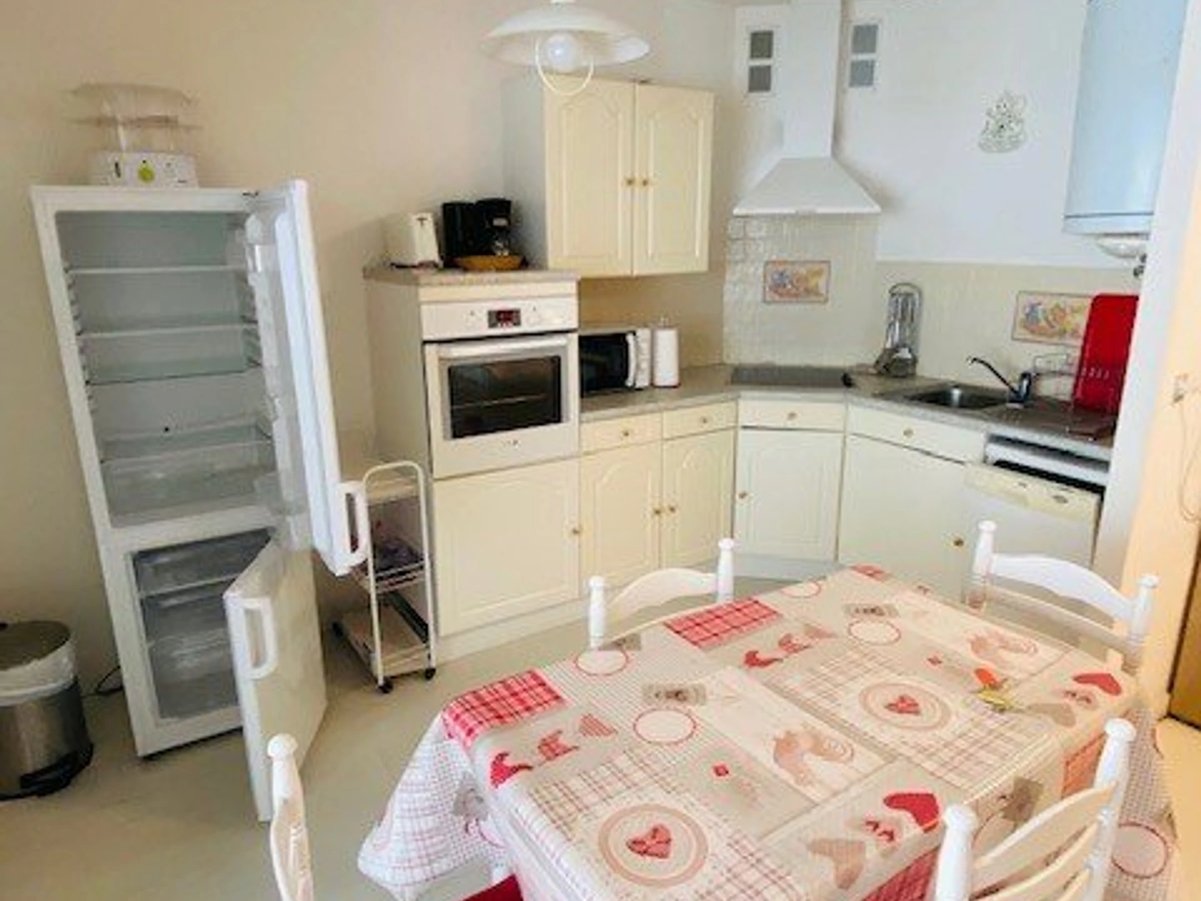 - EQUIPPED KITCHEN: sink - refrigerator + freezer - 4 ceramic hobs - kettle - dishwasher - basic utensils - electric coffee maker - pressure cooker - microwave - 1 table + 4 chairs - extractor hood.