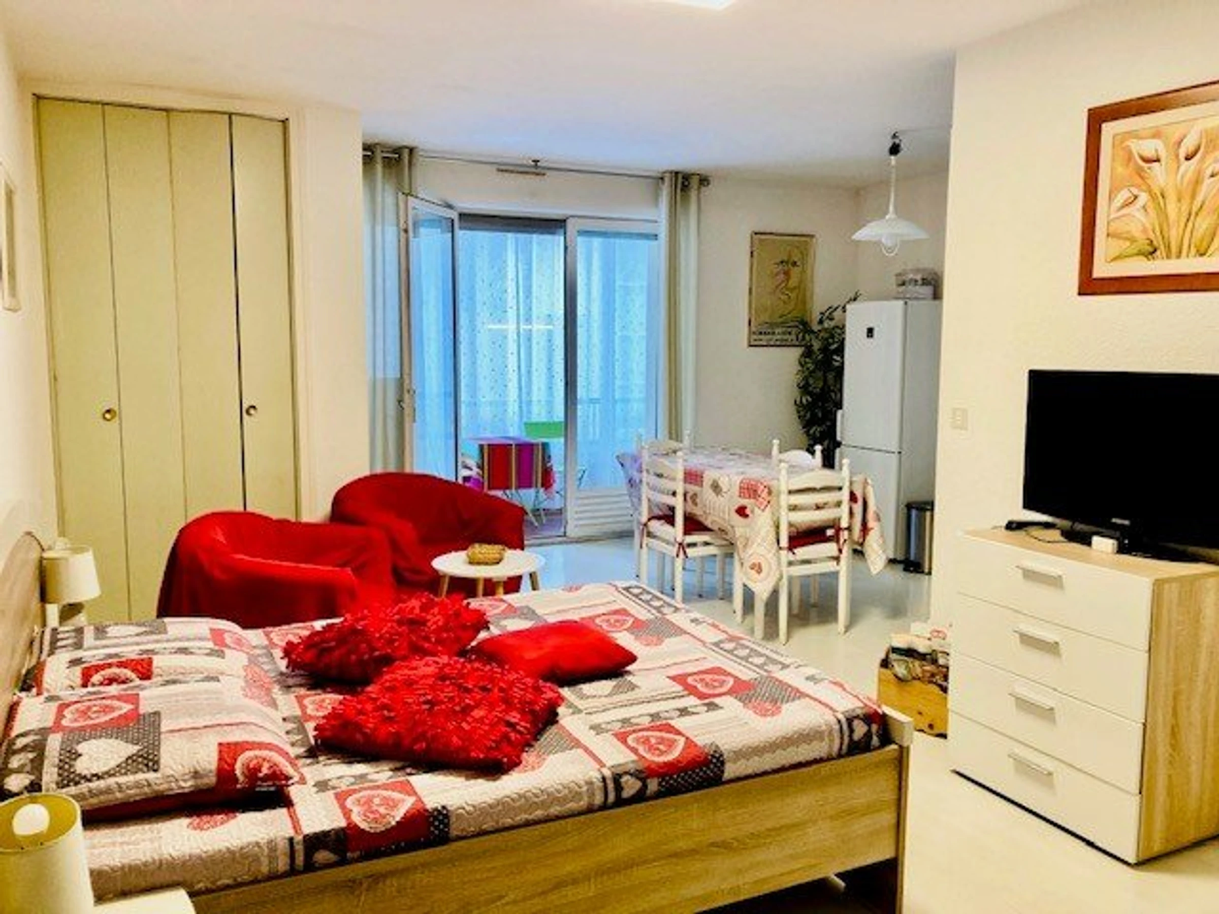 Studio for 2 people, 31m² + 7m² loggia. Reserved parking space in the municipal car park (General De Gaulle) or a garage closer to the studio for an additional €60.