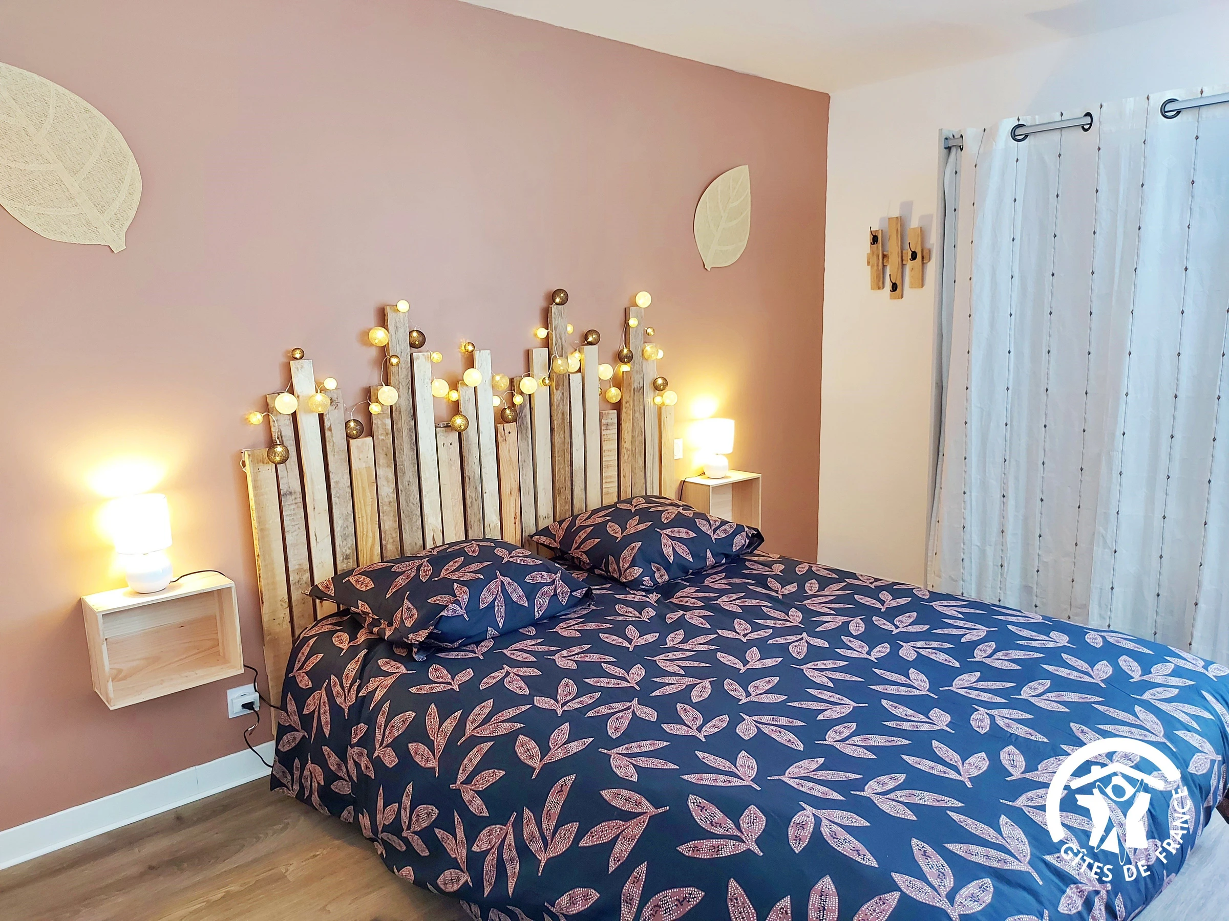 La Douce Escapade is a two-story cottage, with the living areas on the ground floor, and the bedroom and bathroom on the first floor. There's no garden or terrace, but a hiking trail from the cottage takes you to the banks of the Ernée River; the campsite's children's play area and the municipal pétanque court are 100 meters away.