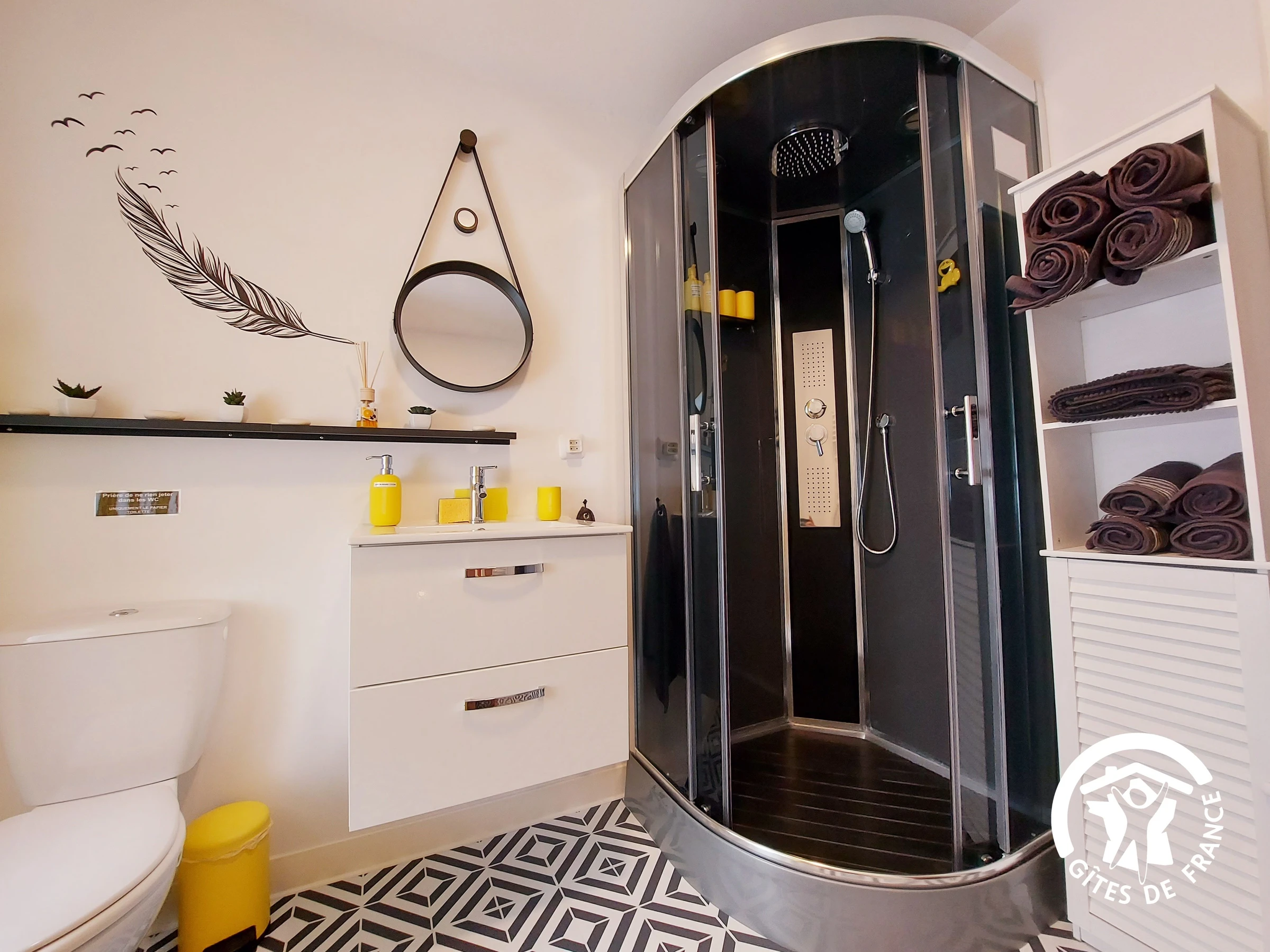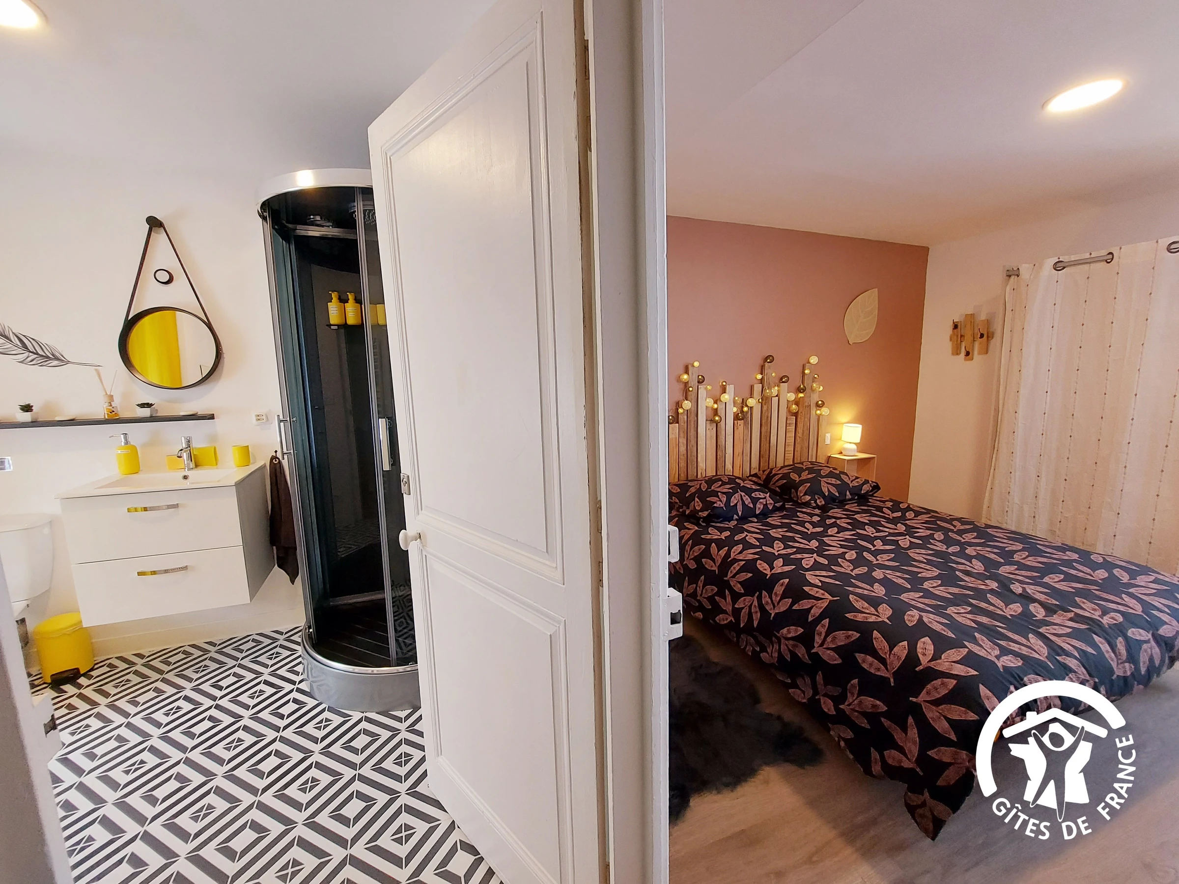 Ideal for 1 to 2 people, it's also possible to use the 140x200 sofa bed for an additional €15/person/night, as an option. In the center of Andouillé, 500 meters away, you have access to all shops and services: bakery, mini-market, restaurant, doctor, ATM, and the city bus, and the town is a 10-minute drive from Laval.
