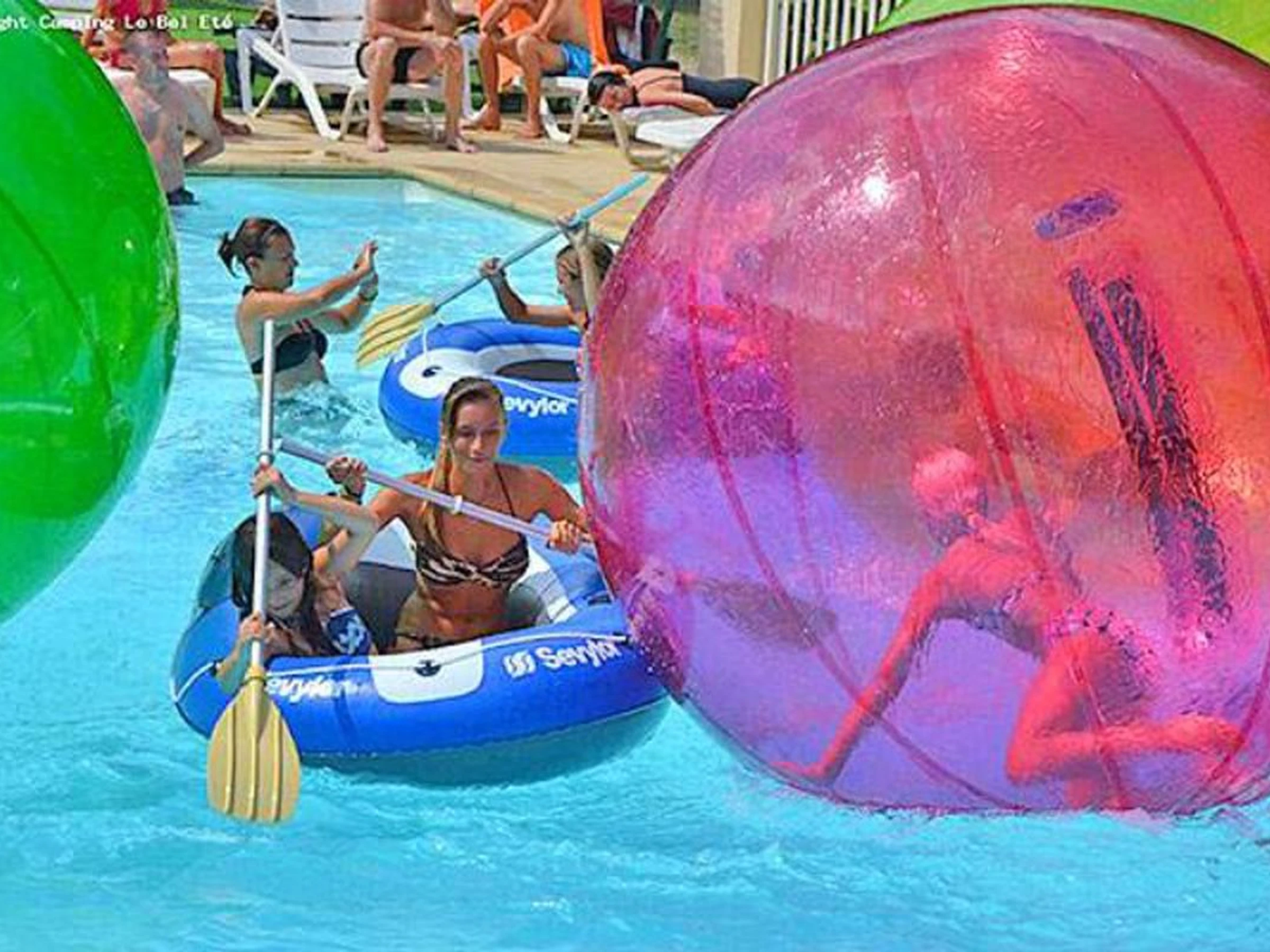 Amenities include a 110m zipline, water ball, video games, billiards, skill and balance games, and foosball.
