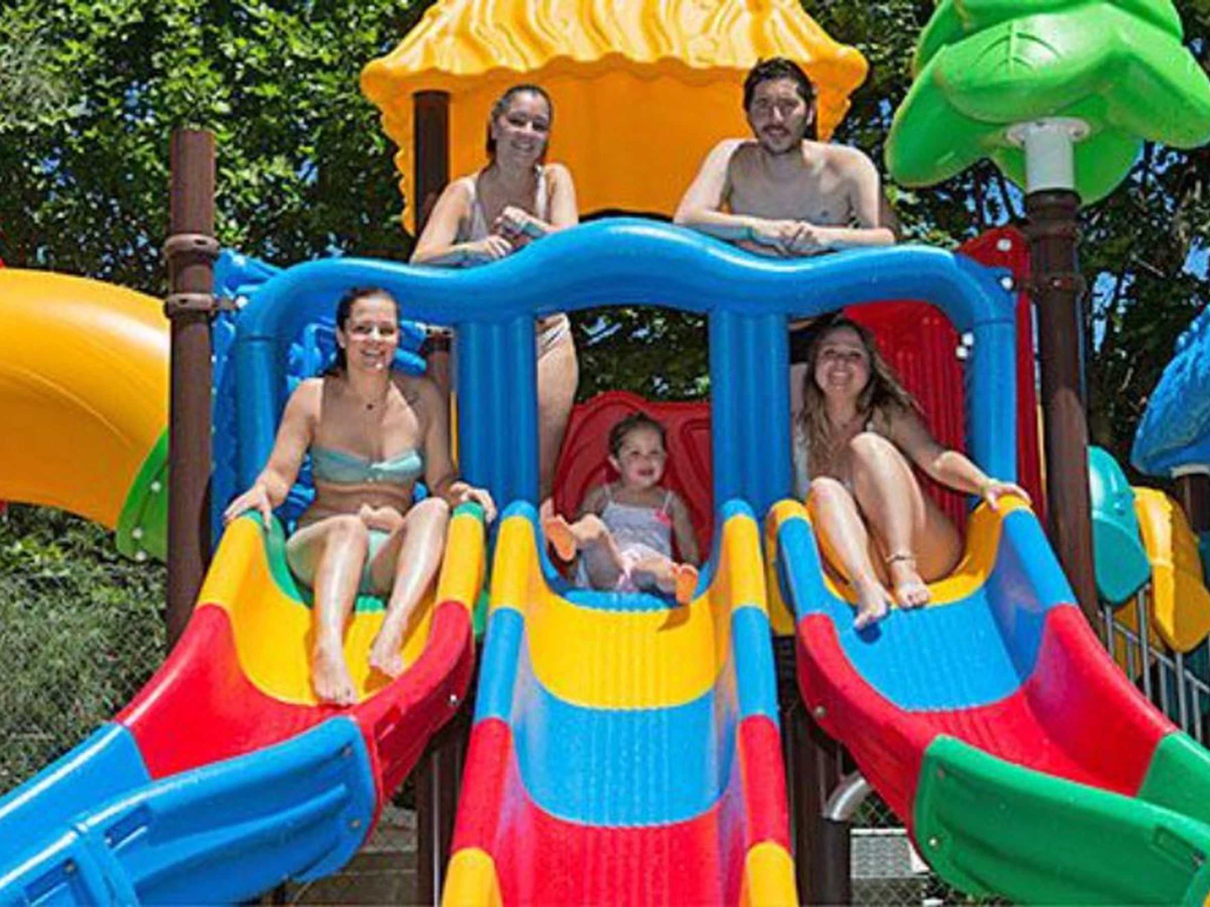 The complex features 6 water slides, a multi-sports area, ping-pong tables, a playground for children aged 2 to 6, and a playground for children aged 6 to 15.