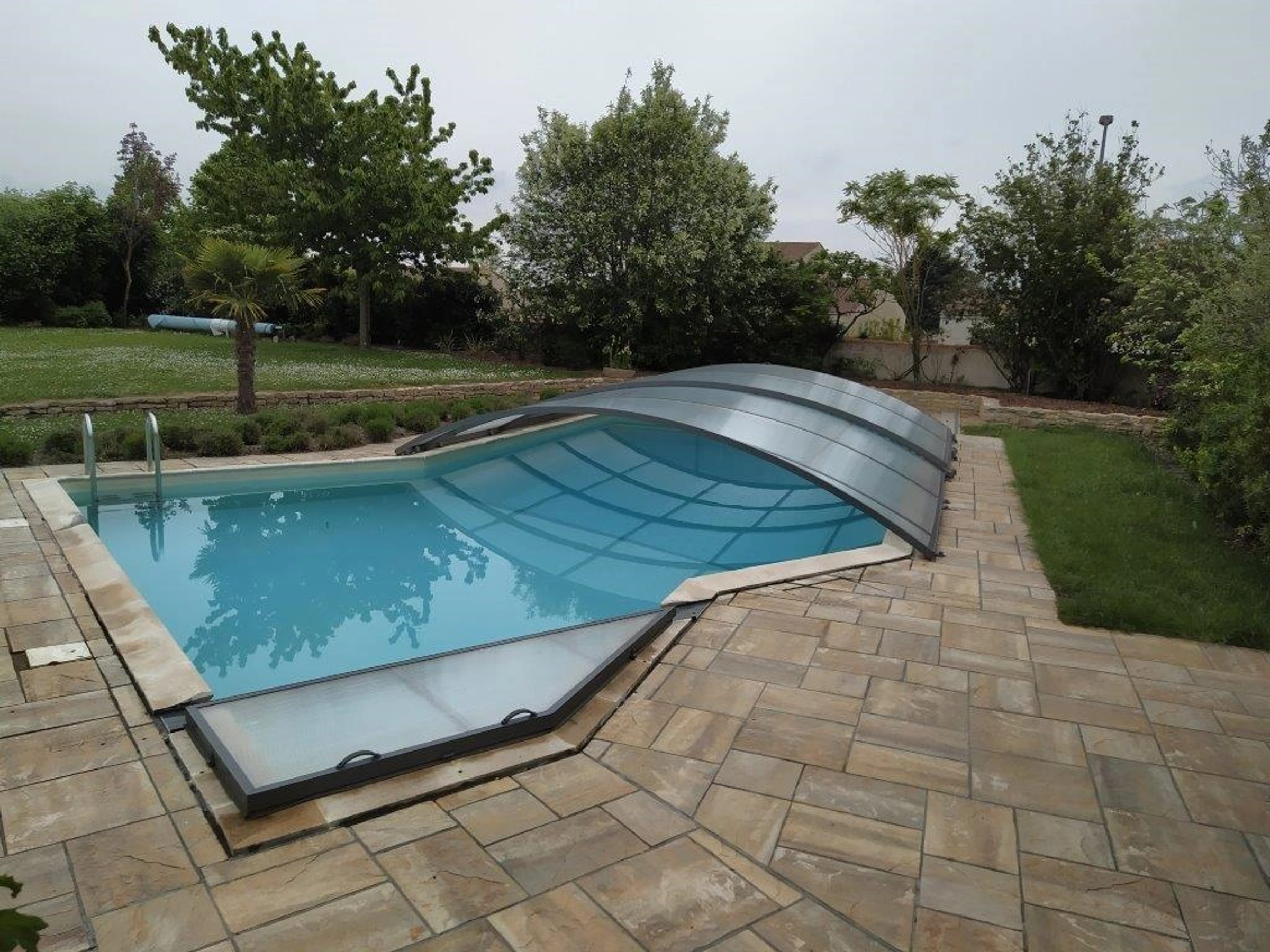 The 10x5-meter swimming pool, protected by a south-facing shelter, invites you to enjoy refreshing moments under the summer sun, with the option of heating it even when temperatures are cooler.
