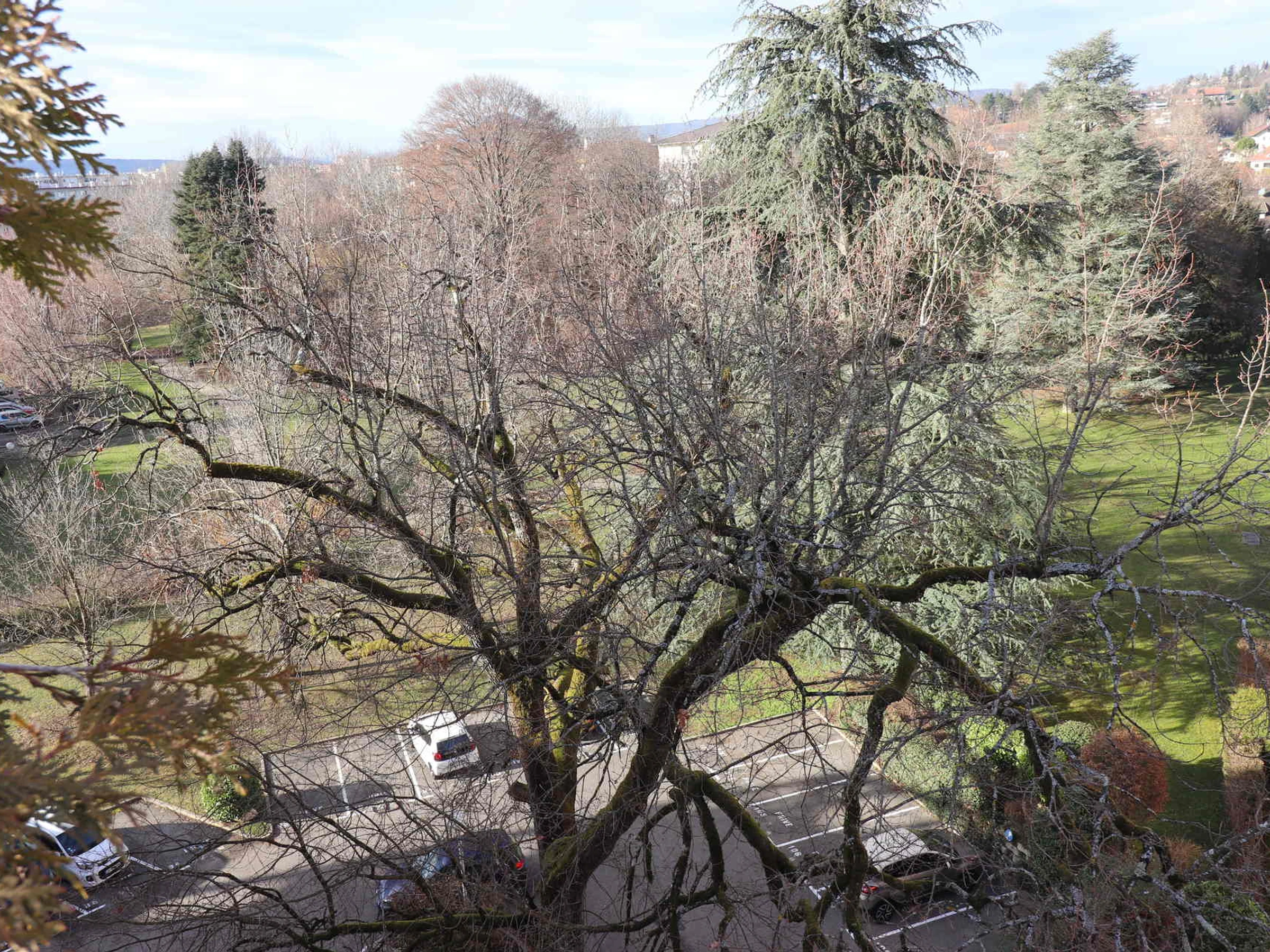 - A fully equipped kitchen open to the living room with large bay windows overlooking a wooded park (North / West exposure), a dining area and access to a small furnished balcony.