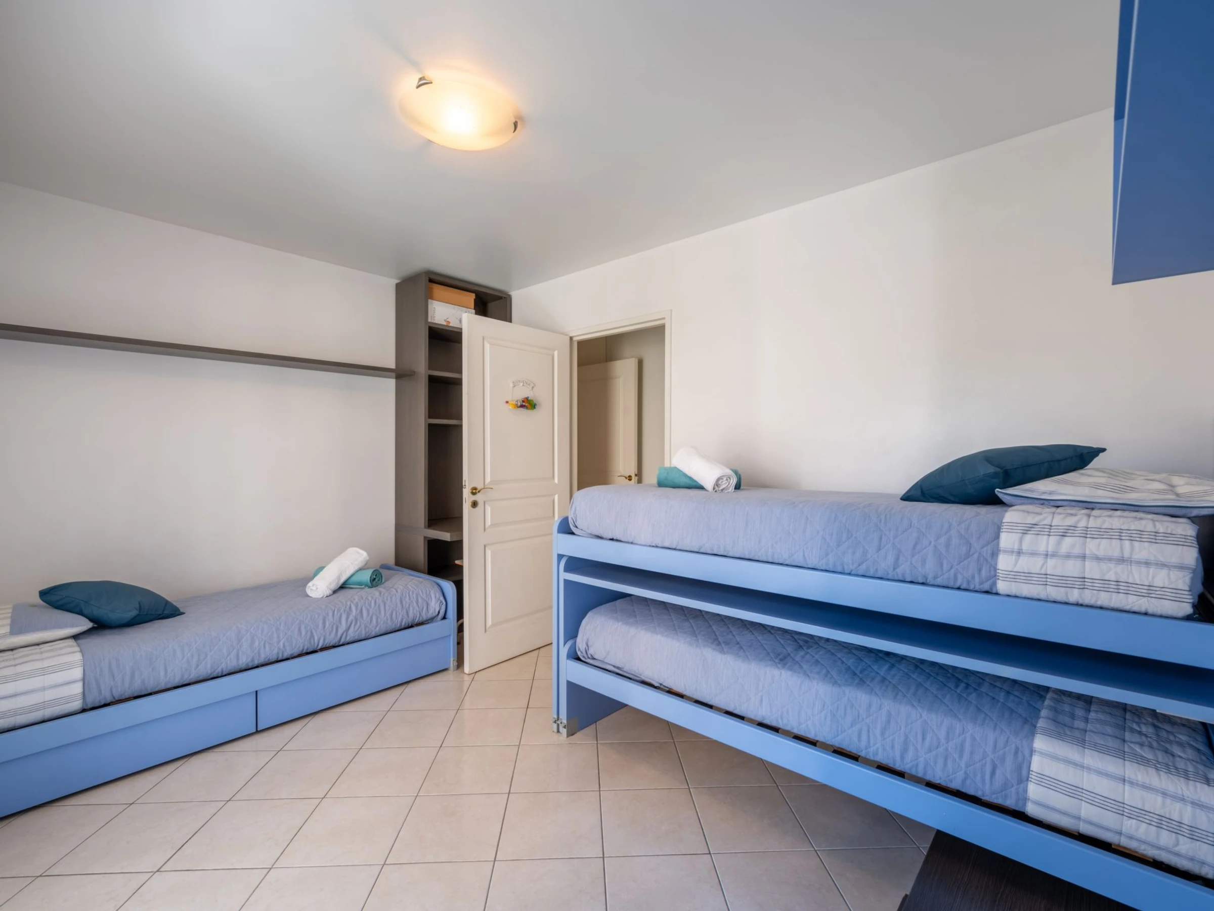 4-room apartment 84 m2 on 2nd floor. Spacious, comfortable and beautiful furnishings: living/dining room with TV. Exit to the terrace. 1 room with 1 pull-out bed (2 pers. 2 x 80 cm, length 190 cm). 1 room with 2 beds (80 cm, length 190 cm). Exit to the balcony. 1 room with 1 french bed (160 cm, length 200 cm), shower/bidet/WC. Open kitchen (4 hot plates, oven, dishwasher, freezer). Shower/bidet/WC. Electric heating. Large terrace 25 m2. Terrace furniture. Beautiful view of the sea. Facilities: washing machine. Internet (WiFi, free). Garage, height 180 cm. Please note: smoke alarm. [hidden]