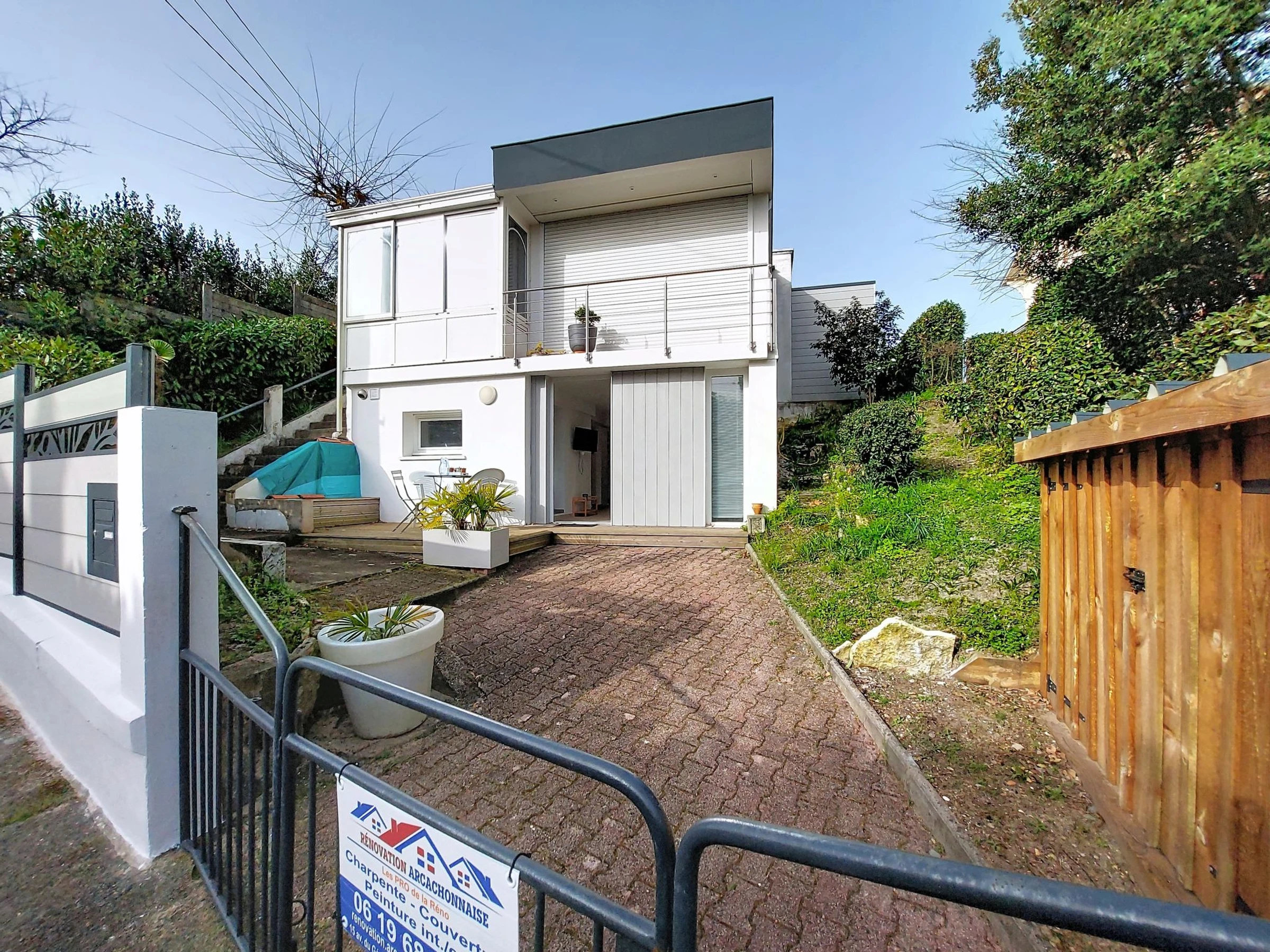 Arcachon: 2-family house "La Victoria". In an elevated position, 230 m from the sea, 230 m from the beach. Parking. Shop 1.8 km, grocery, supermarket 750 m, shopping centre 3.9 km, restaurant 160 m, bar 750 m, bakery 210 m, café 600 m, bicycle rental 800 m, bus stop "Plage d'Eyrac" 170 m, railway station "Arcachon" 1 km, sandy beach "Plage d'Eyrac" 230 m, park "Mauresque" 1.9 km, diving center 1.5 km, thermal baths "Thalazur" 4.2 km. Sports harbour 2.6 km, golf course (18 hole) 4.8 km. Nearby attractions: Dune du Pyla 11.5 km, Eratopia 9.1 km, Navette Maritime pour le Cap Ferret 2.2 km, Casino 650 m, Marché Municipal 1.1 km, Observatoire Sainte Cécile 2.8 km. Well-known lakes can easily be reached: Lac de la Magdeleine 10.6 km, Lac de Cazaux 18.9 km. The keys‘ handover takes place by the agency in Arcachon, 2 km.