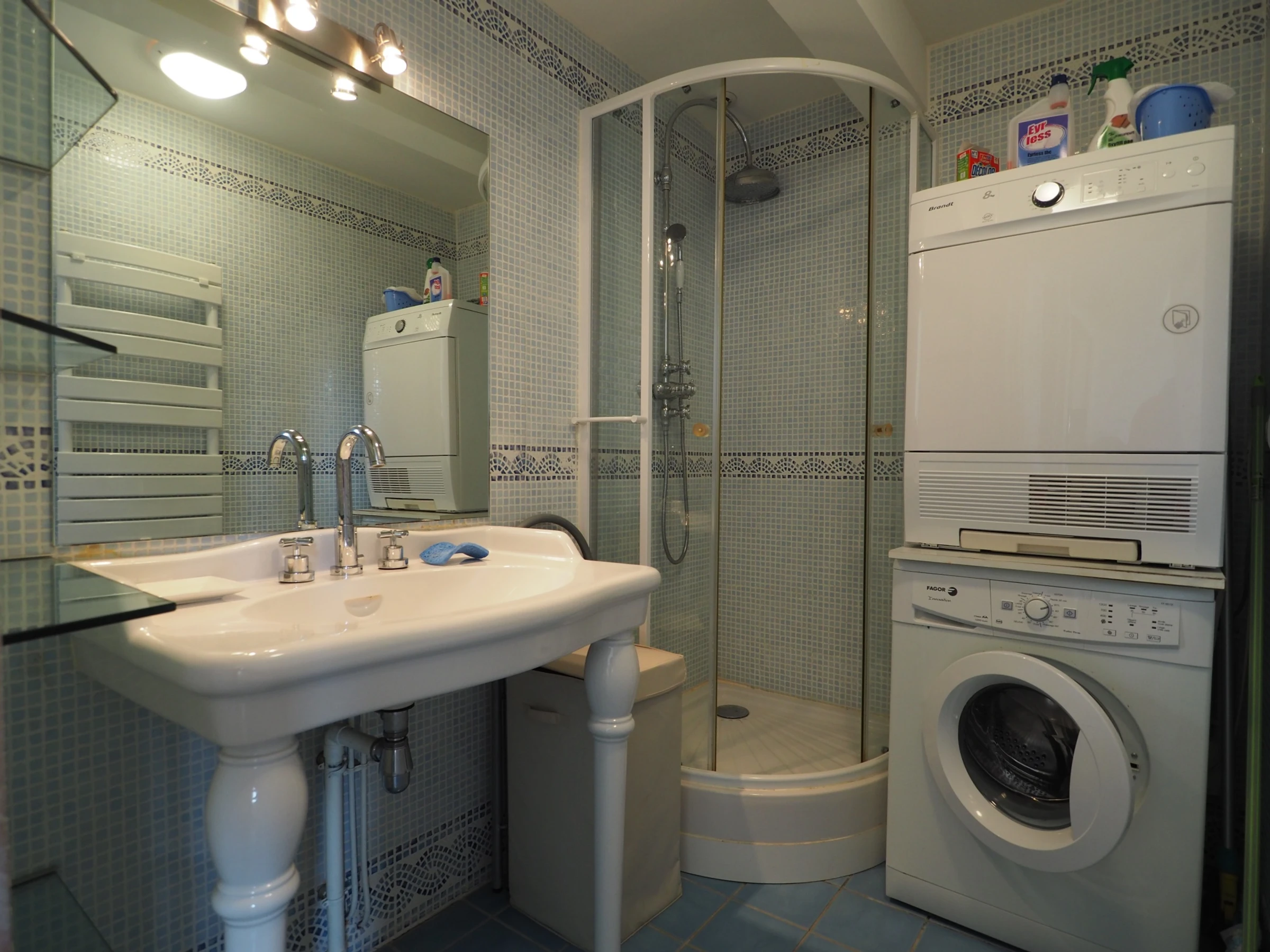 Downstairs: shower + washing machine + dryer