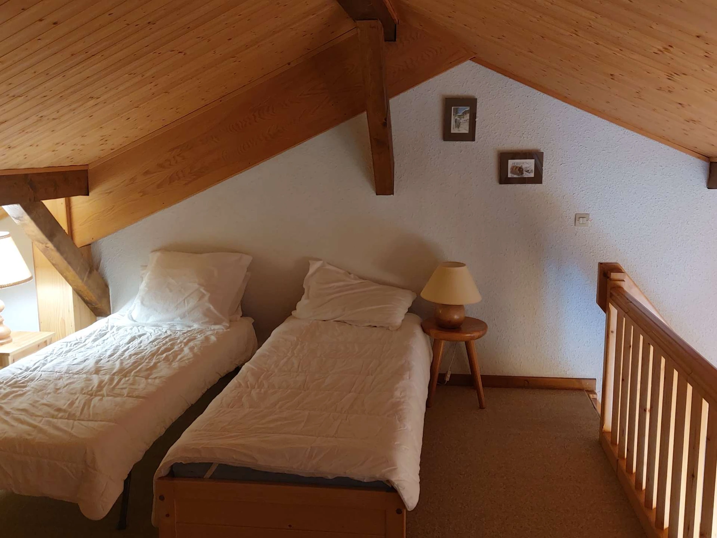 Appartement duplex de 37m2 + 13m2 inf. à 1.80, dans chalet de 4 appartements : séjour - kitchenette - salle de bain - wc - 1 chambre (1 lit 2 places 140) - Grande mezzanine ouverte sur le séjour avec un couchage de 3 personnes (3 lits 90).