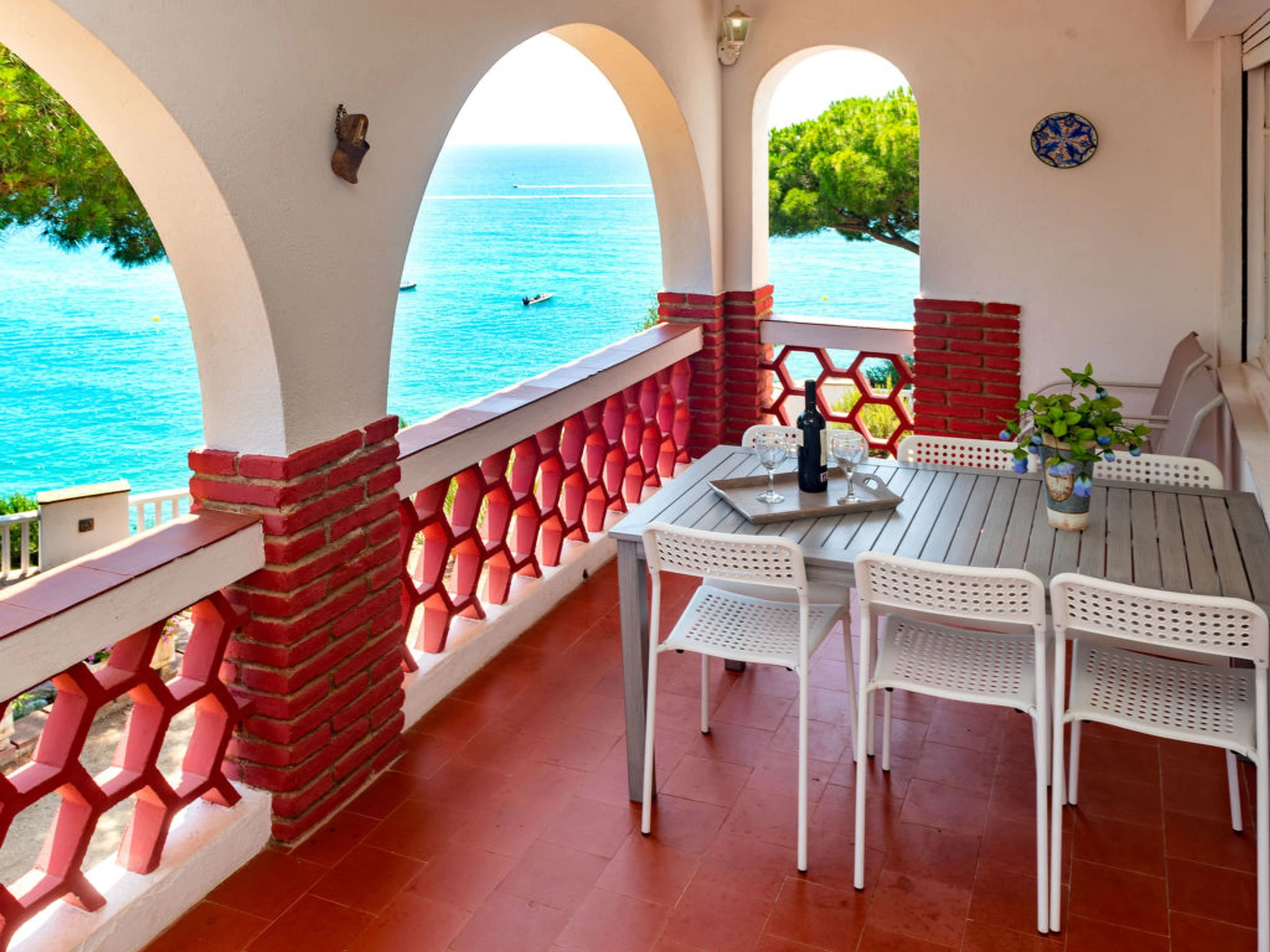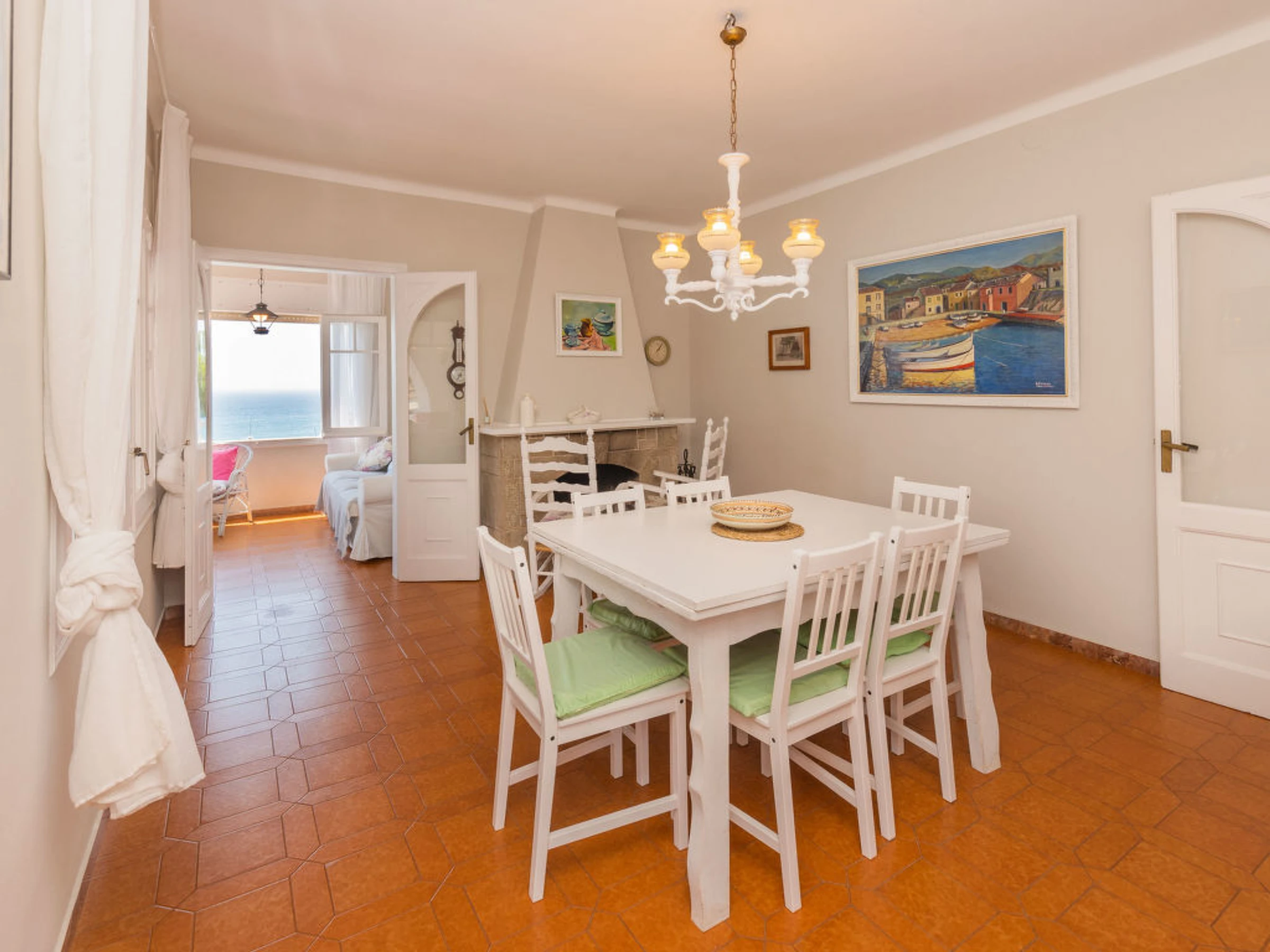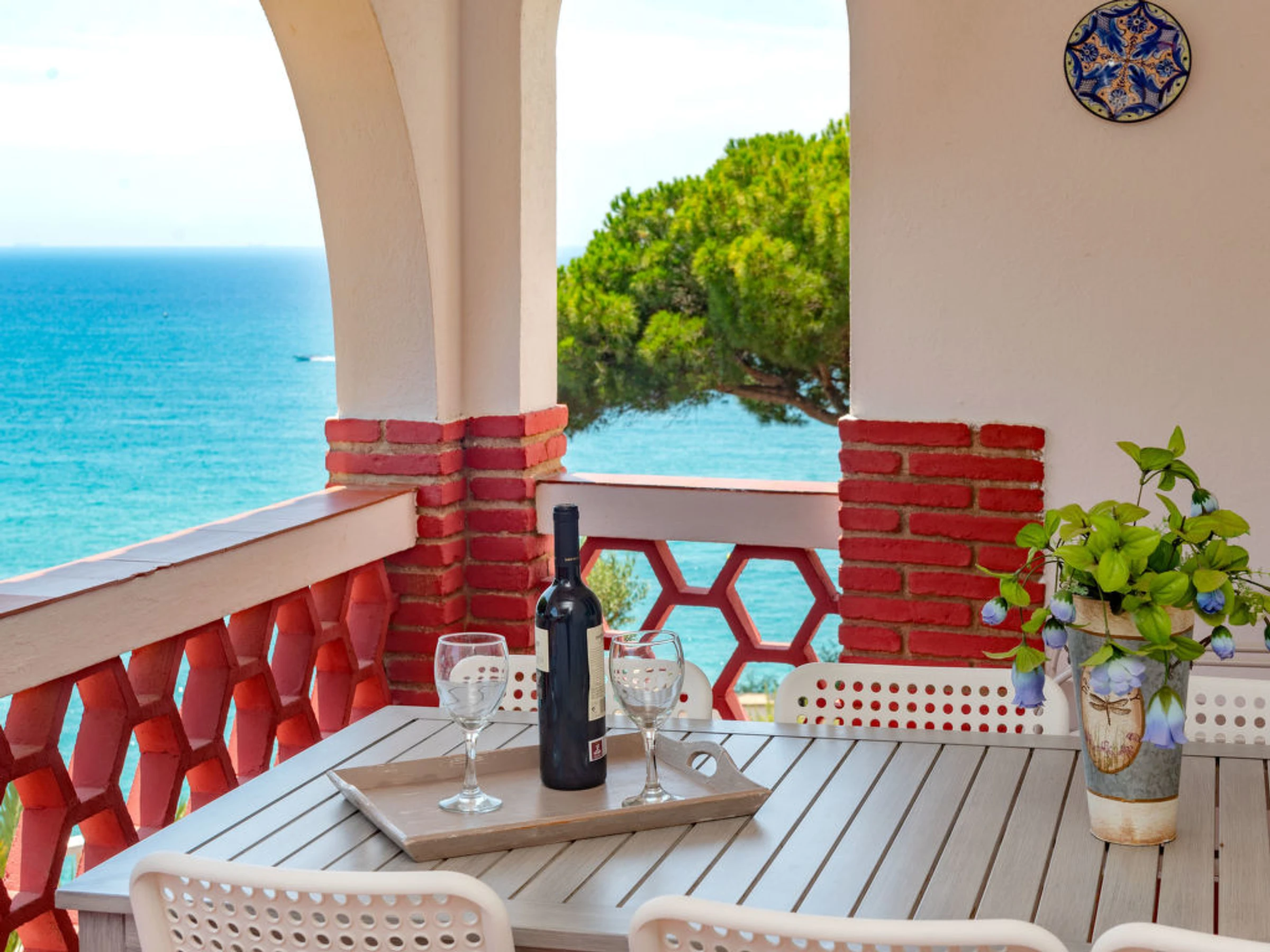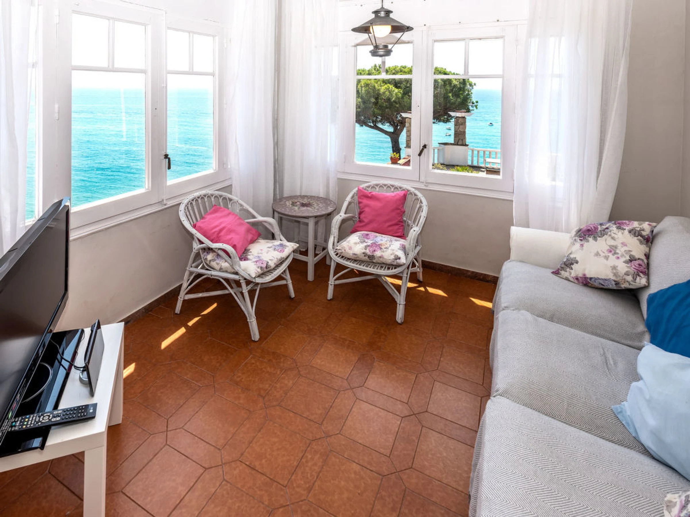 "VISTAMAR", 4-room house 130 m2 on 1st floor. Simple furnishings: small living room with panoramic window. 1 room, without wardrobe with 1 french bed, bidet and separate WC. 1 room with 2 beds. 1 room with 2 beds. Living/dining room with open-hearth fireplace. Exit to the terrace. Kitchen (4 hot plates, oven, dishwasher, microwave, freezer). Shower/WC. Terrace 18 m2, roofed. Terrace furniture, barbecue (portable), deck chairs (4). Marvellous view of the sea. Facilities: washing machine, iron, hair dryer. Internet (WiFi, free). Reserved parking (fenced). [hidden]