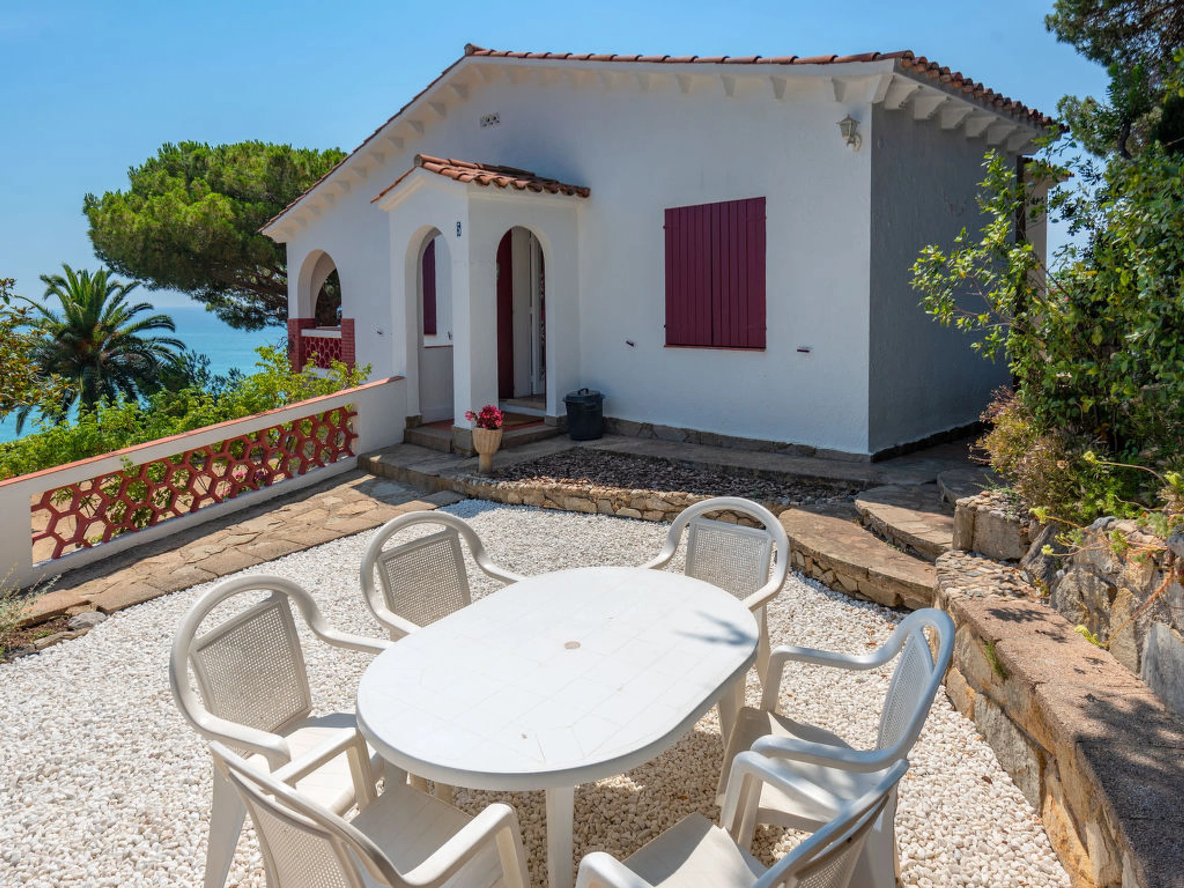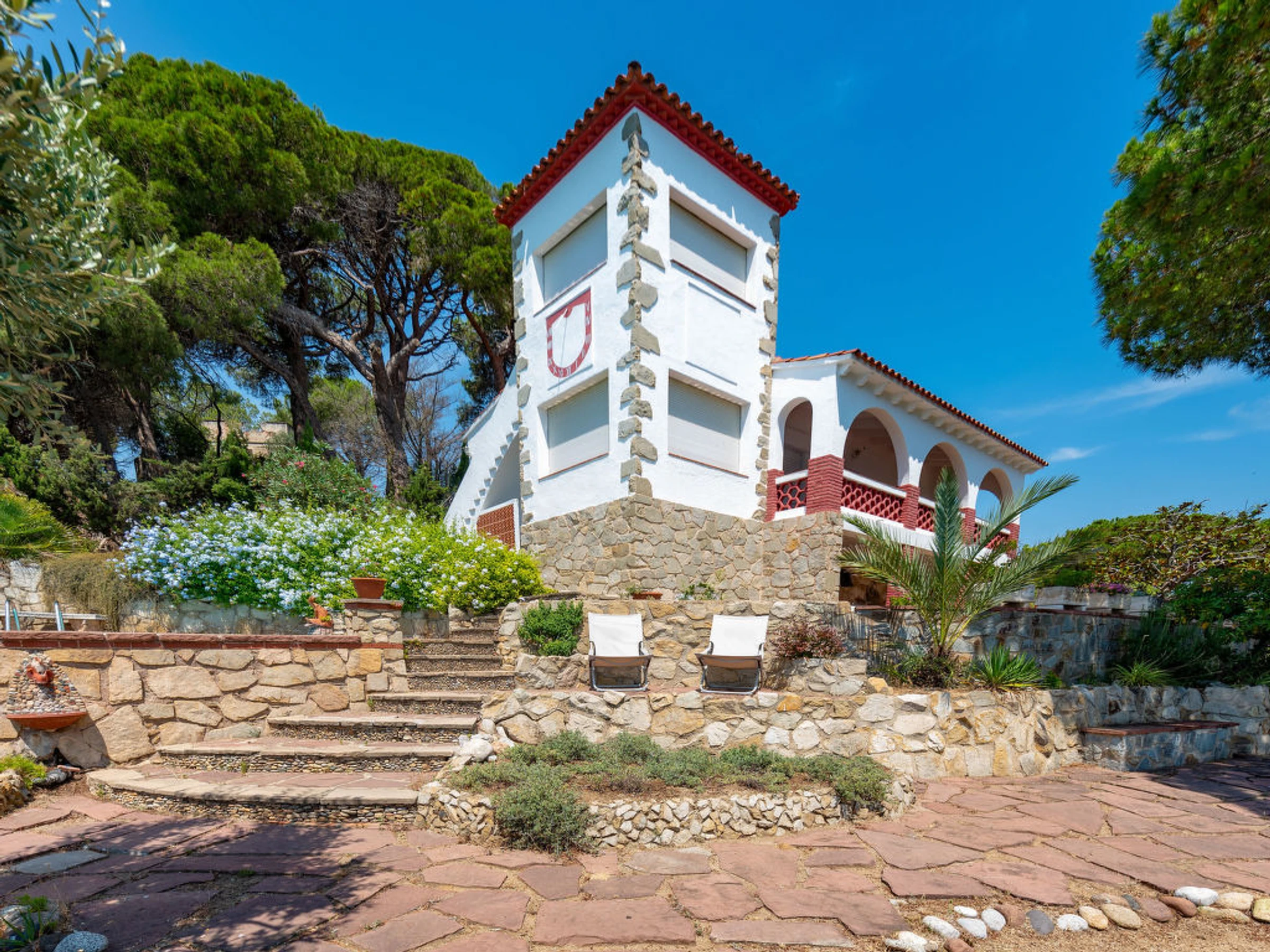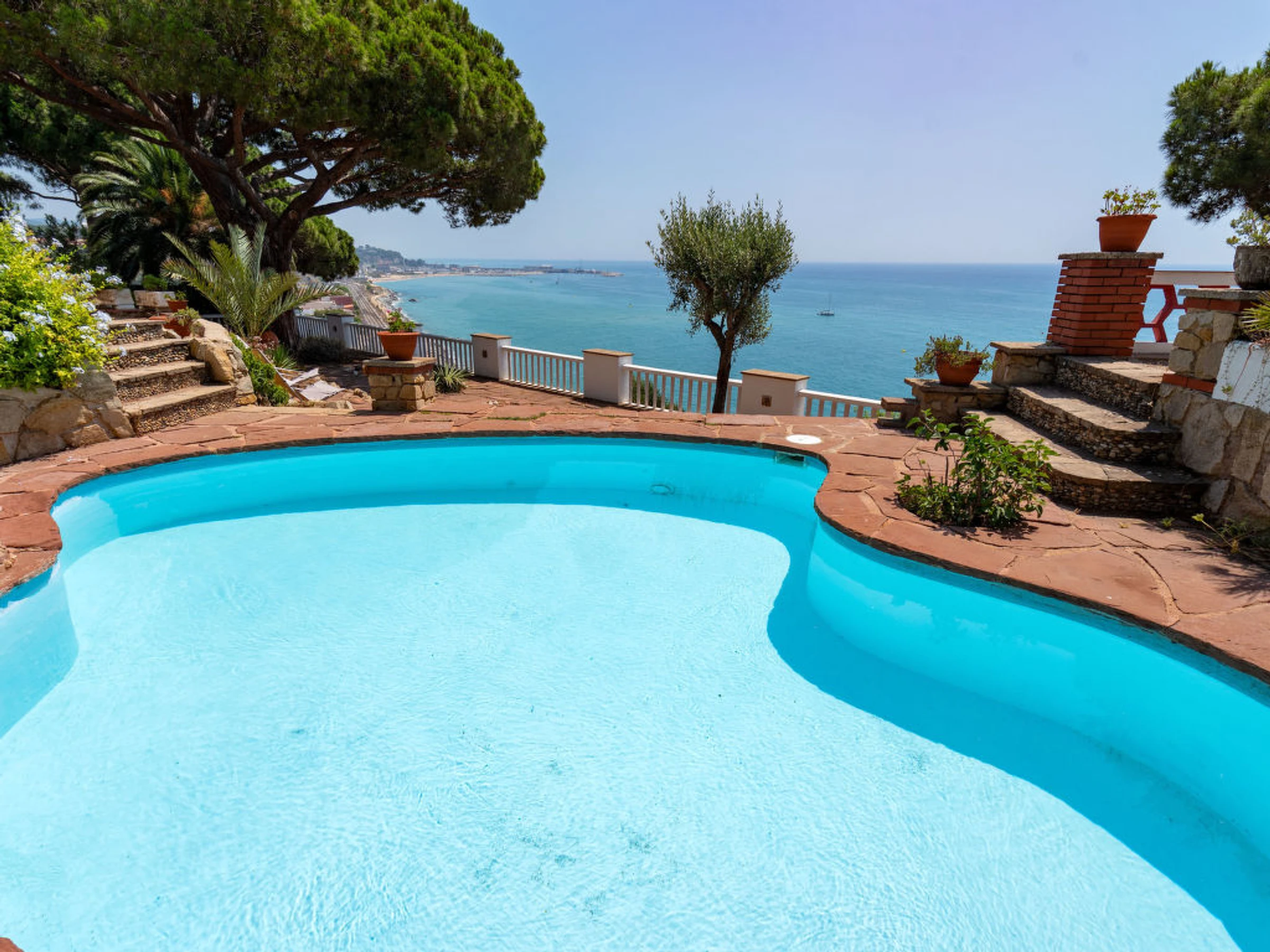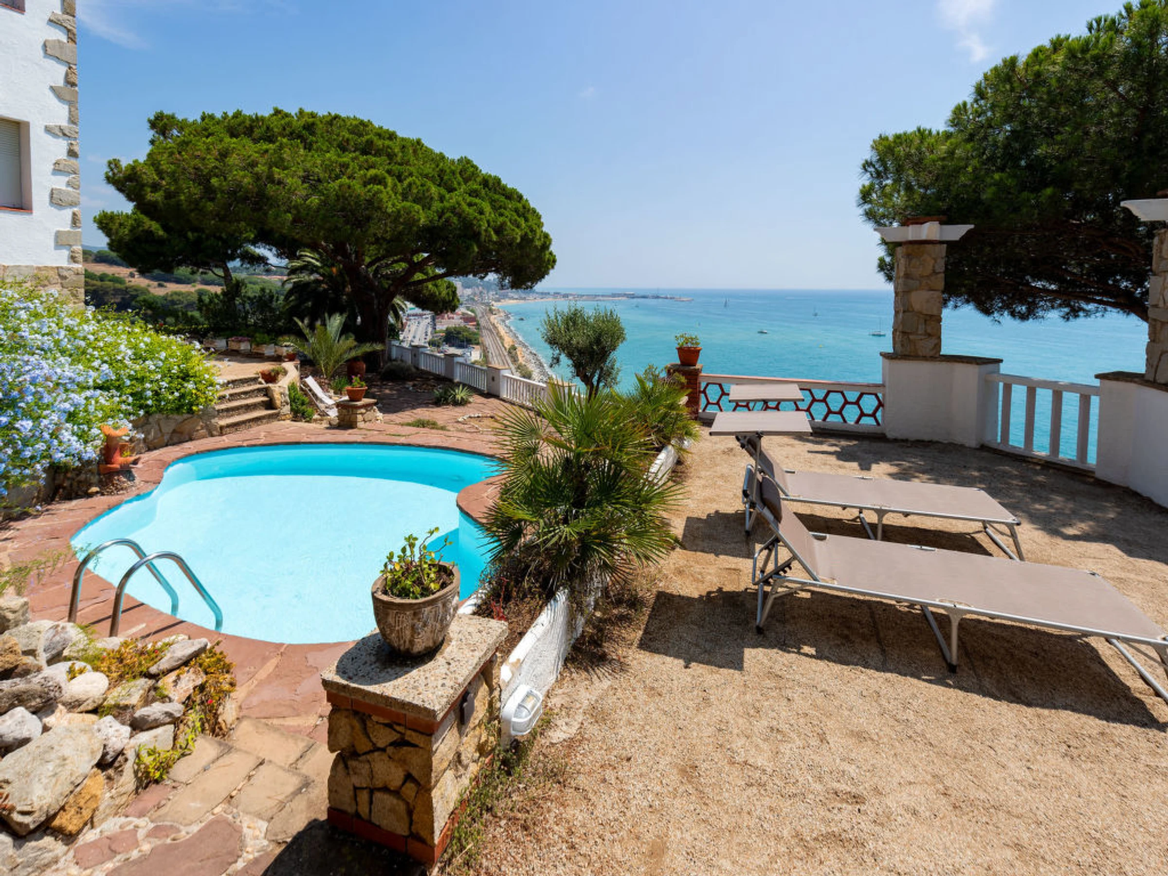 Urb. Les Villes: Cosy, comfortable house "VISTAMAR". In the resort 1.5 km from the centre of D'Arenys de Mar, in a sunny, elevated position on top of a hill, residential area (villas), 100 m from the sea, 600 m from the beach, in a cul-de-sac. Private: natural state property, garden 1'000 m2 (fenced) trees, swimming pool (6 x 4 m, depth 110 cm,[hidden].). Outdoor shower, patio. Steep motor access. Parking at the house. Supermarket, shopping centre, restaurant 400 m, railway station "Arenys de Mar" 500 m, sandy beach "Arenys de Mar" 600 m, rocky beach "Arenys de Mar" 400 m.