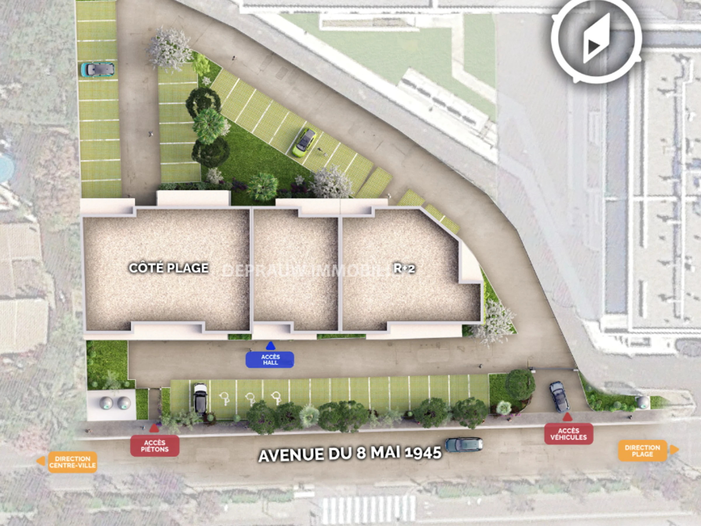 The apartment is located in a residence between the beach and the village, close to shops.