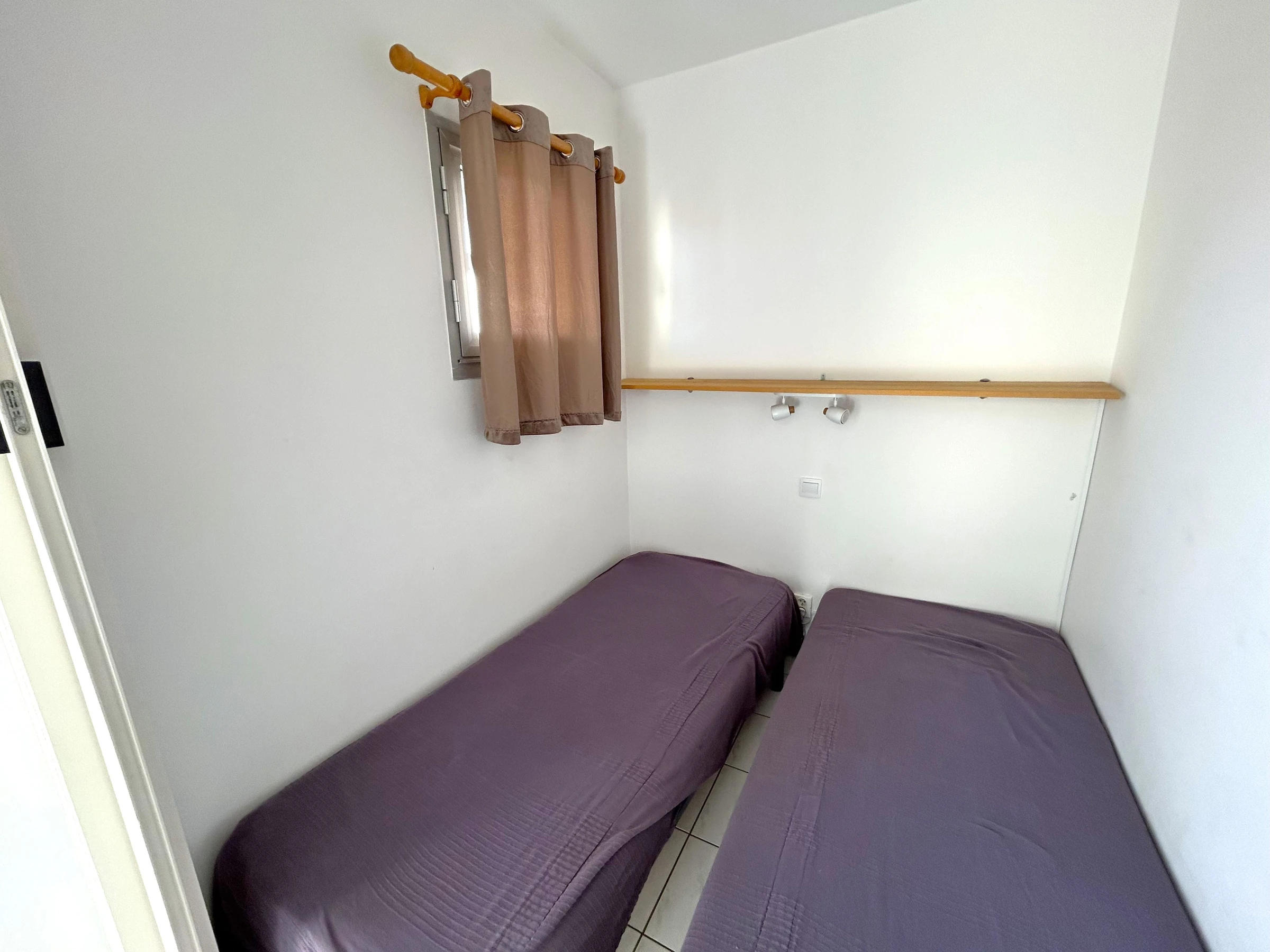 The apartment is located on the 3rd floor of a secure residence 300m from the beach. It can accommodate 4 people: 1 double sofa bed in the living room and 2 single beds in the alcove. The apartment is equipped with a refrigerator/freezer, a microwave, 4 electric burners, a washing machine, a dishwasher, a television, and air conditioning. It also features a 6m² south-facing balcony with unobstructed views and a private parking space in the residence.