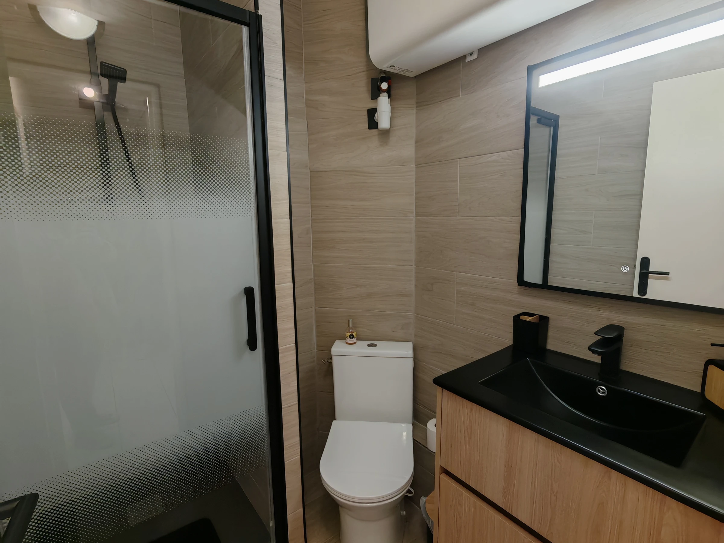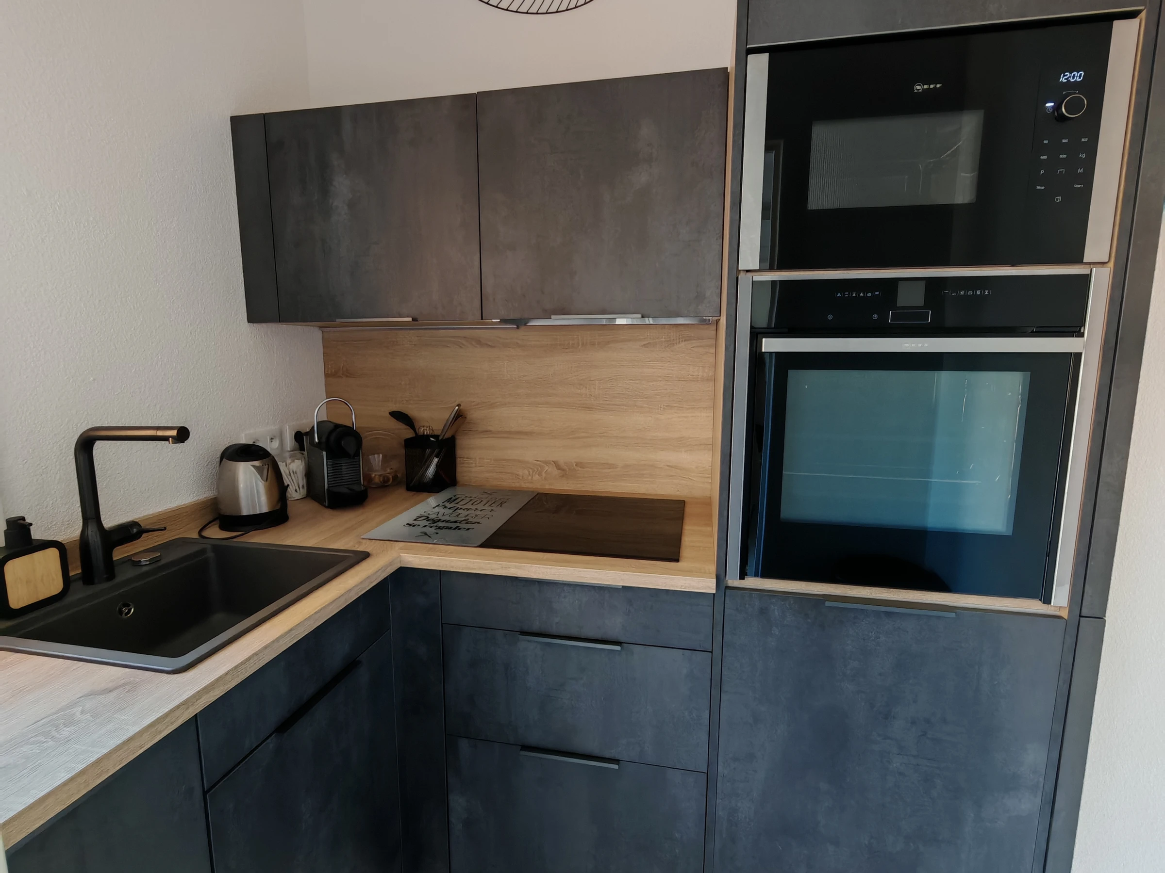 The open kitchen has a complete and recent equipment. A stylish bathroom with toilet completes this cozy and functional space.