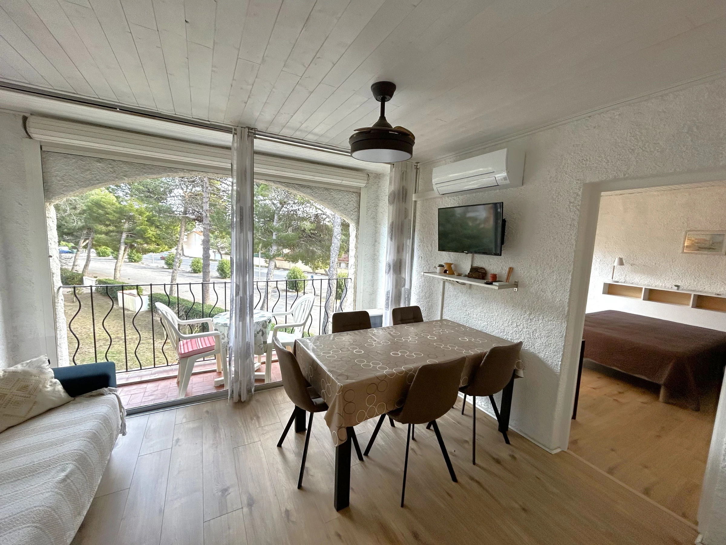 The apartment is located on the second floor of a residence with a swimming pool, close to shops and 300 meters from the beach.