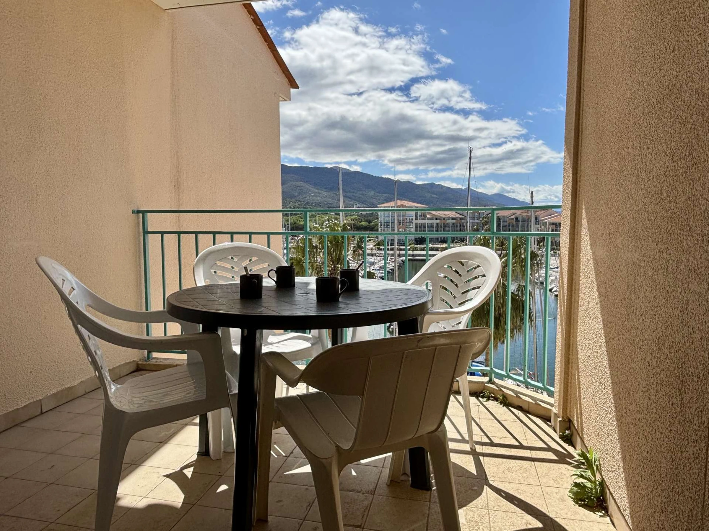 En plein cœur du port de plaisance d’Argelès-sur-Mer, cet appartement deux pièces se situe au quatrième étage de la résidence « La Réale ».