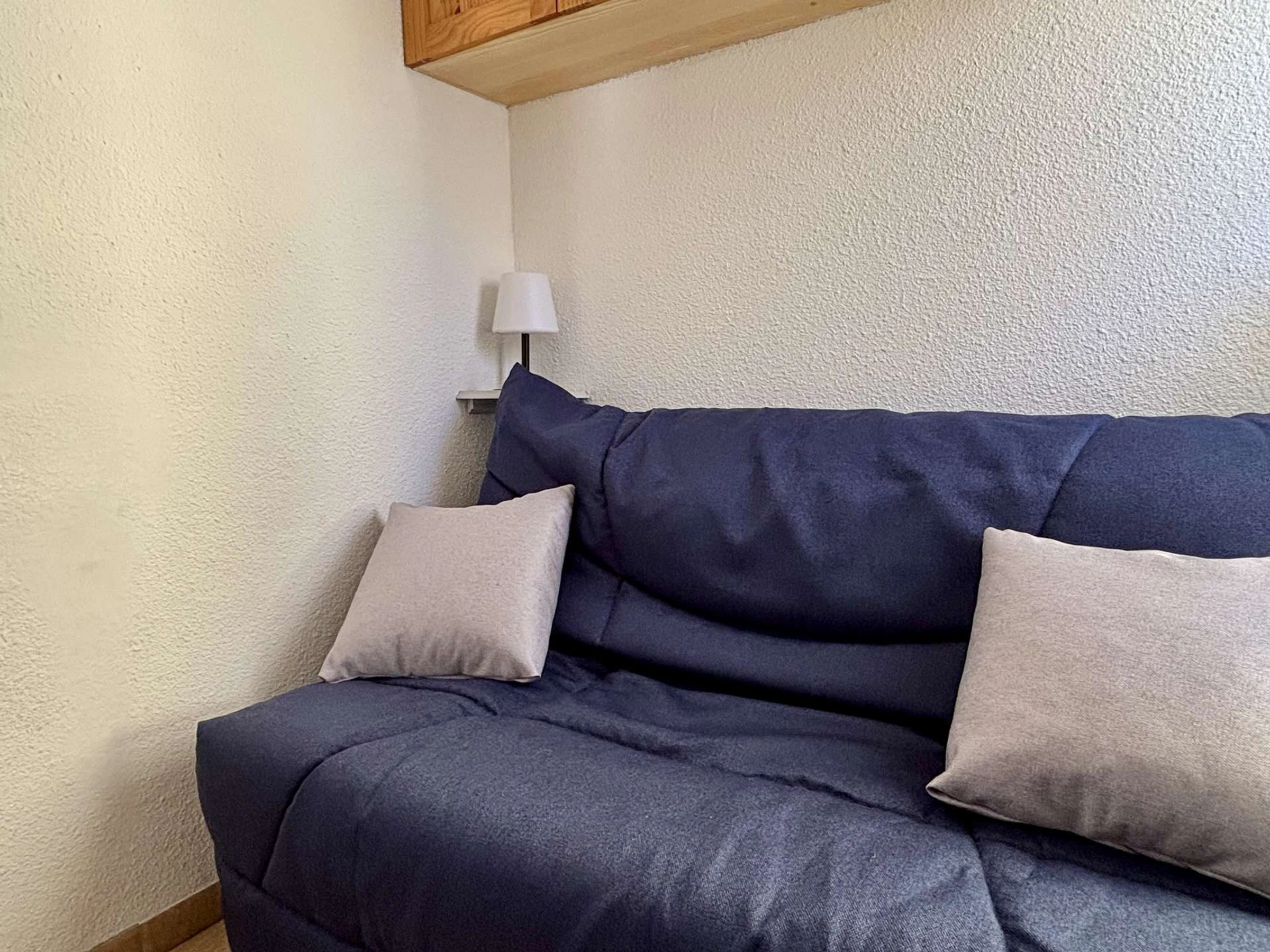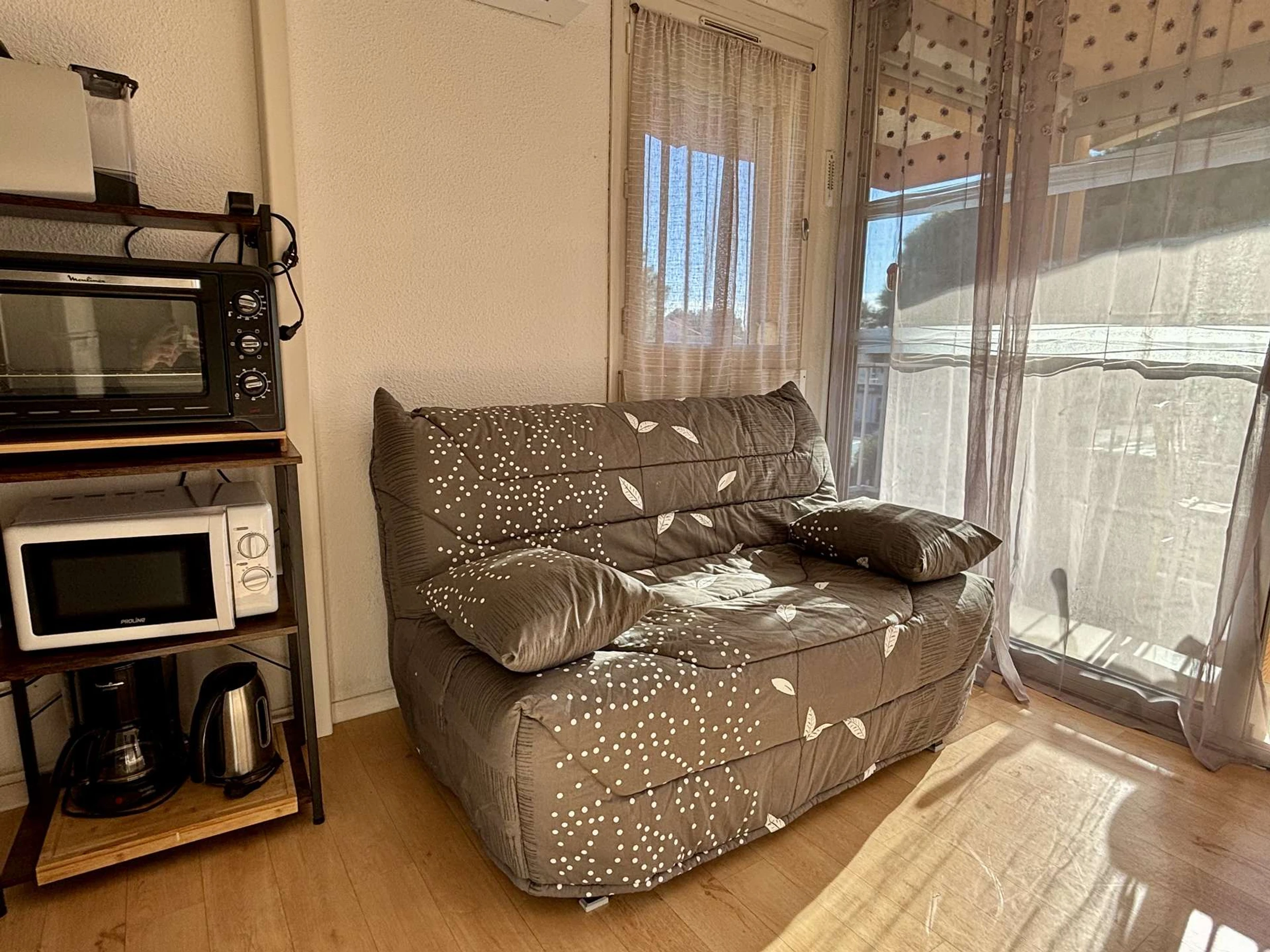 This rental in the south, situated on the second floor, facing southeast, comprises a living room with a double sofa bed, a sleeping alcove also with a double sofa bed, a fully equipped kitchenette, and a bathroom with toilet.