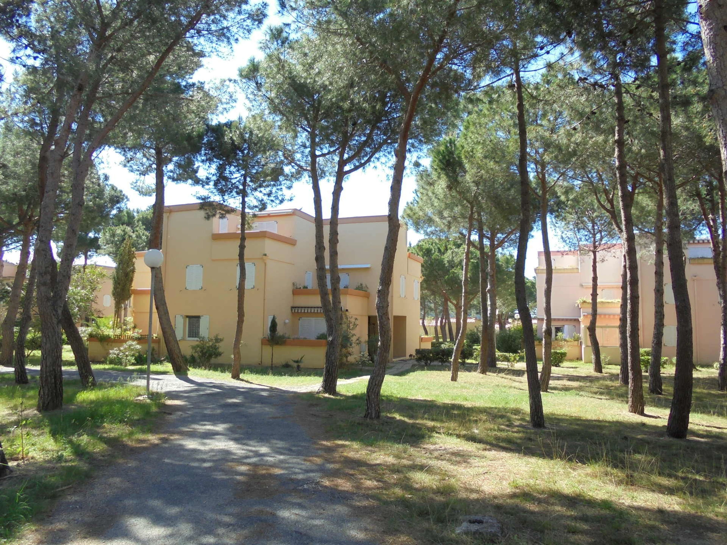Set of small 2-storey buildings with beautiful terraces, in the middle of a very pleasant pine forest, about 250m from the beach, close to shops and