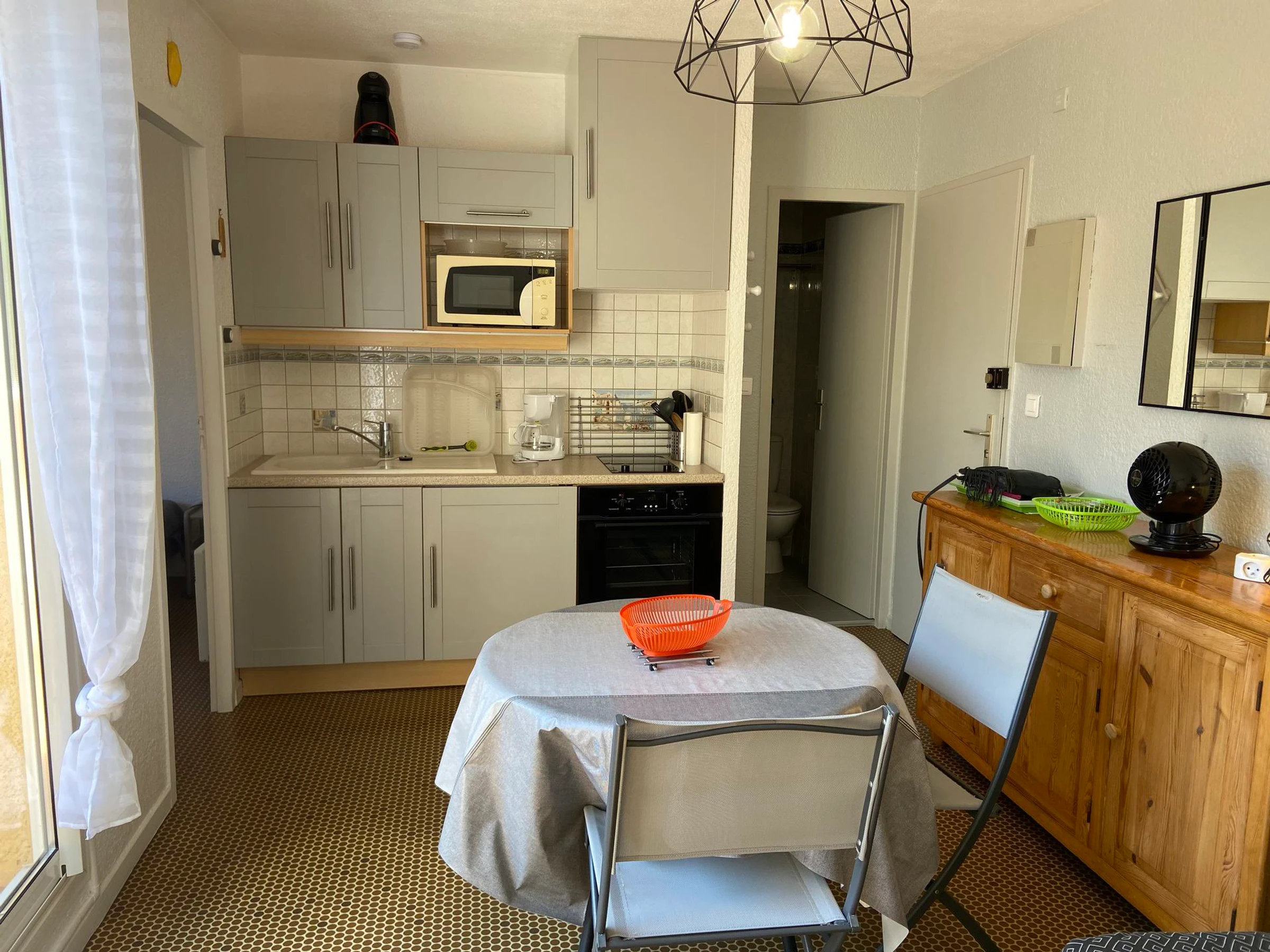 KITCHENETTE : fridge, electric cooker (oven and ceramic hob), microwave