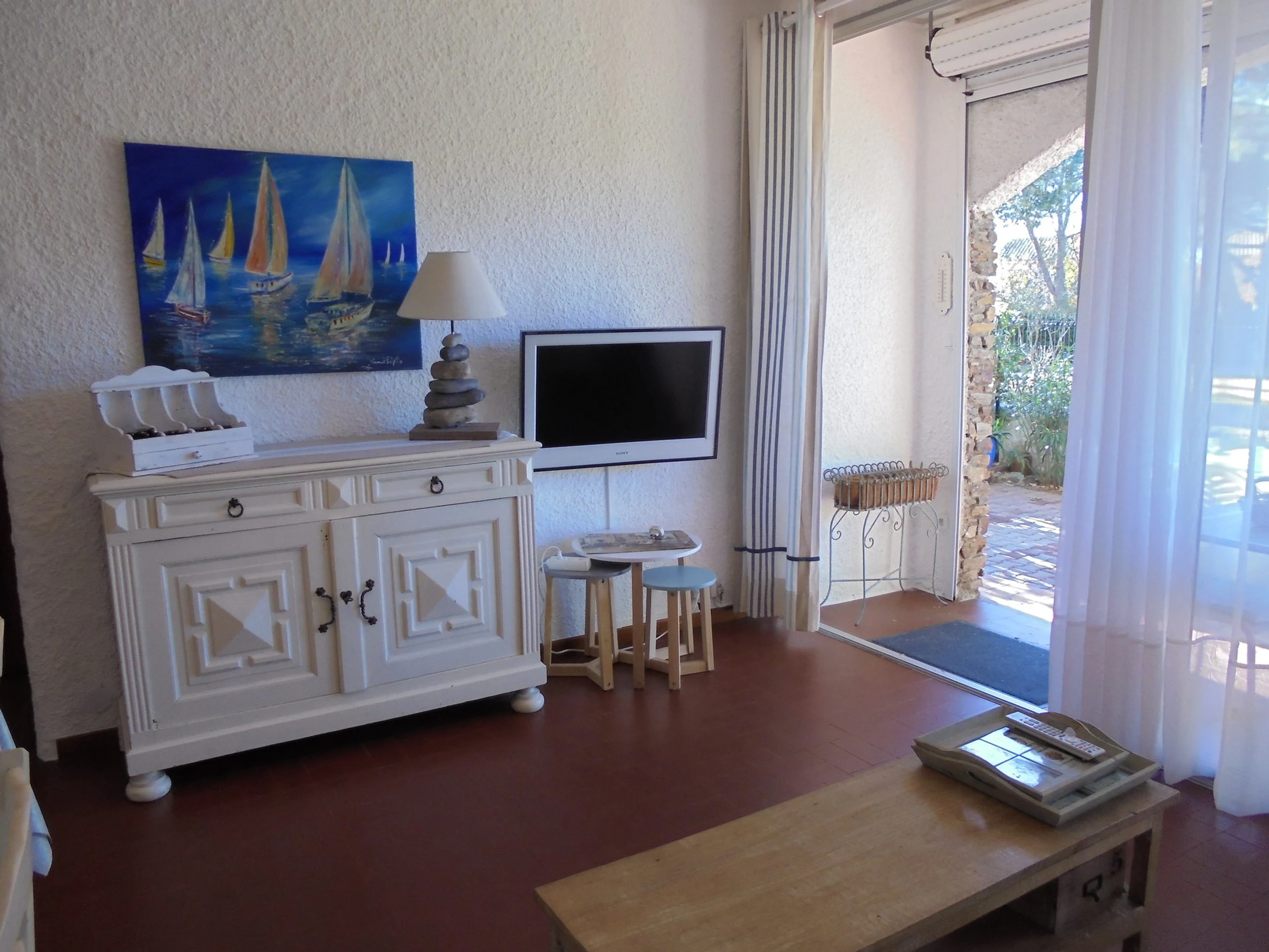 LIVING ROOM : 1 sofa bed for 2 persons, tv, balcony and terrace