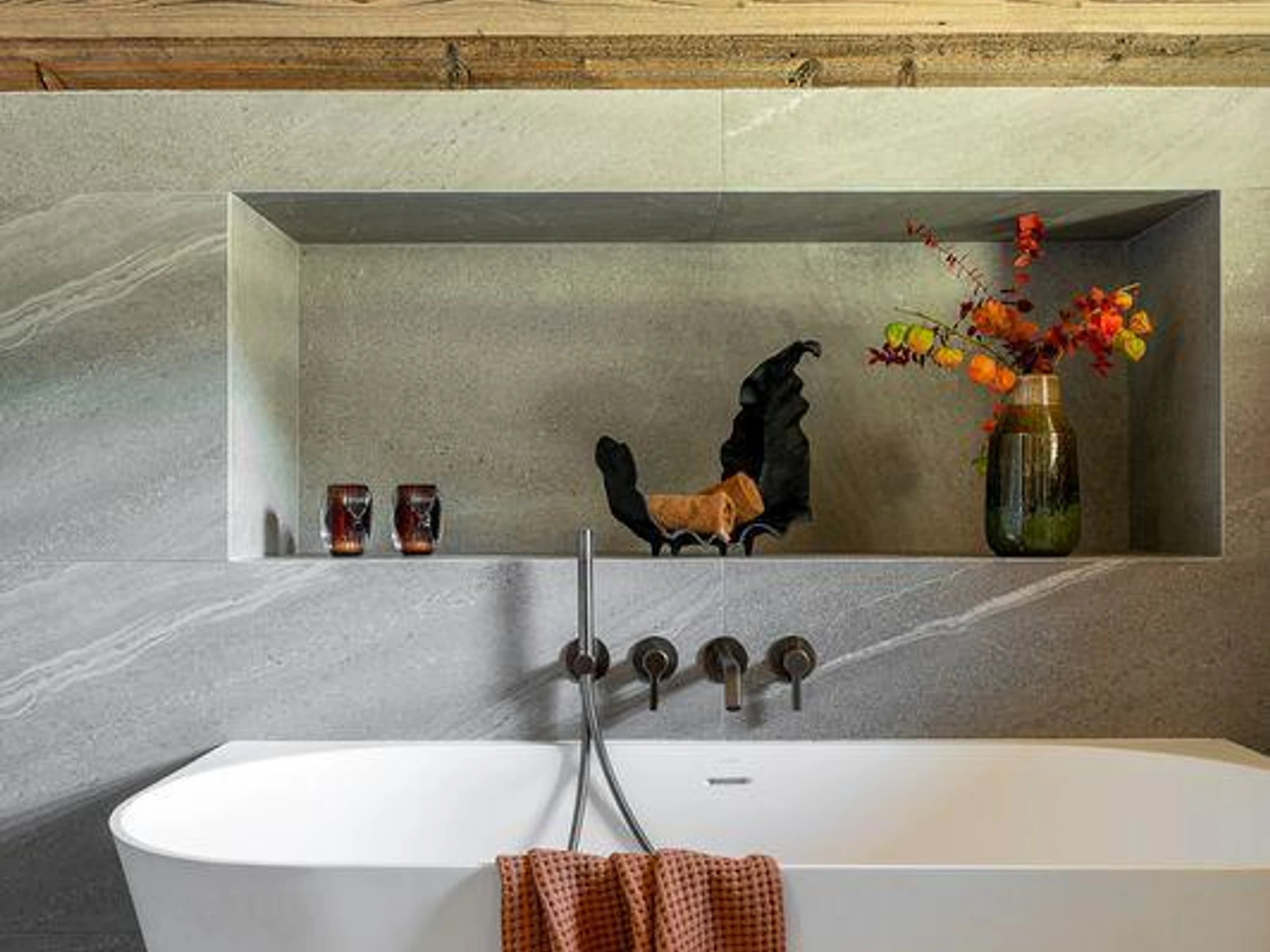- Bathroom with bath, double shower with massage jets and double washbasin