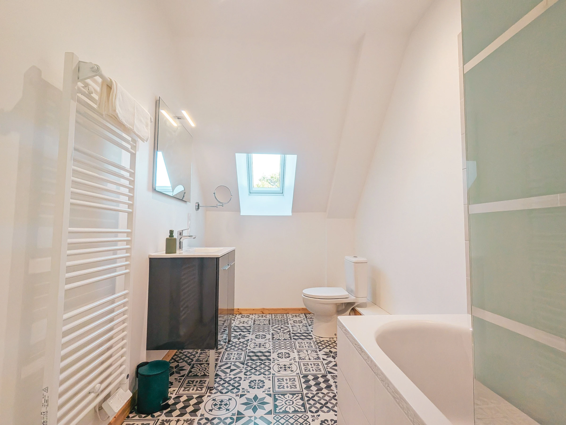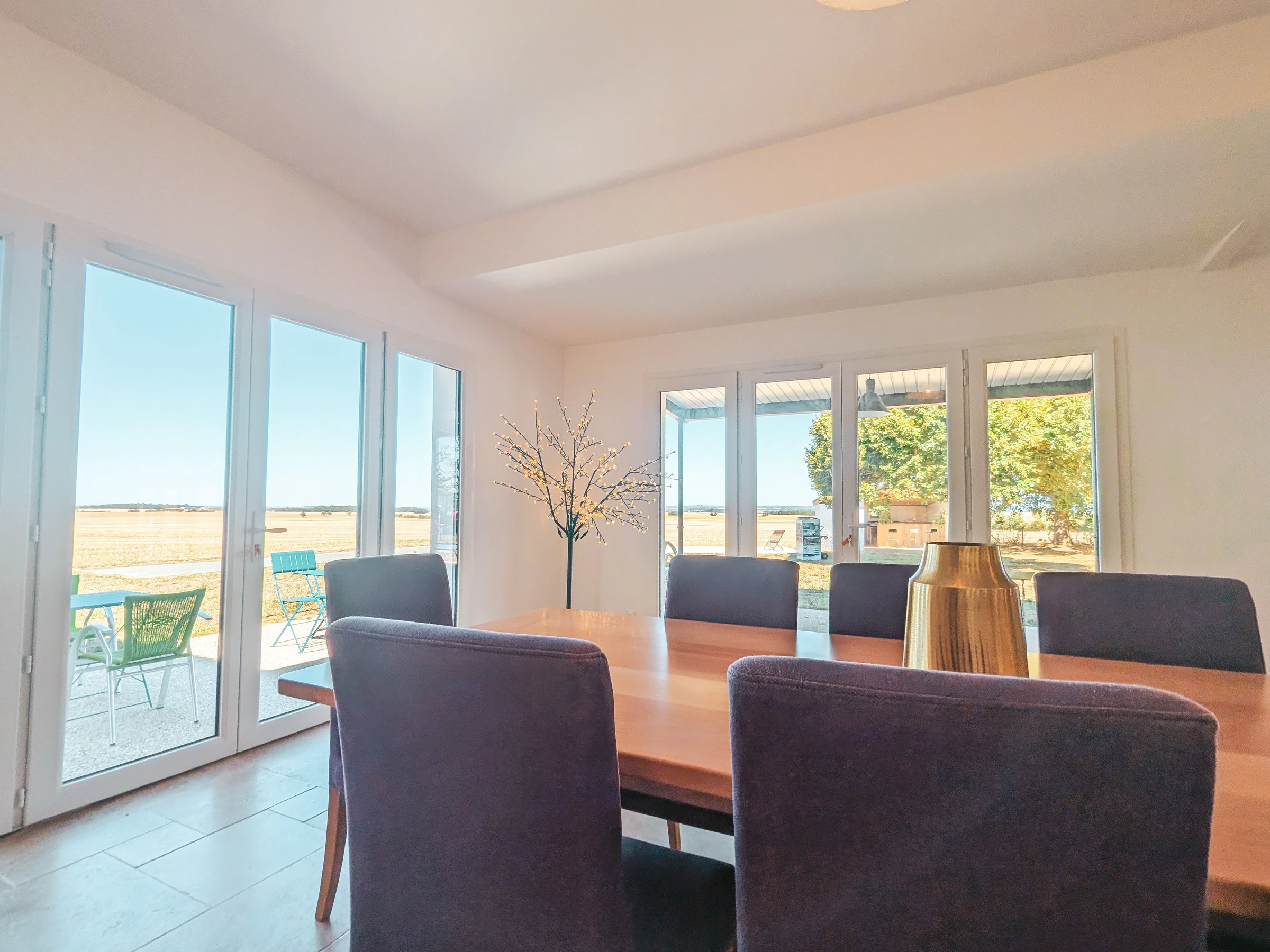 The living areas invite conviviality: a spacious living room bathed in light, a dining room opening onto the terrace, and a fully equipped modern kitchen, extended by a utility room. For optimal comfort, the accommodation features 3 shower rooms, 2 bathrooms, and 6 toilets, one of which is separate from the bedrooms and located in the entrance hall.