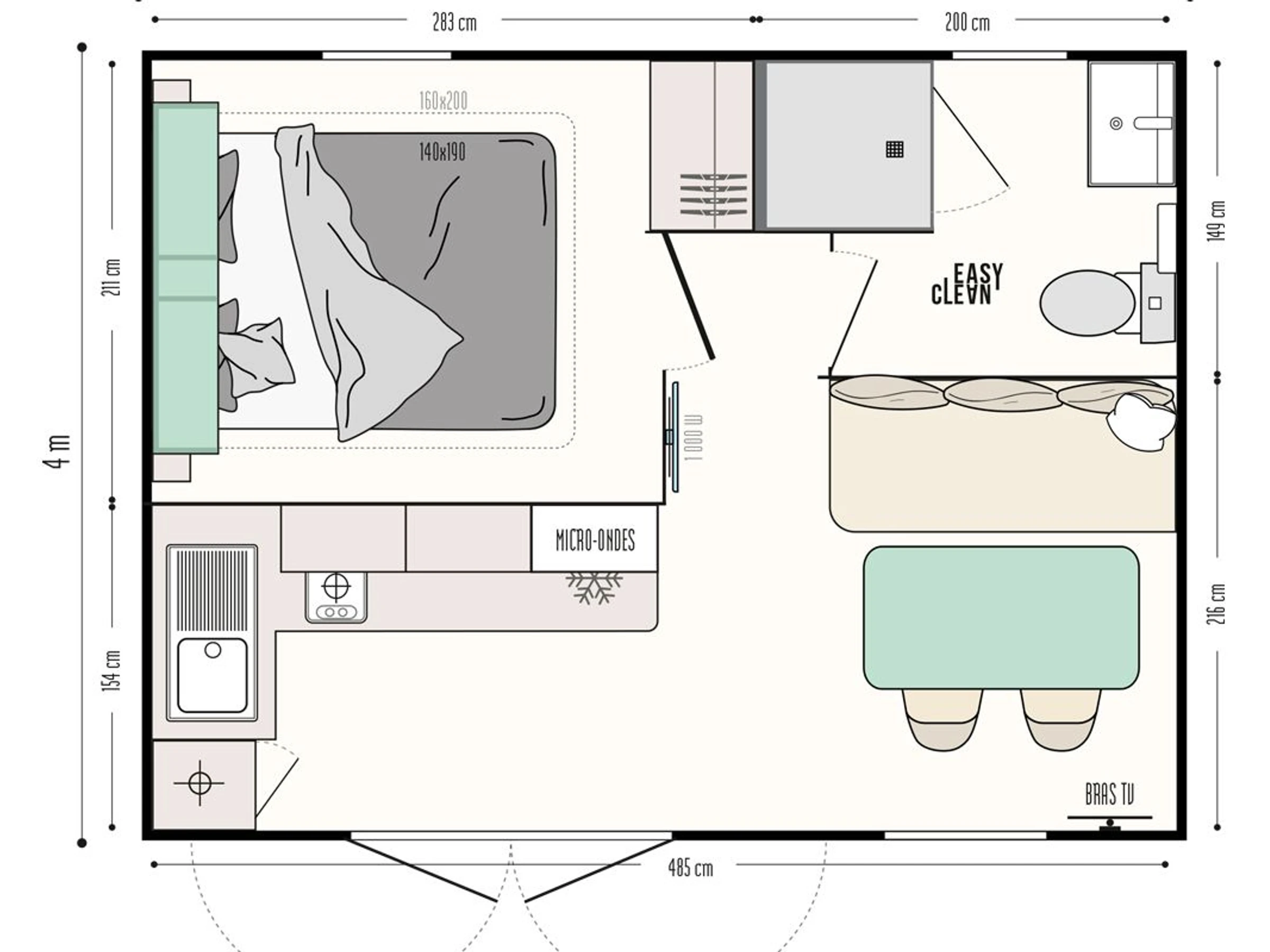 22m² mobile home for 2 people: