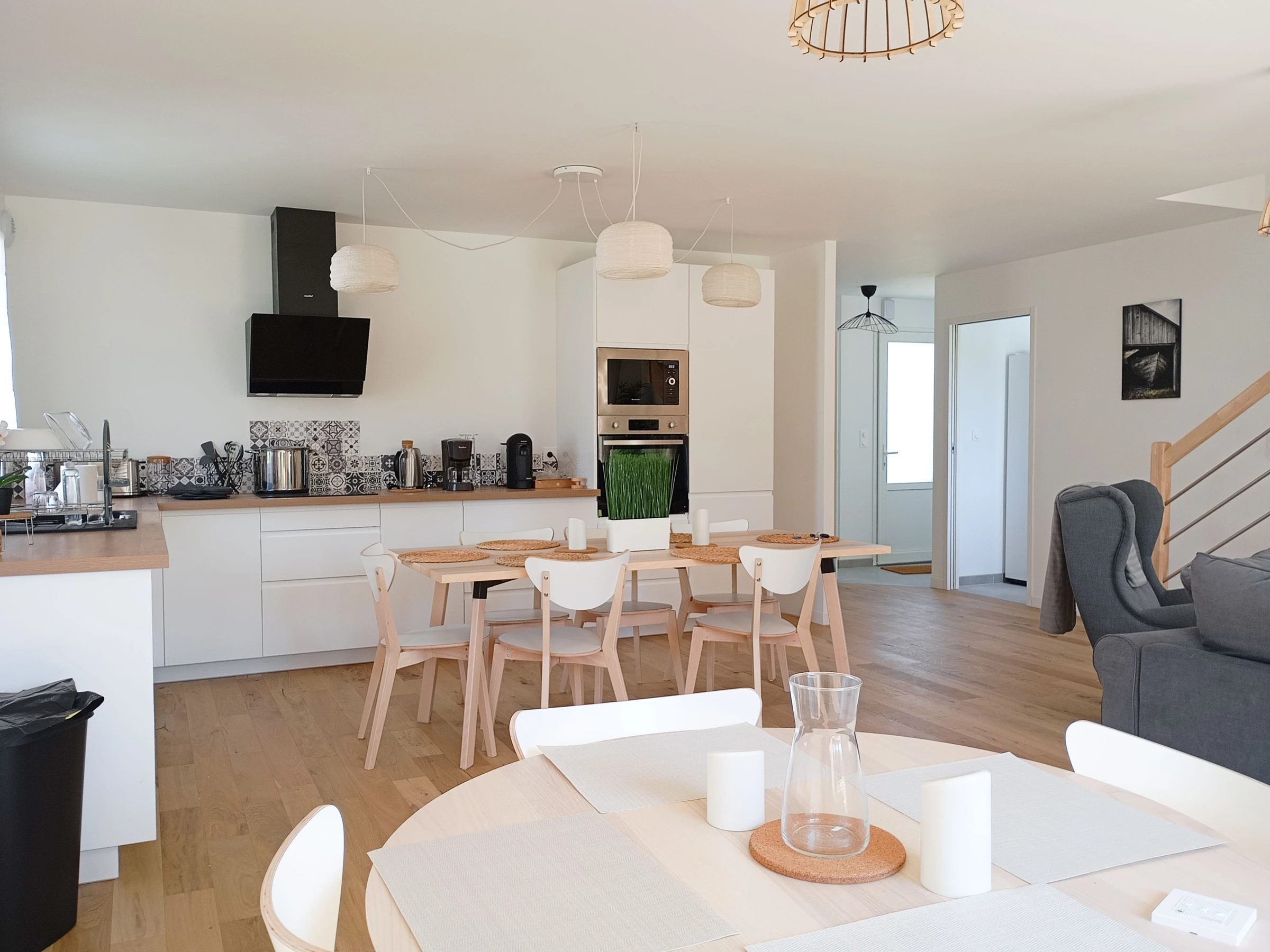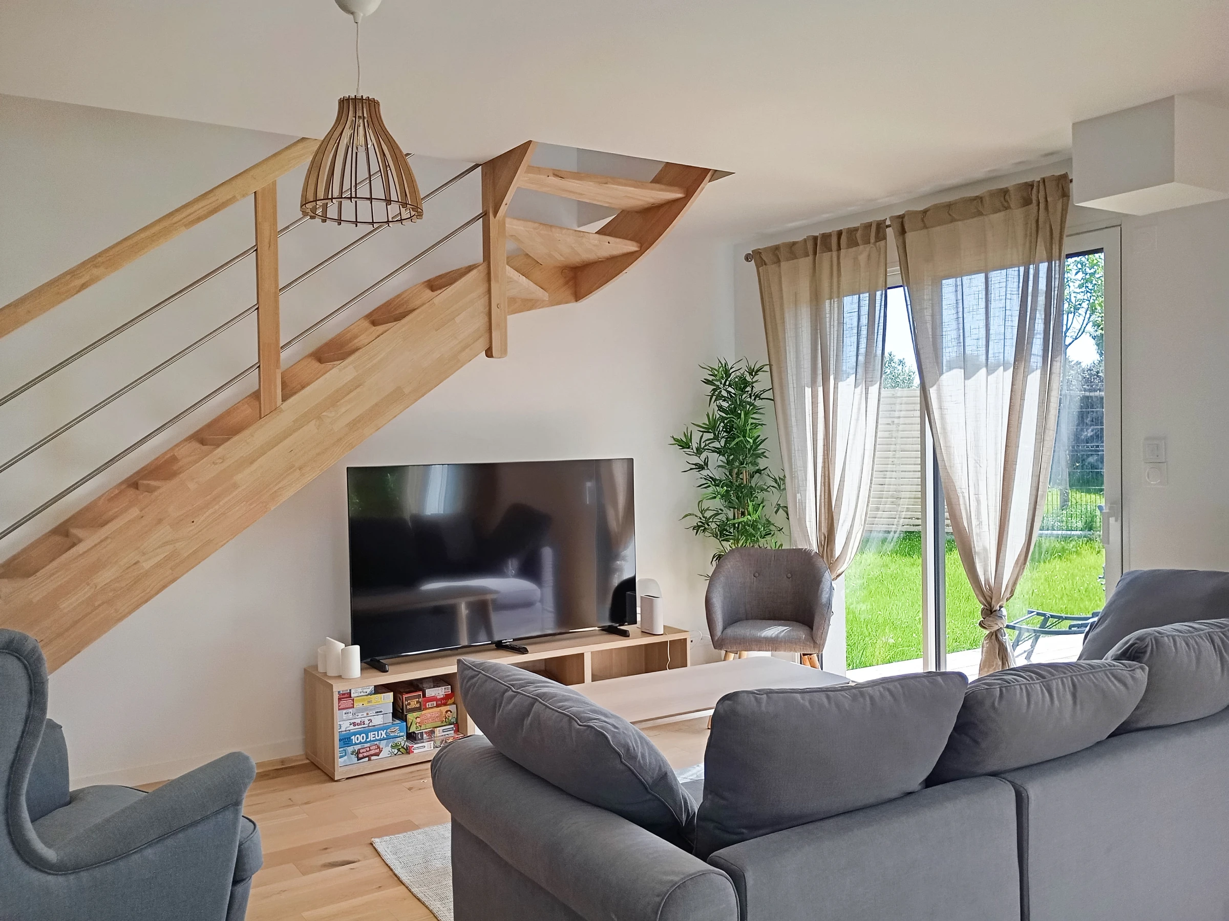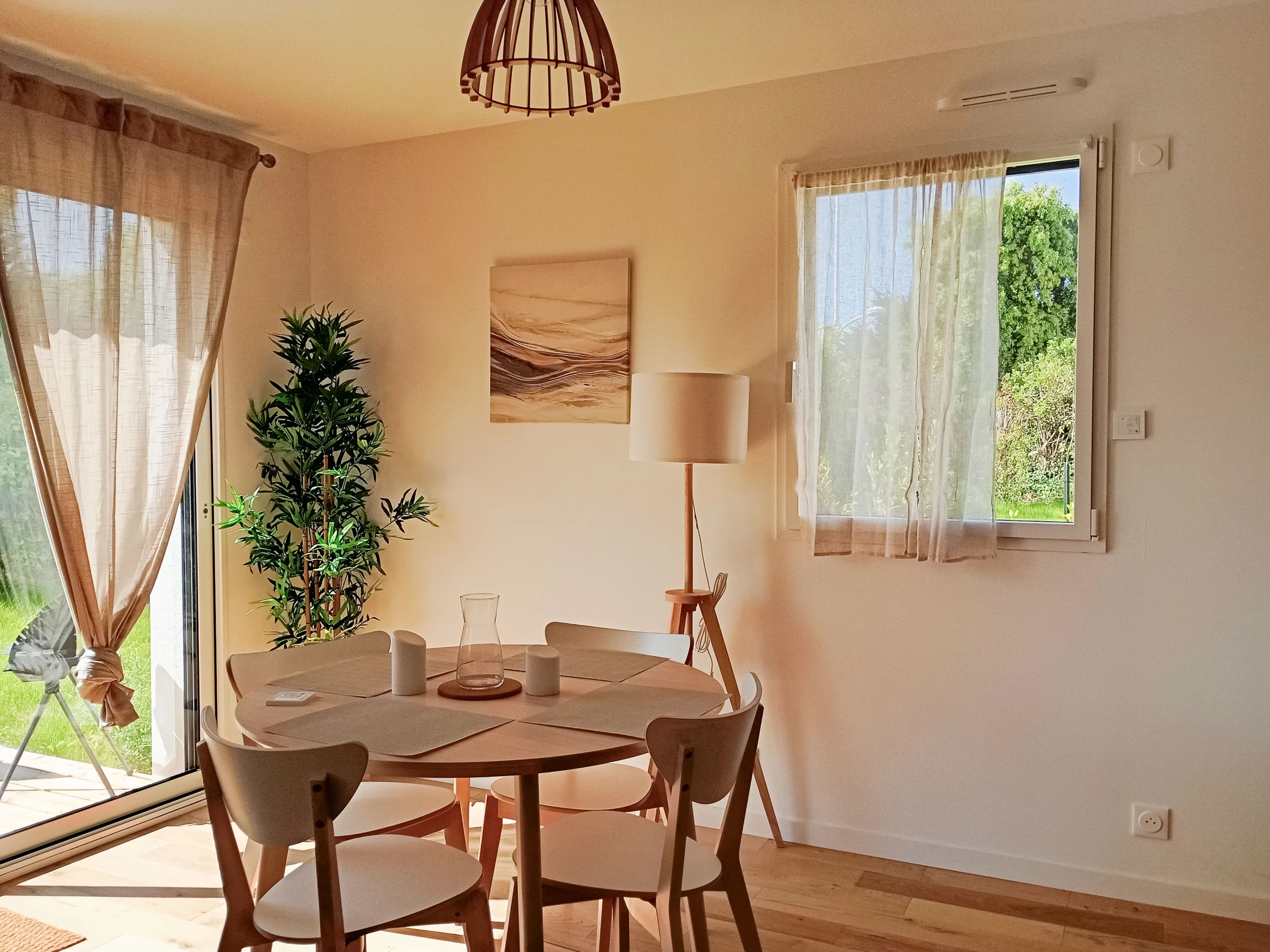 The superb beach of Port Navalo 8 minutes walk, in a residential area ideal location to fully enjoy your stay, this charming house is composed on the ground floor of an entrance opening onto a large living room, with open fitted and fully equipped kitchen, a storeroom, a master bedroom, a shower room and a separate toilet.