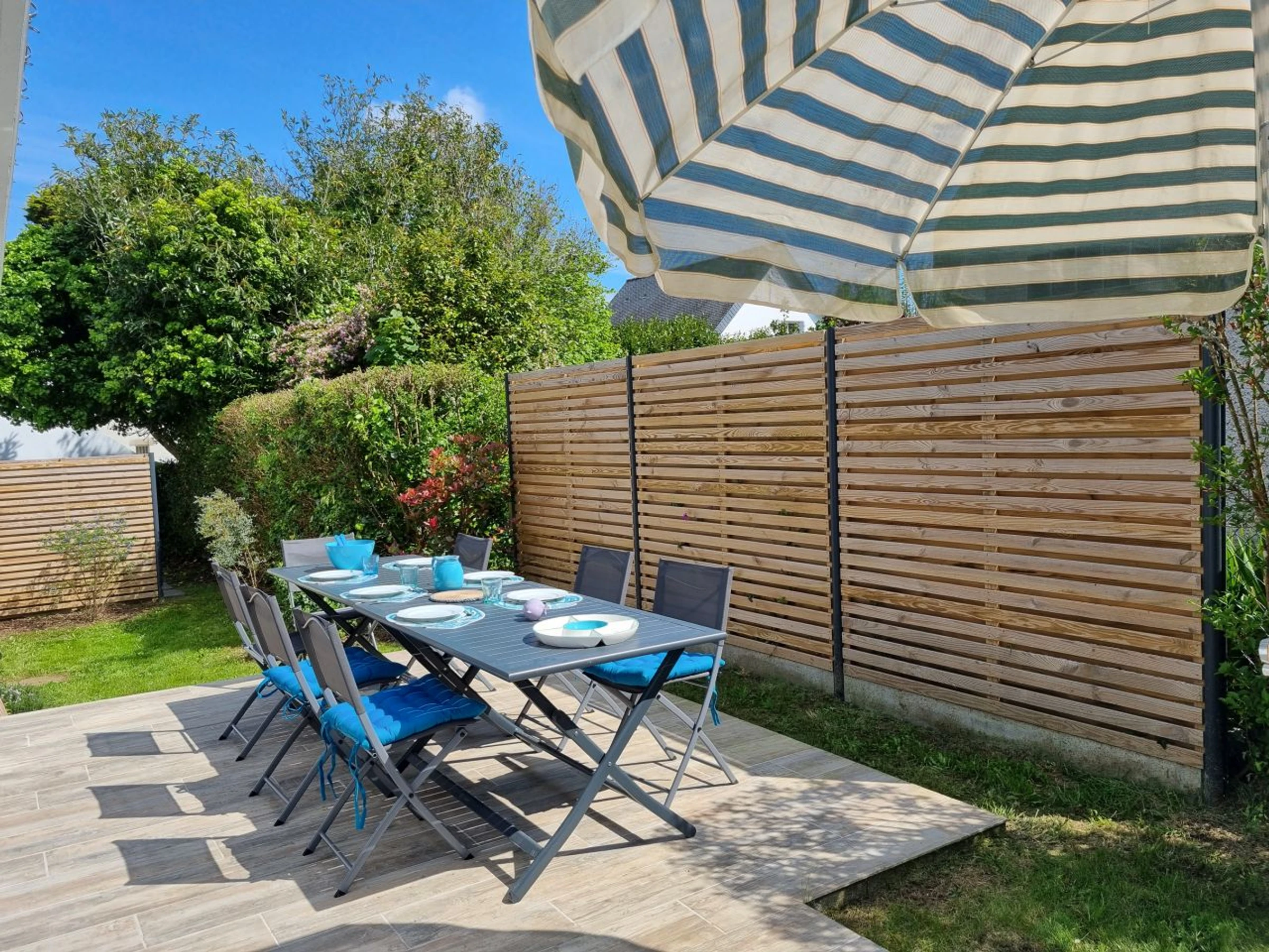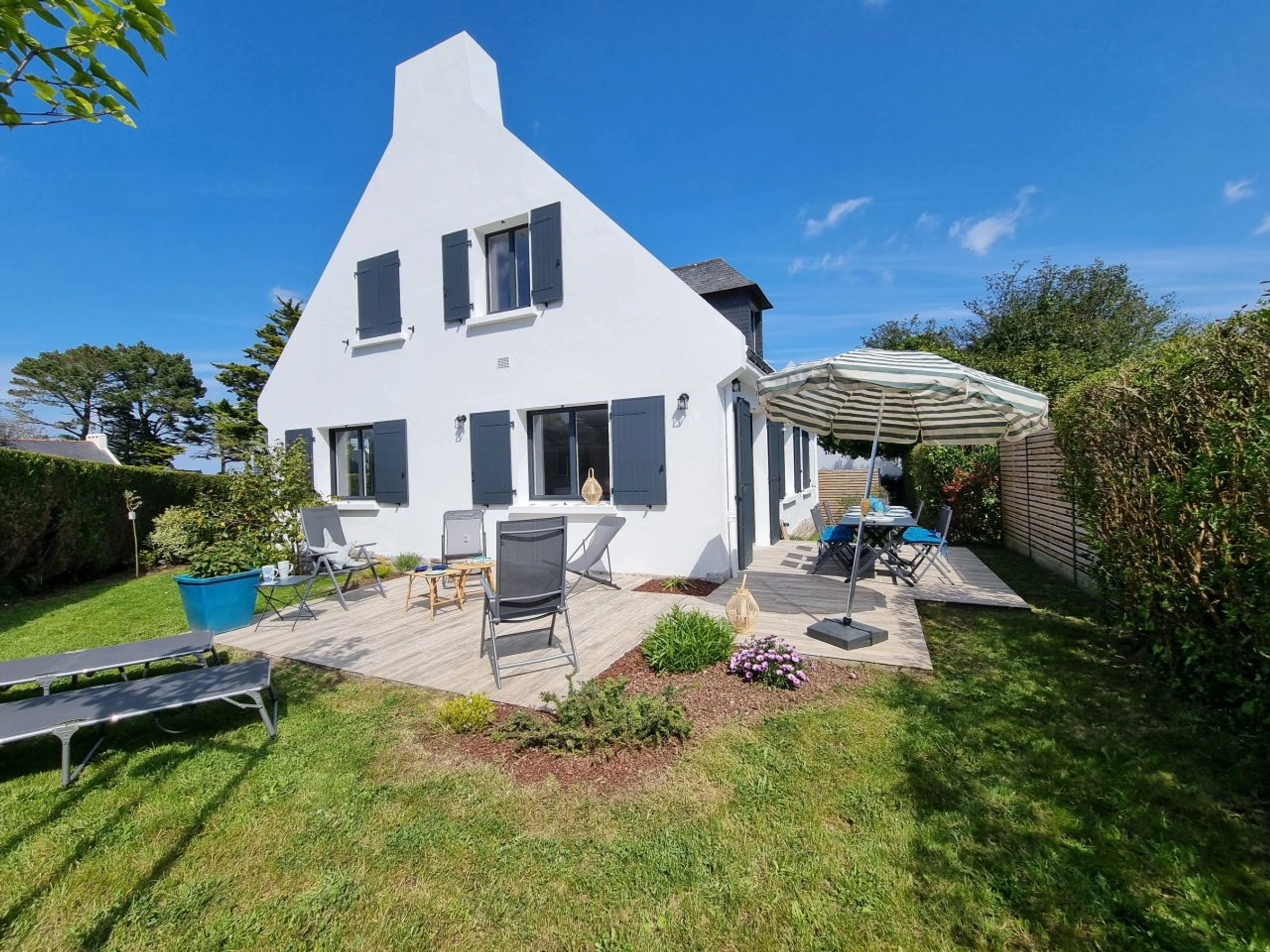 Enclosed garden of approximately 350 m², with a large terrace on two sides of the house, allowing for beautiful sun exposure at all times of the day. Garden furniture.