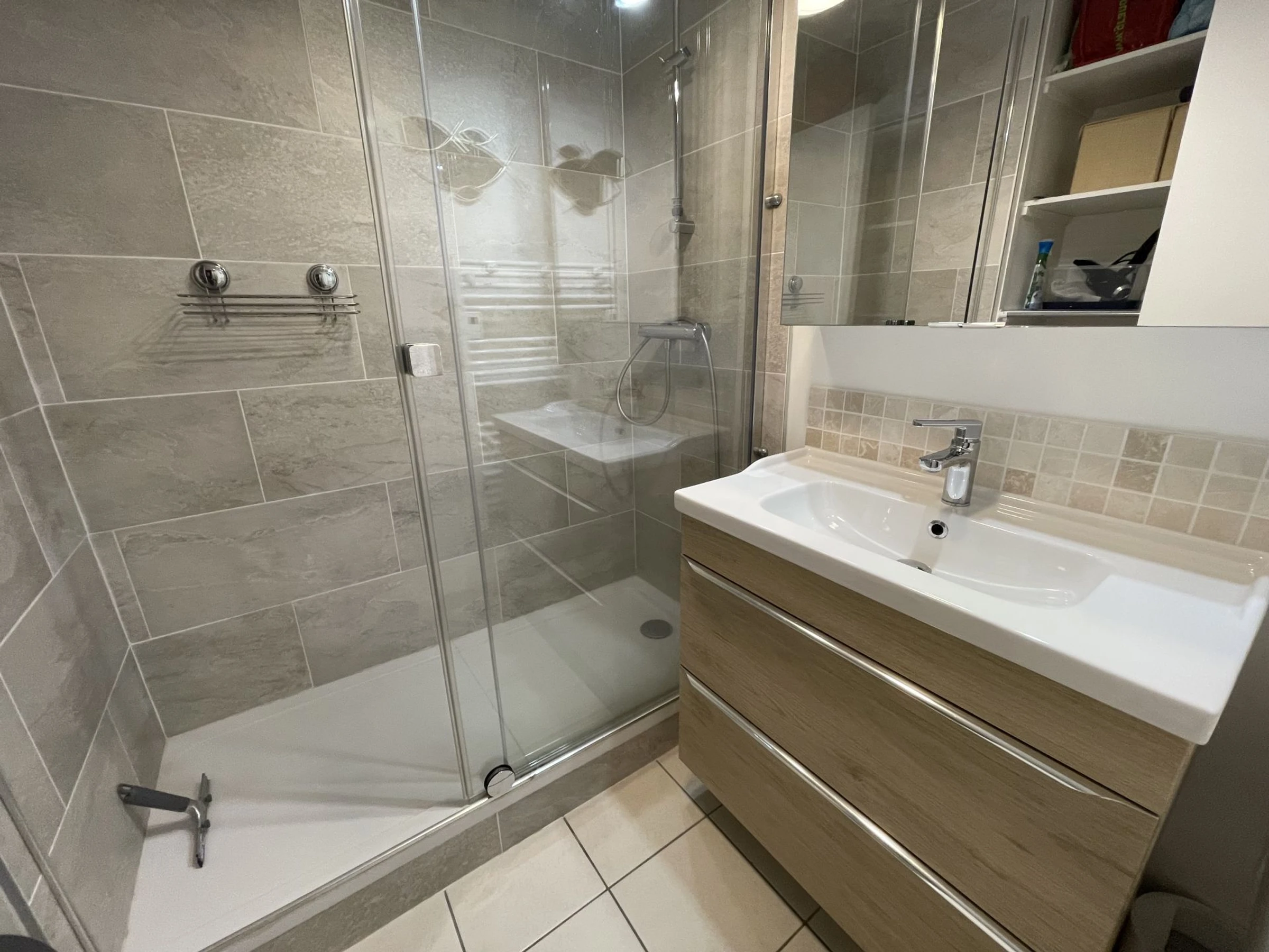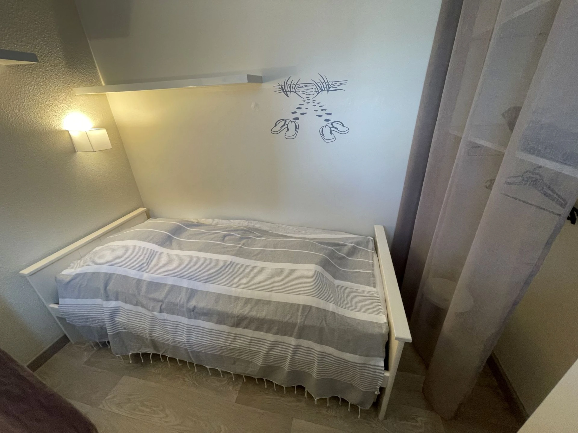 Entrance hall with closet and coat rack, 1st bedroom (1 pull-out bed, sleeping 2) with closet (shelves and hanging space), toilet, shower room with washer/dryer, 2nd bedroom (1 double bed) with TV, shelves, chest of drawers and small closet, living room with TV, fully equipped kitchenette (microwave, 6-place dishwasher, oven, 3-burner induction hob, refrigerator with freezer compartment, filter coffee maker, TASSIMO pod coffee machine).