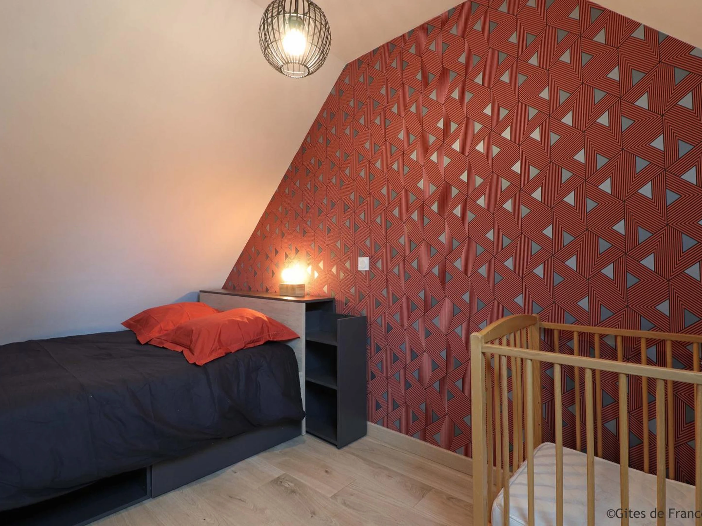 First floor: bedroom (double bed 140 x 190 cm, cot), bedroom (double bed 160 x 200 cm, two single beds 90 x 190 cm), separate toilet. Bed linen, household linen, and towels provided.
