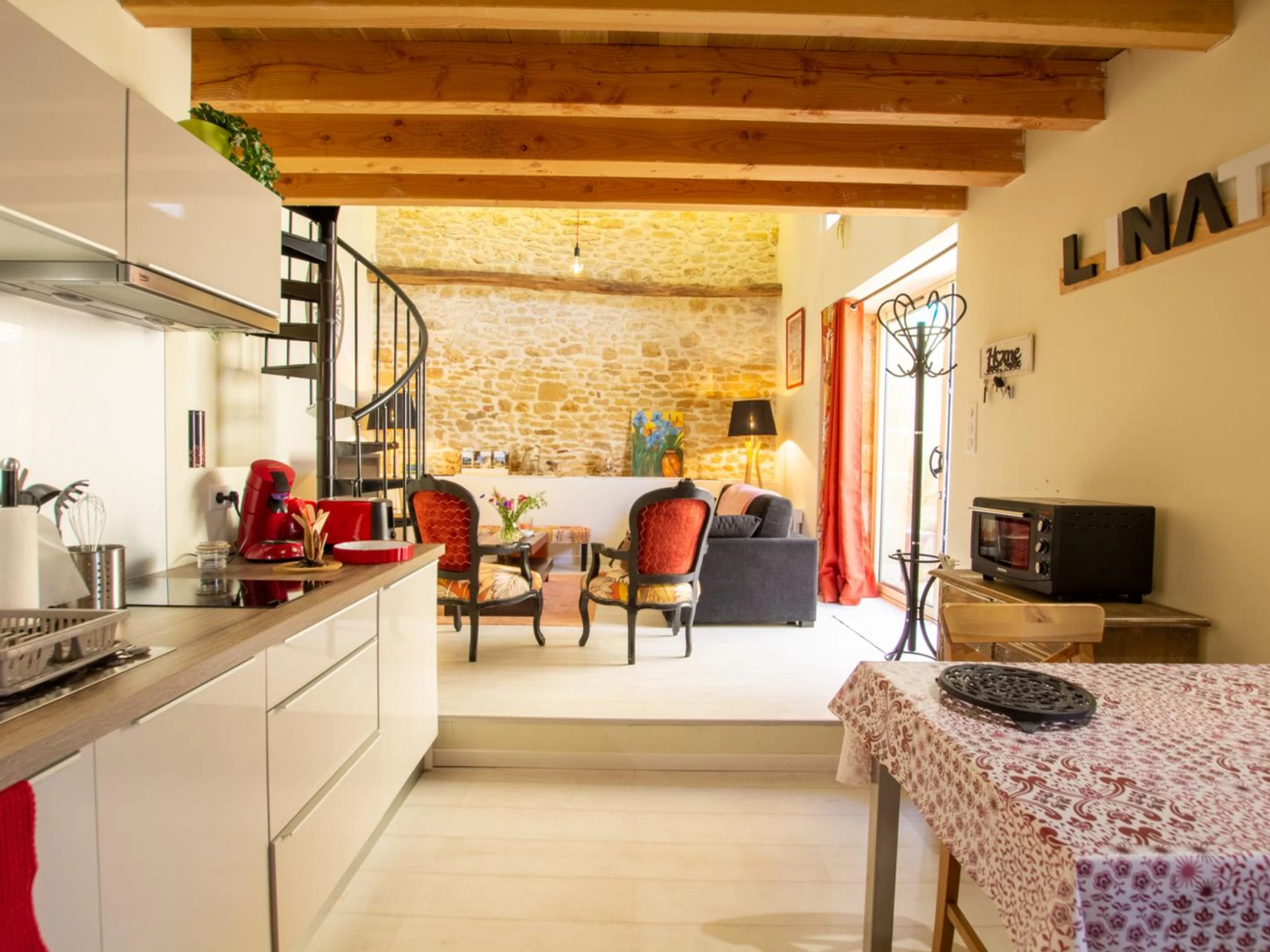 Please note that the cottage is not recommended for small children due to its staircase, kitchen, and living room on two levels (photos 4). End-of-stay cleaning €40. Towels/person €4. Double bed linen/change €10. Non-smoking cottage. In this pretty house with its beautiful yellow stone, a signature of our Périgord homes, you'll be 20 minutes from the old town of Sarlat, which has preserved traces of the past... A charming and comfortable setting just for you! The decor has been carefully considered in this cottage for 2 people in the heart of the Périgord.