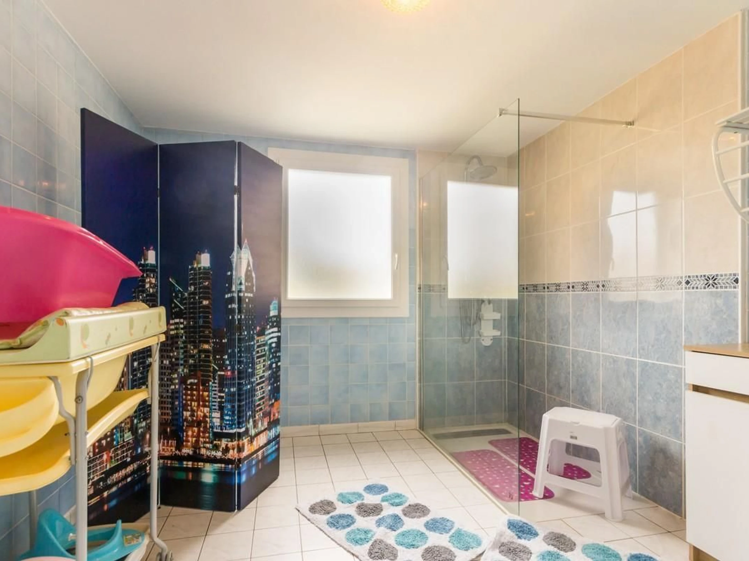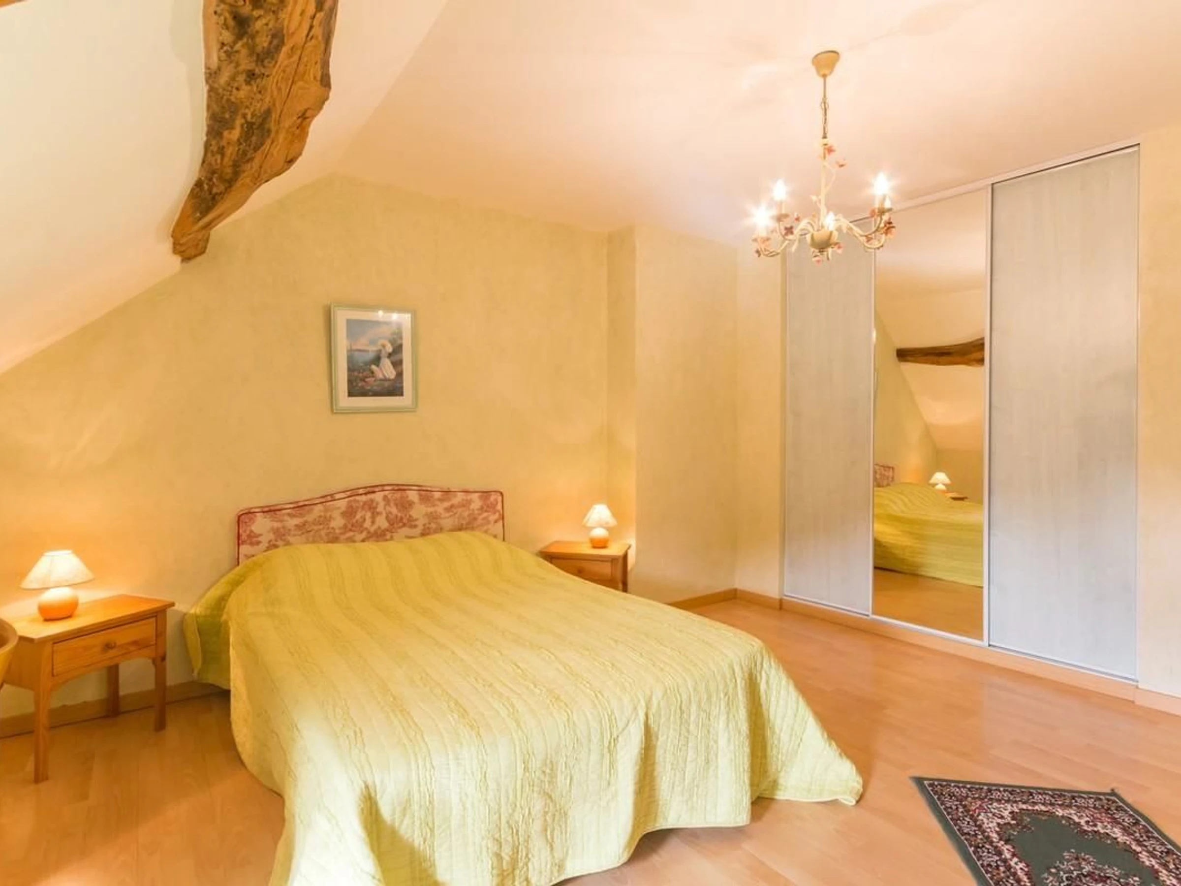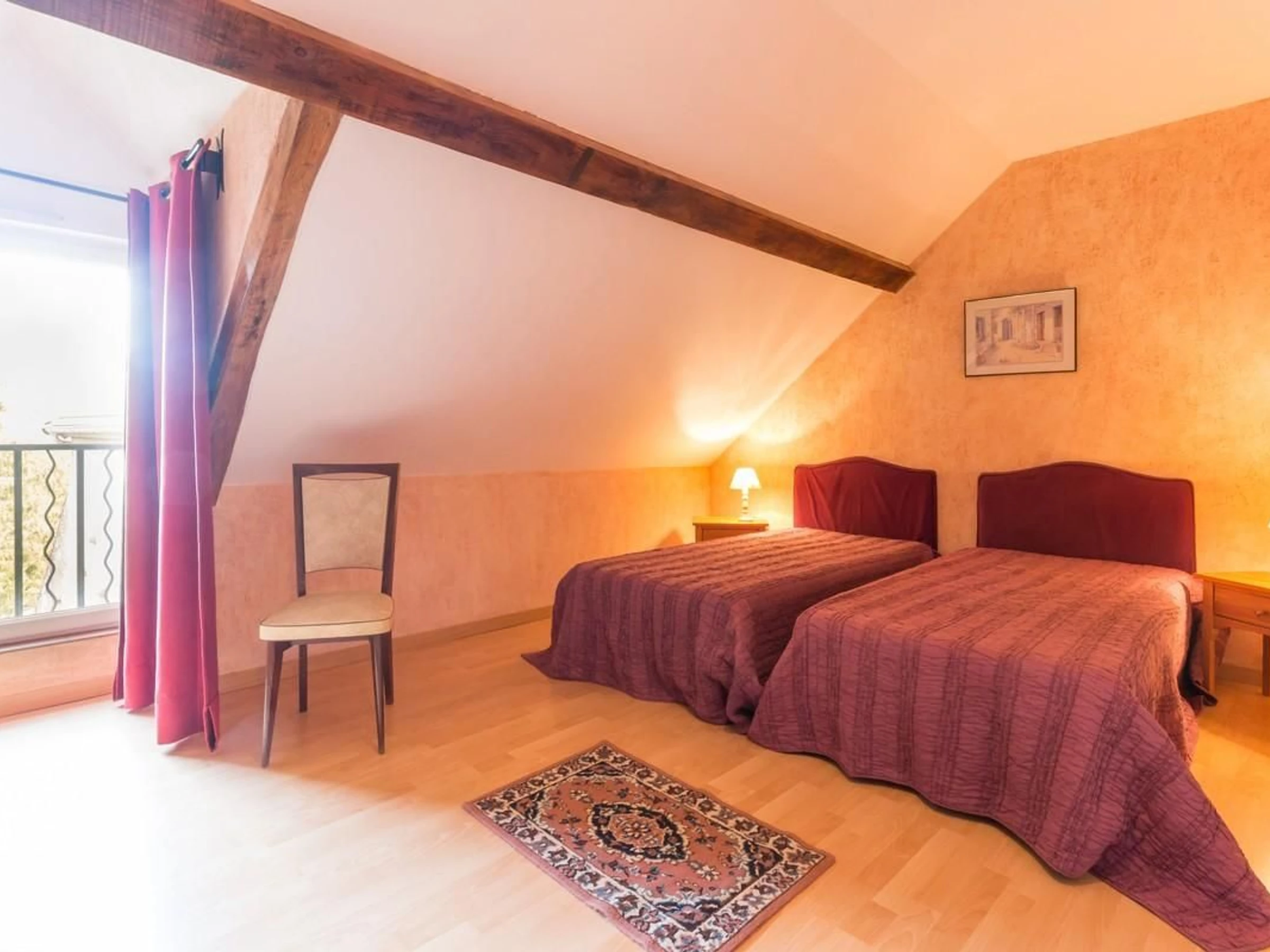 Upstairs: one bedroom with one queen-size bed, one bedroom with two twin single beds, and one bedroom with three single beds, two of which can be twinned. Shower room and separate WC. Terrace. Ping-pong table, table football. Enclosed courtyard and large shaded 600 m² garden with a swing. One pet allowed. Bicycles can be stored in the gîte's basement.