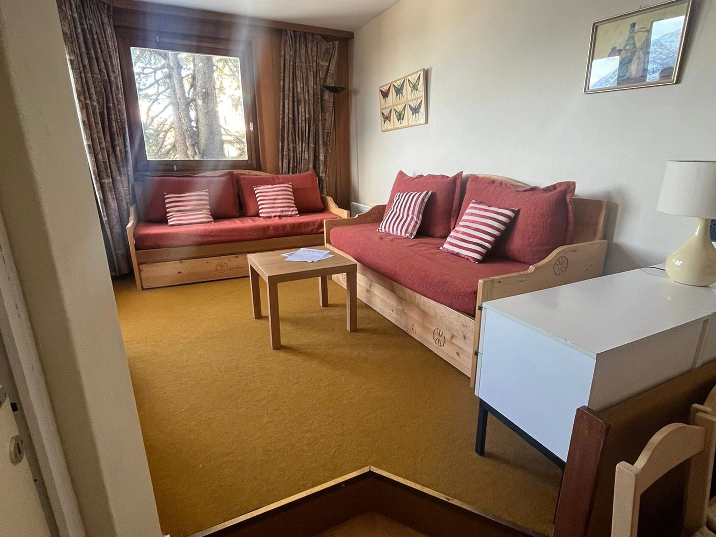 Living/dining room with a pull-out sofa bed (2x90x190) and a single bed opening onto the balcony
