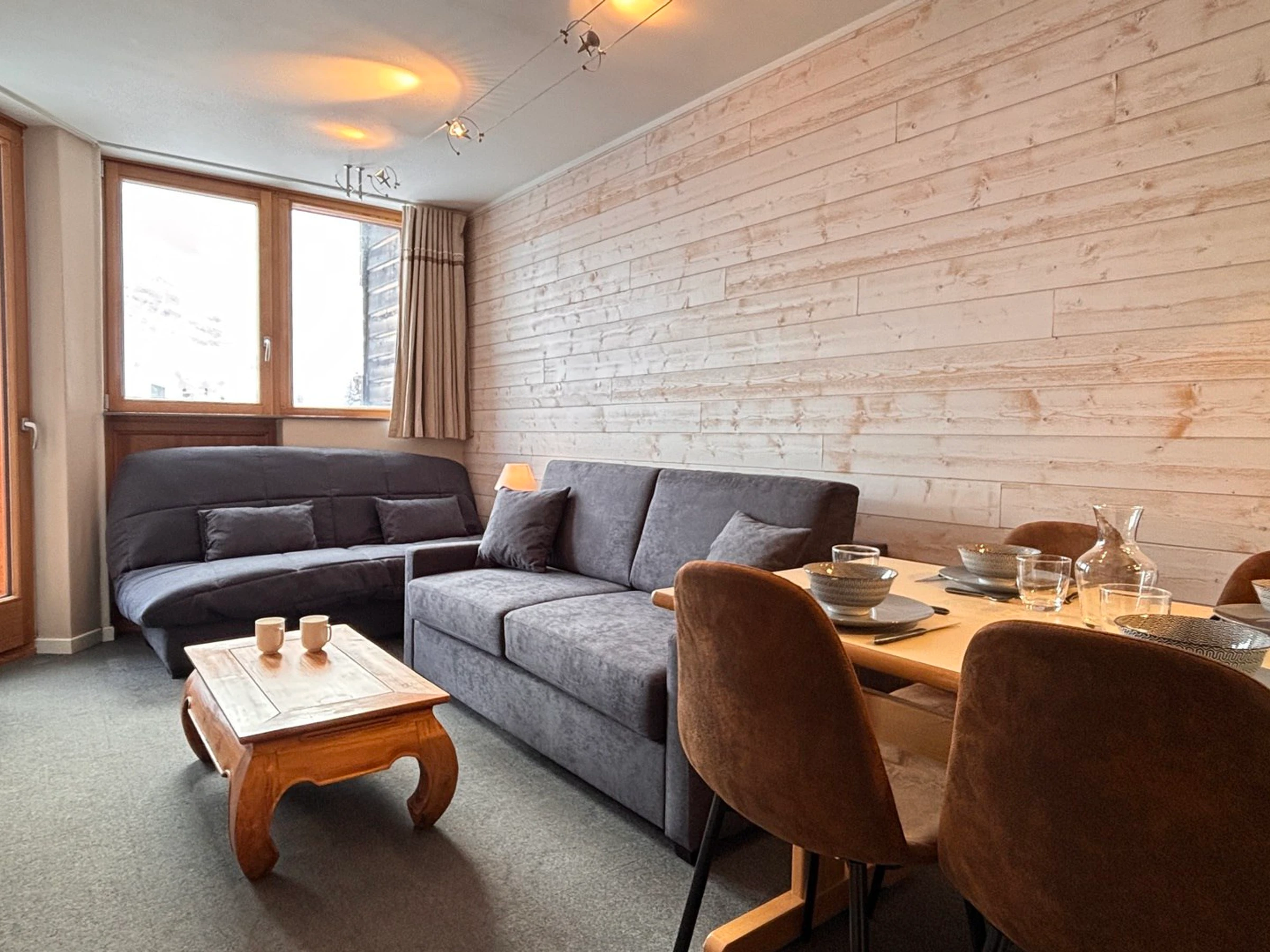 2-room apartment for 4 to 5 people (ideally for a family of 2 adults + 2 children) on the 4th floor of the "Les Fontaines Blanches" residence with south-west facing balcony, view of the resort, located in the heart of the resort you are close to the shops, the tourist office, the ski lift offices, the Children's Village and the ESF gathering.