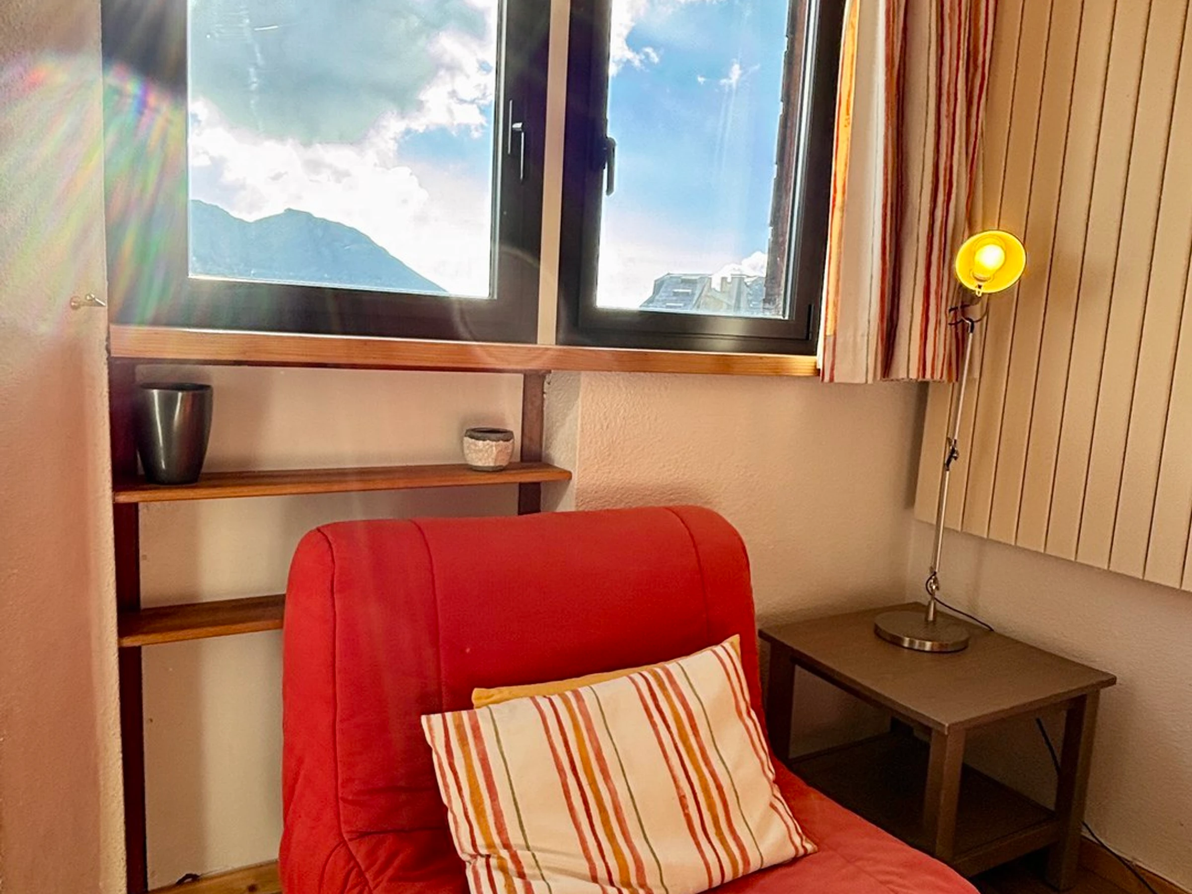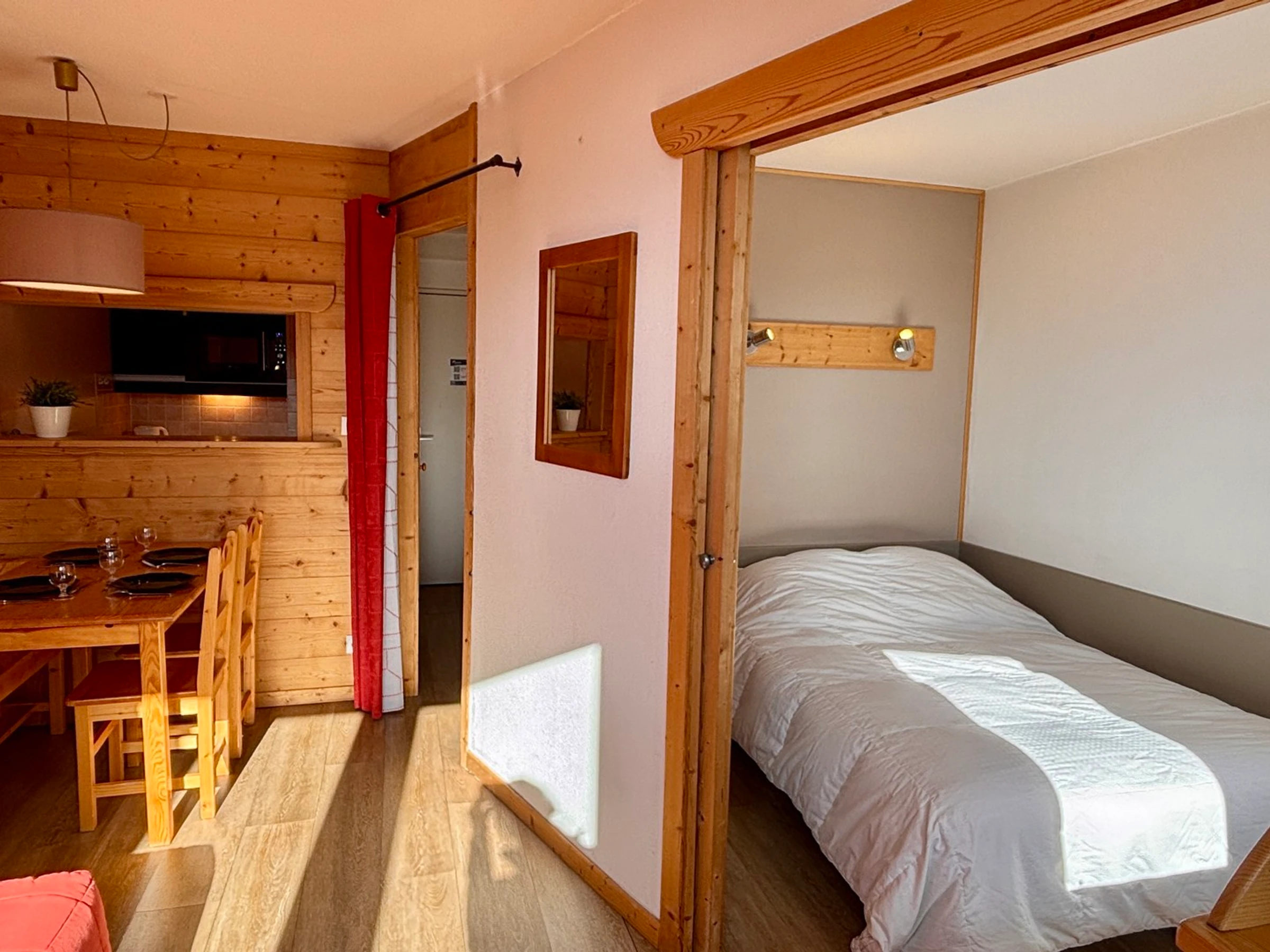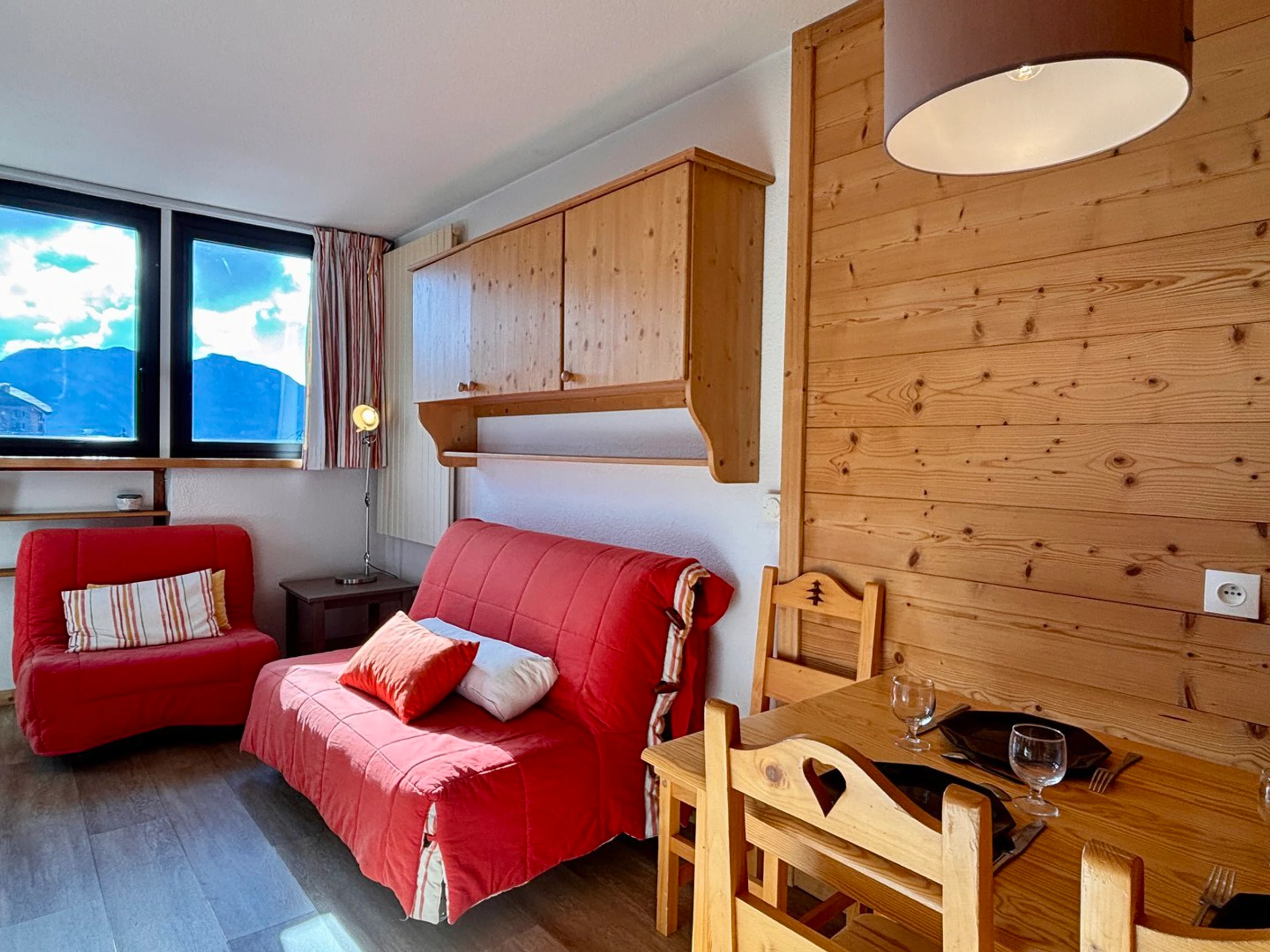 2 room apartment for 4 people, on the 4th floor of the residence Les Fontaines Blanches with balcony, overlooking the resort, located in the heart of the resort. You are in the immediate proximity of the shops, the tourist office, the ski lifts, the Children's Village and the ESF meeting point.