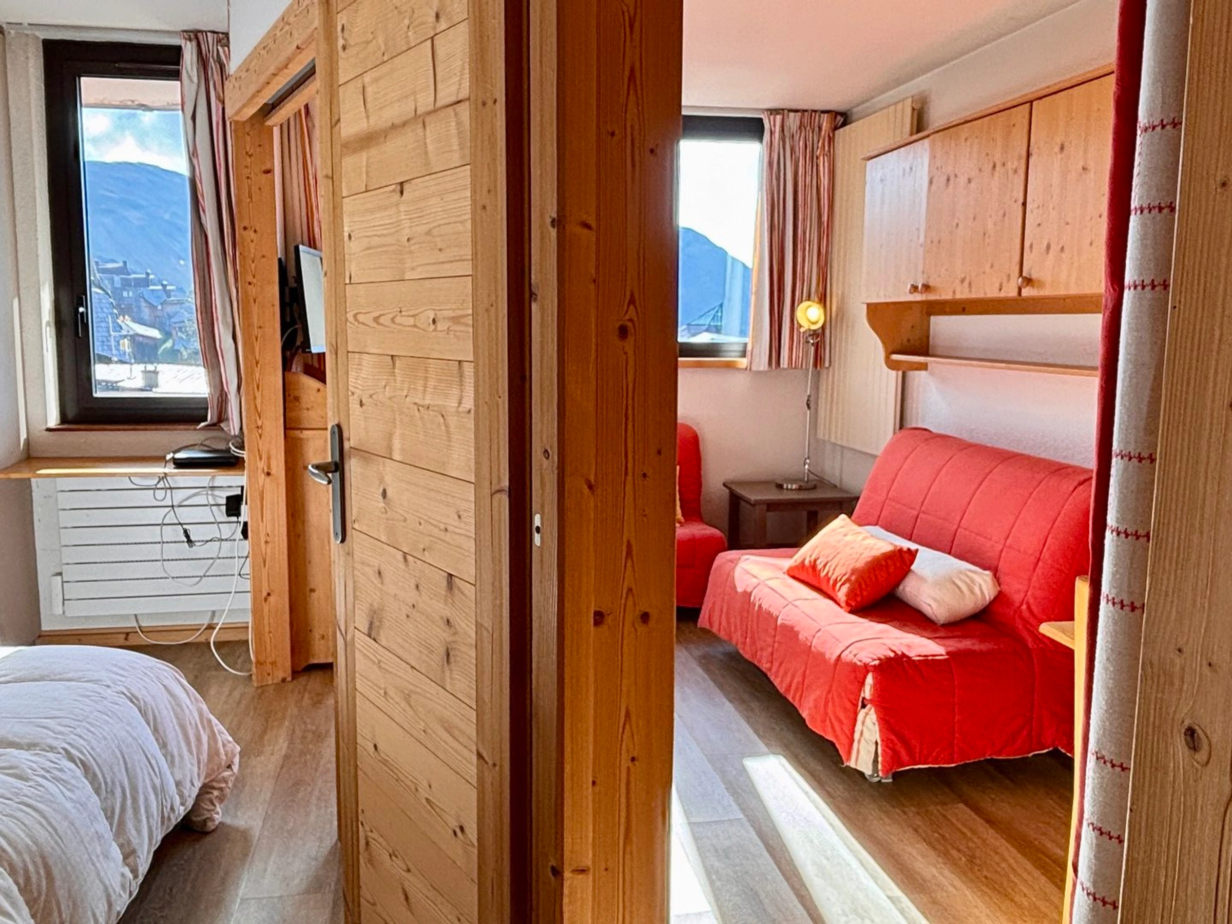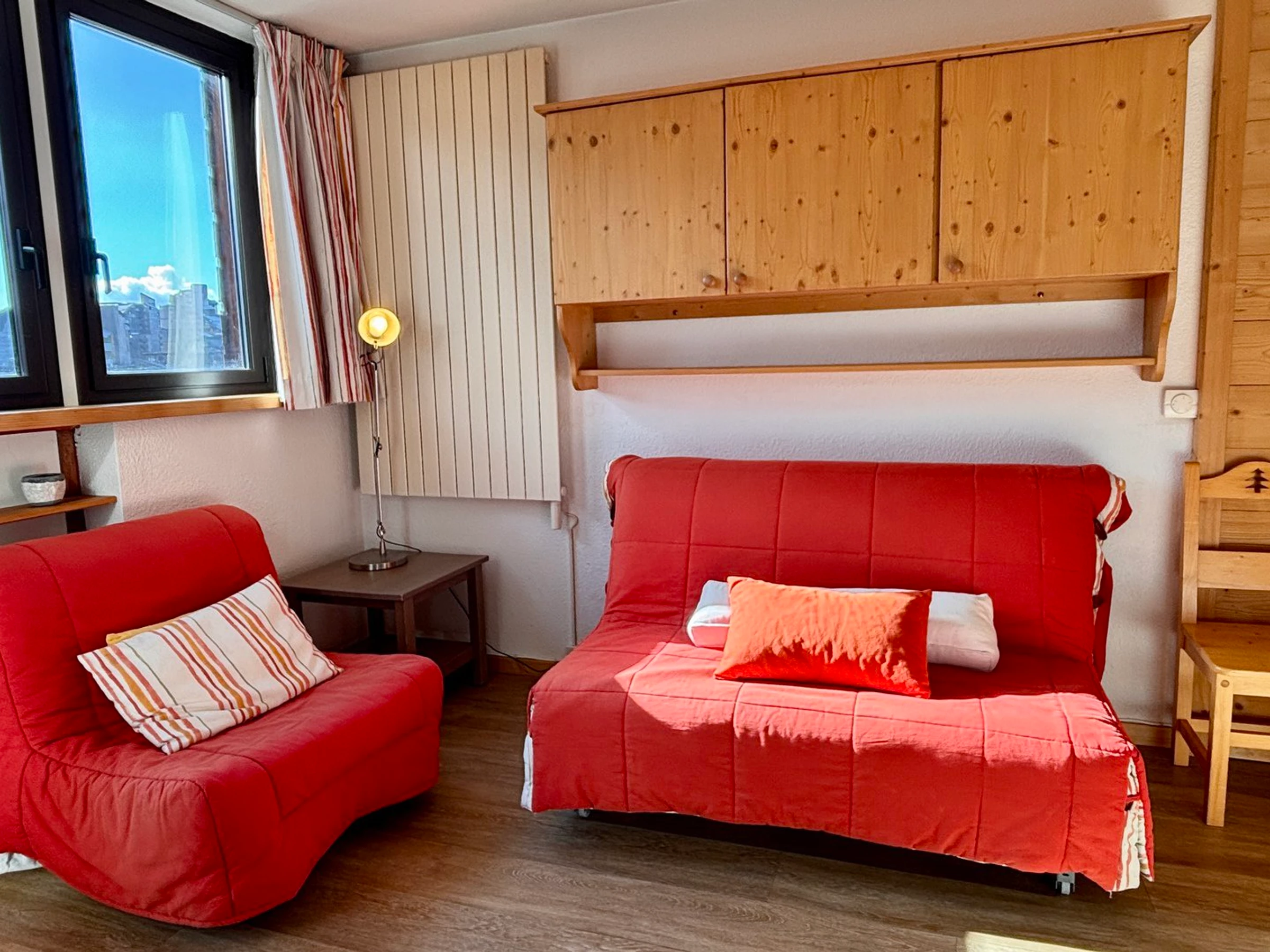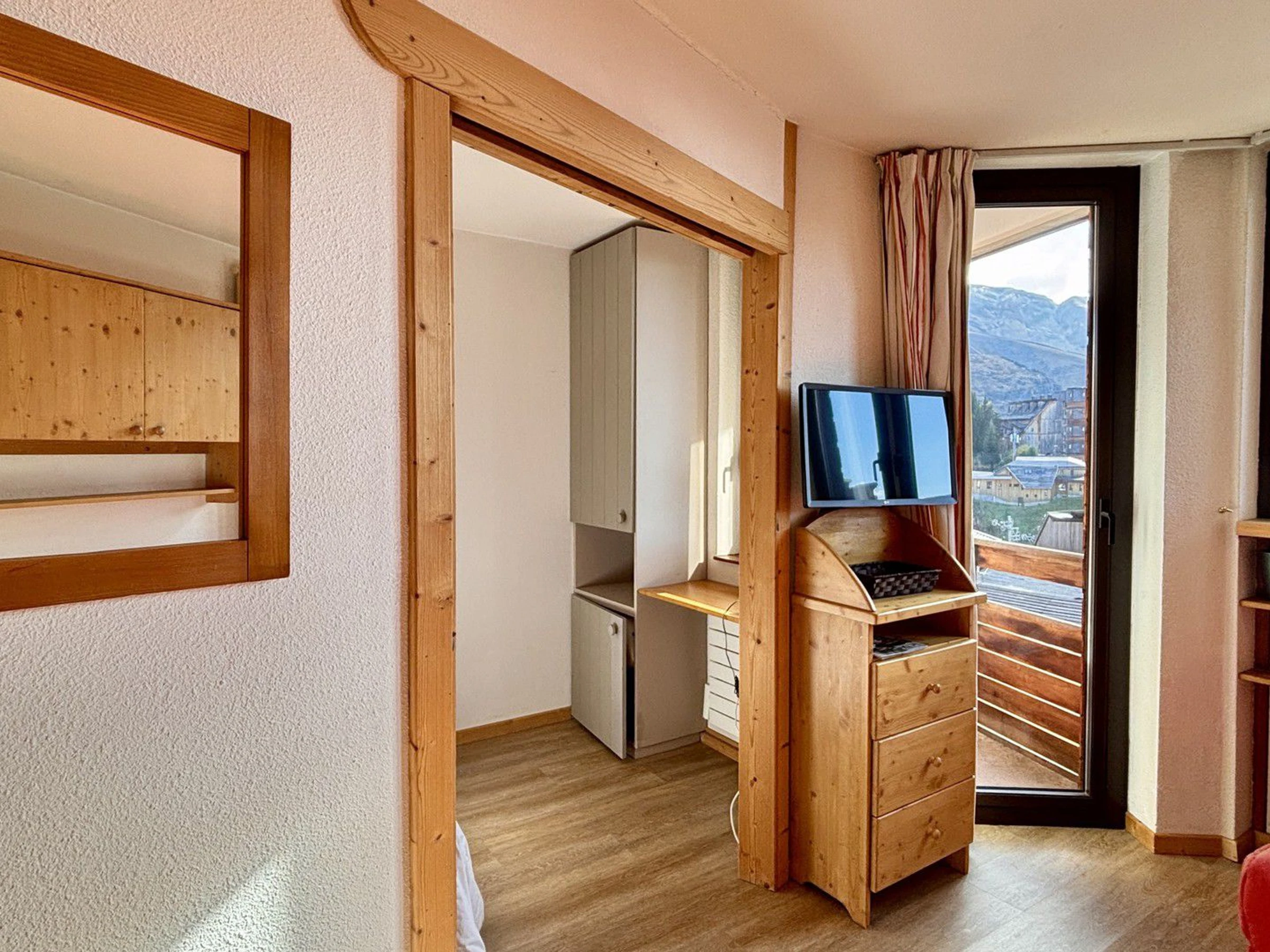 2 room apartment for 4 people, on the 4th floor of the residence Les Fontaines Blanches with balcony, overlooking the resort, located in the heart of the resort. You are in the immediate proximity of the shops, the tourist office, the ski lifts, the Children's Village and the ESF meeting point.