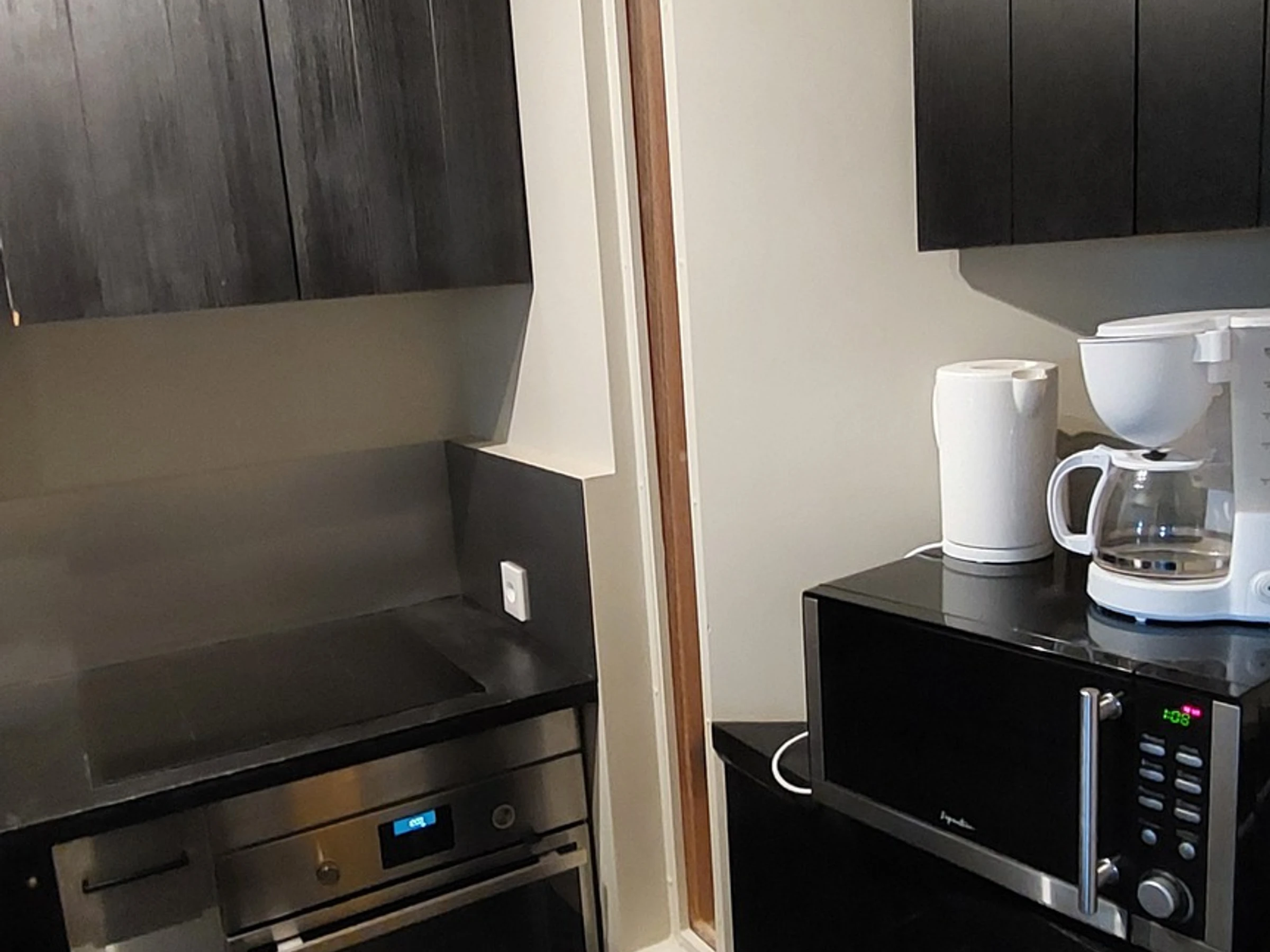 One fully equipped kitchen with oven, microwave, dishwasher, electric hob and fridge.