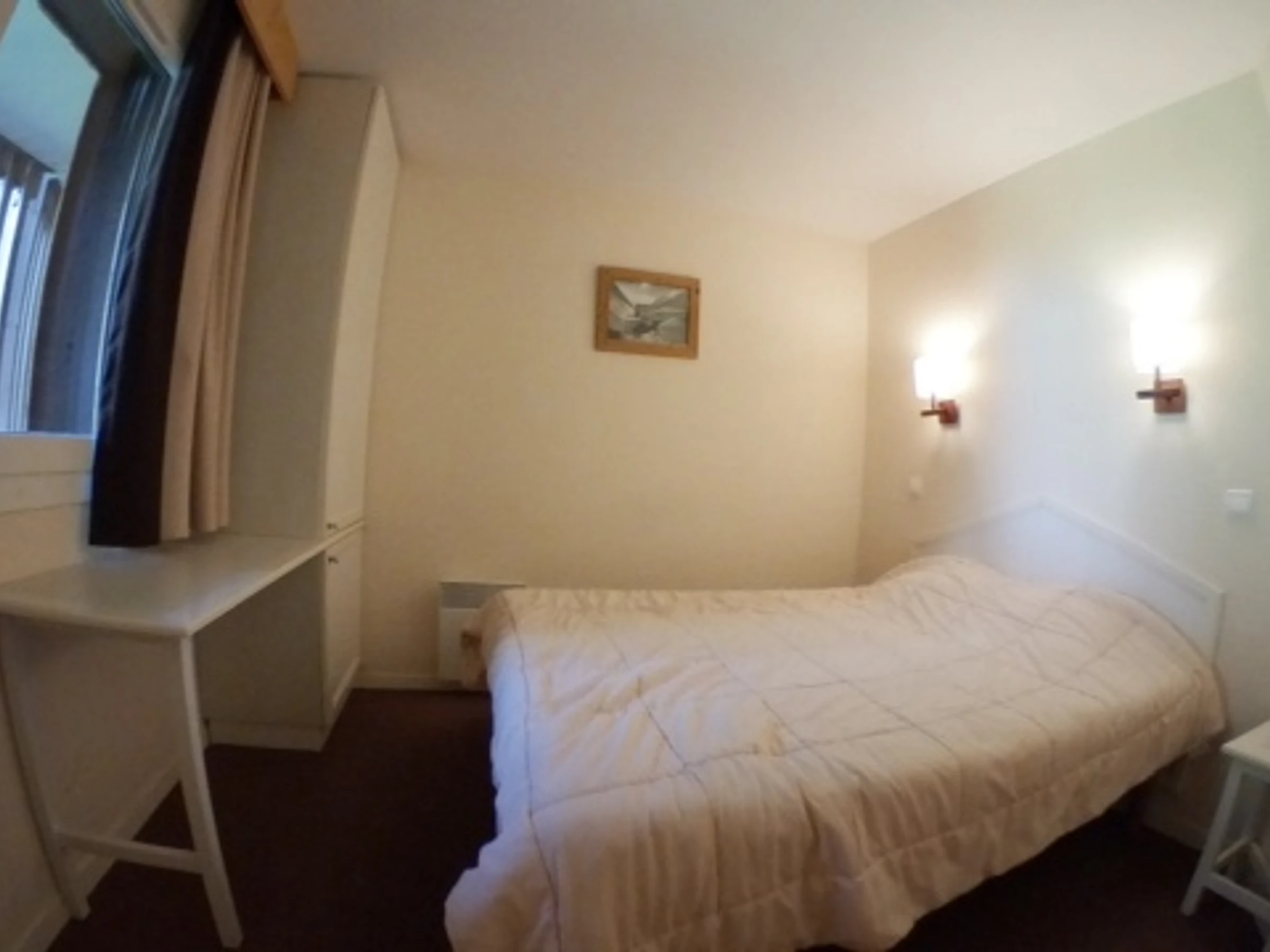 two simple banquettes of a person 90cm and access to the balcony.