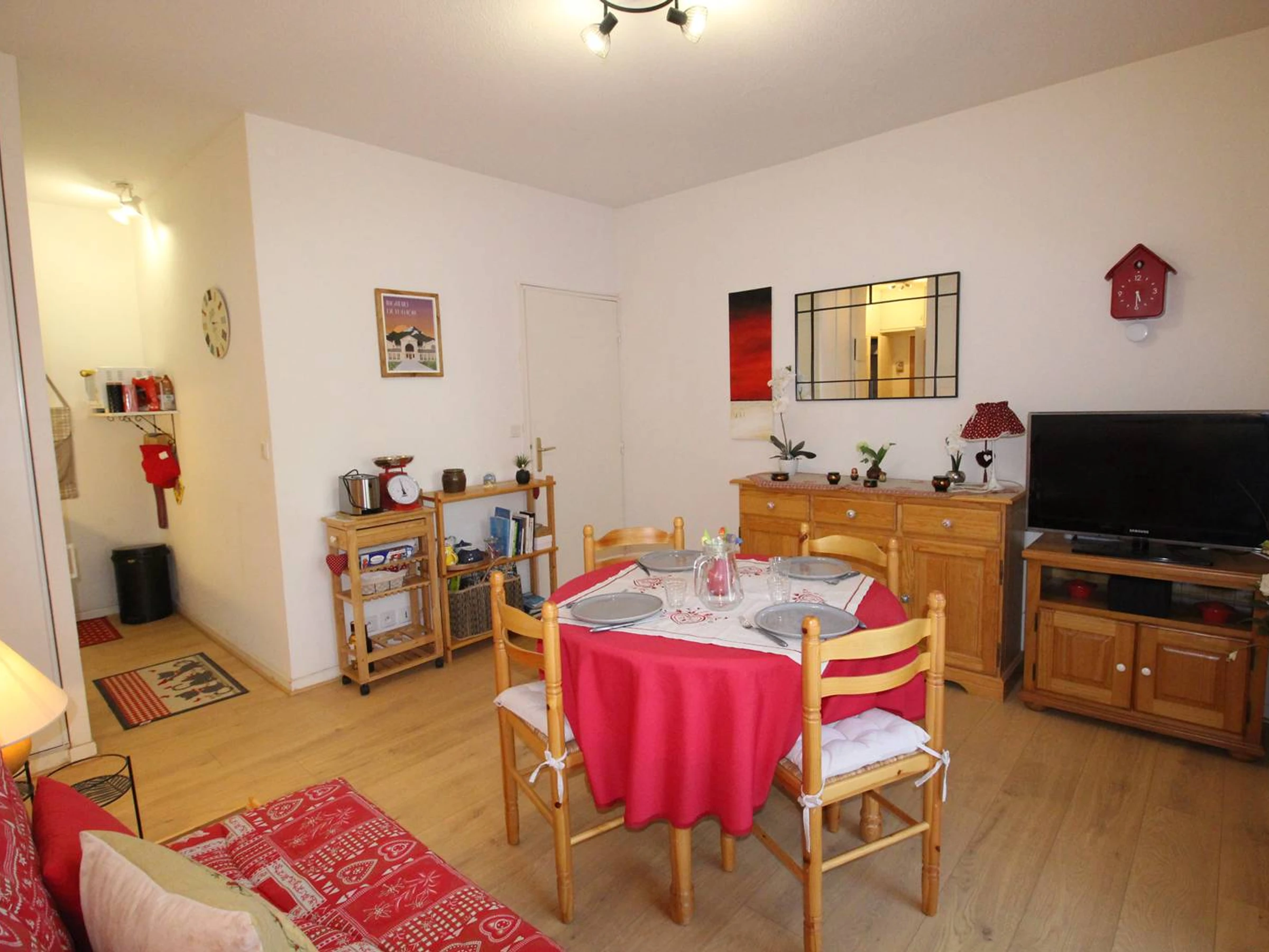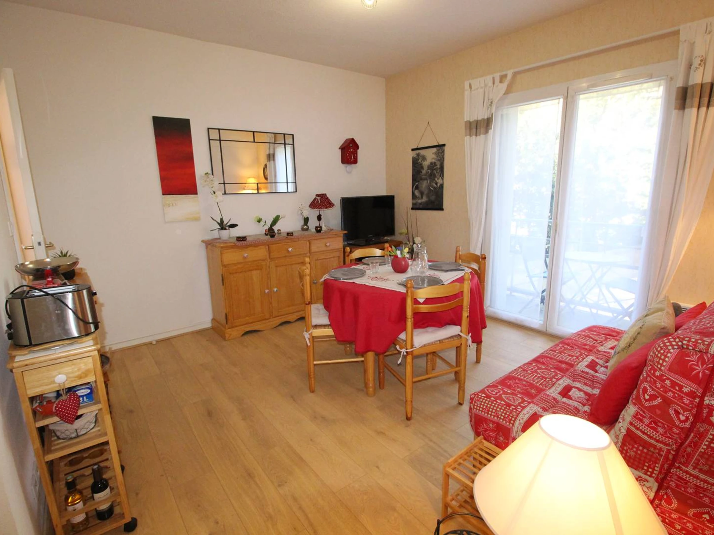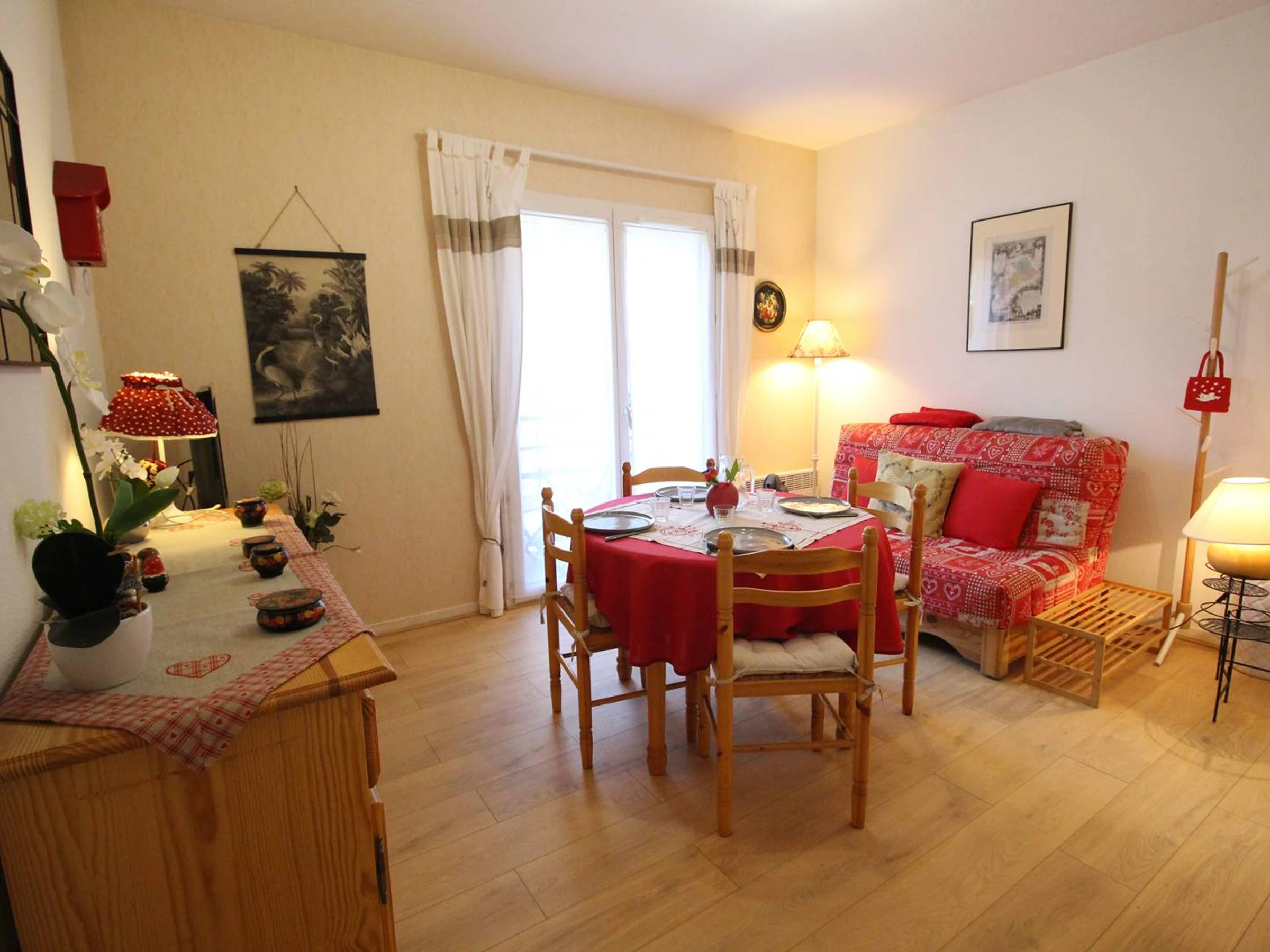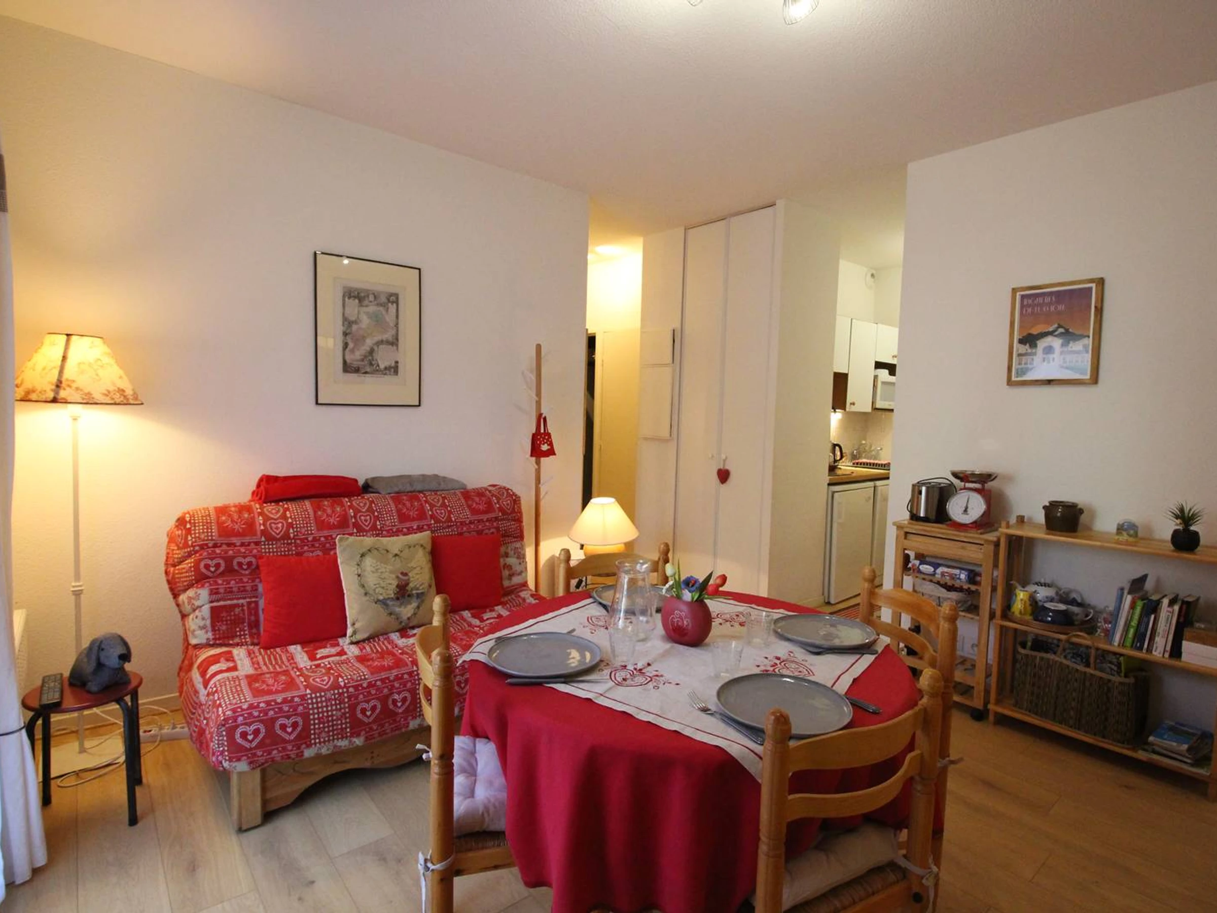 Quiet 2-bedroom apartment for 4 people, 34 m², located on the 2nd floor with elevator, 50 meters from the thermal baths. Small balcony.