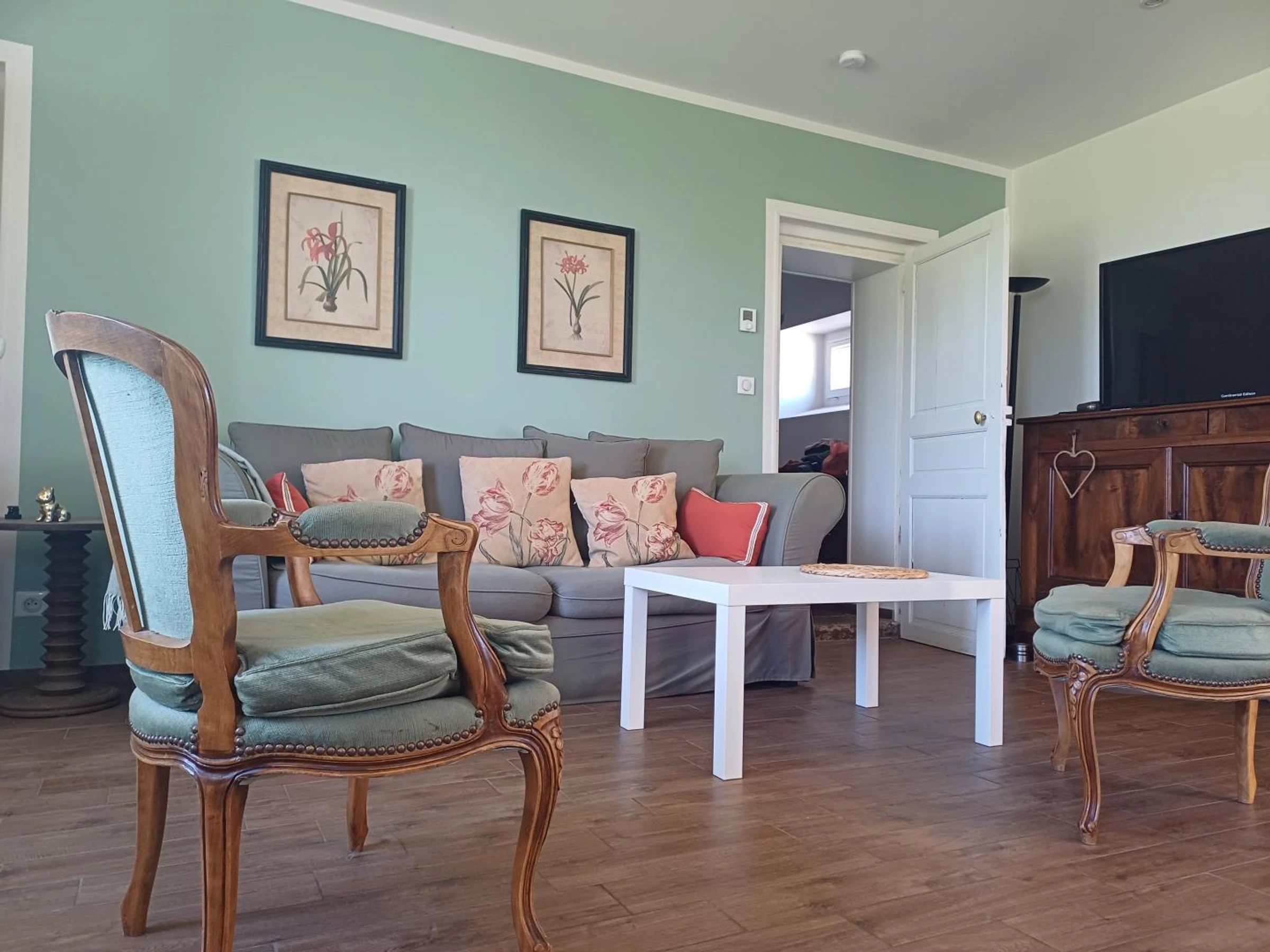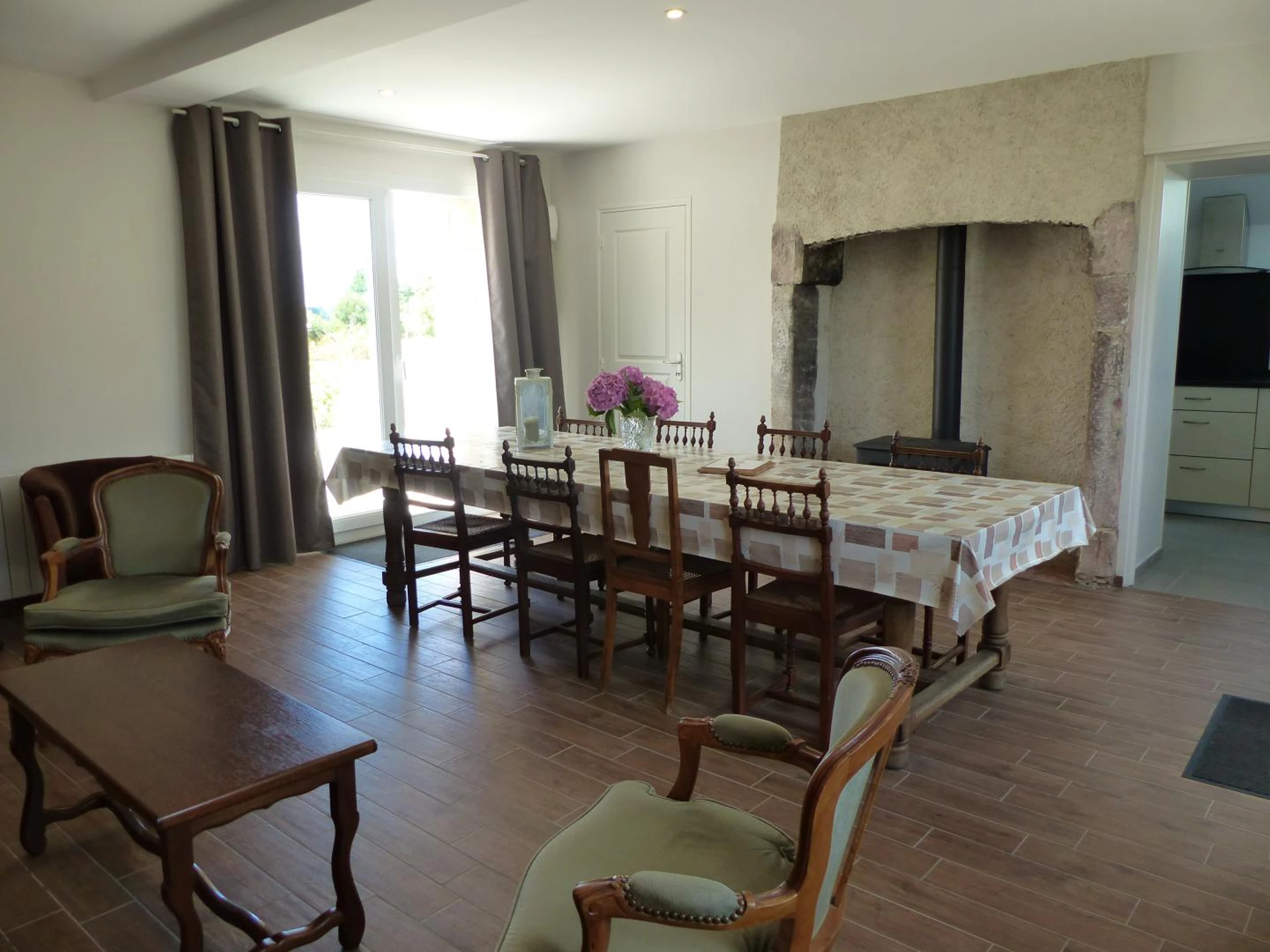 The interior design pleasantly combines antique furniture with the comfort of modern materials. Ground floor: Kitchen, living room with wood-burning stove (wood provided), 1 family suite with private shower room (walk-in shower), small lounge with TV, WC, laundry room (washer-dryer).