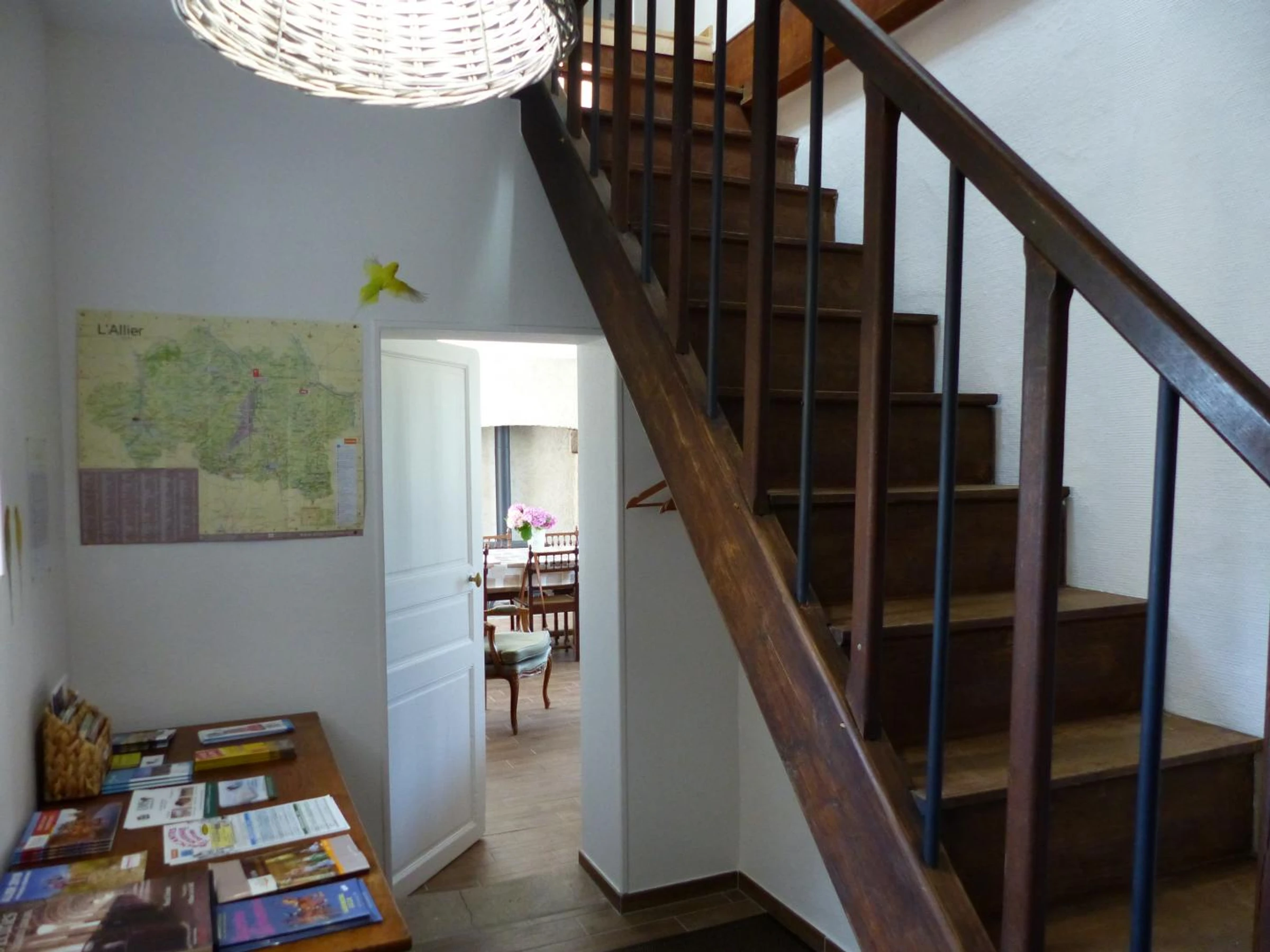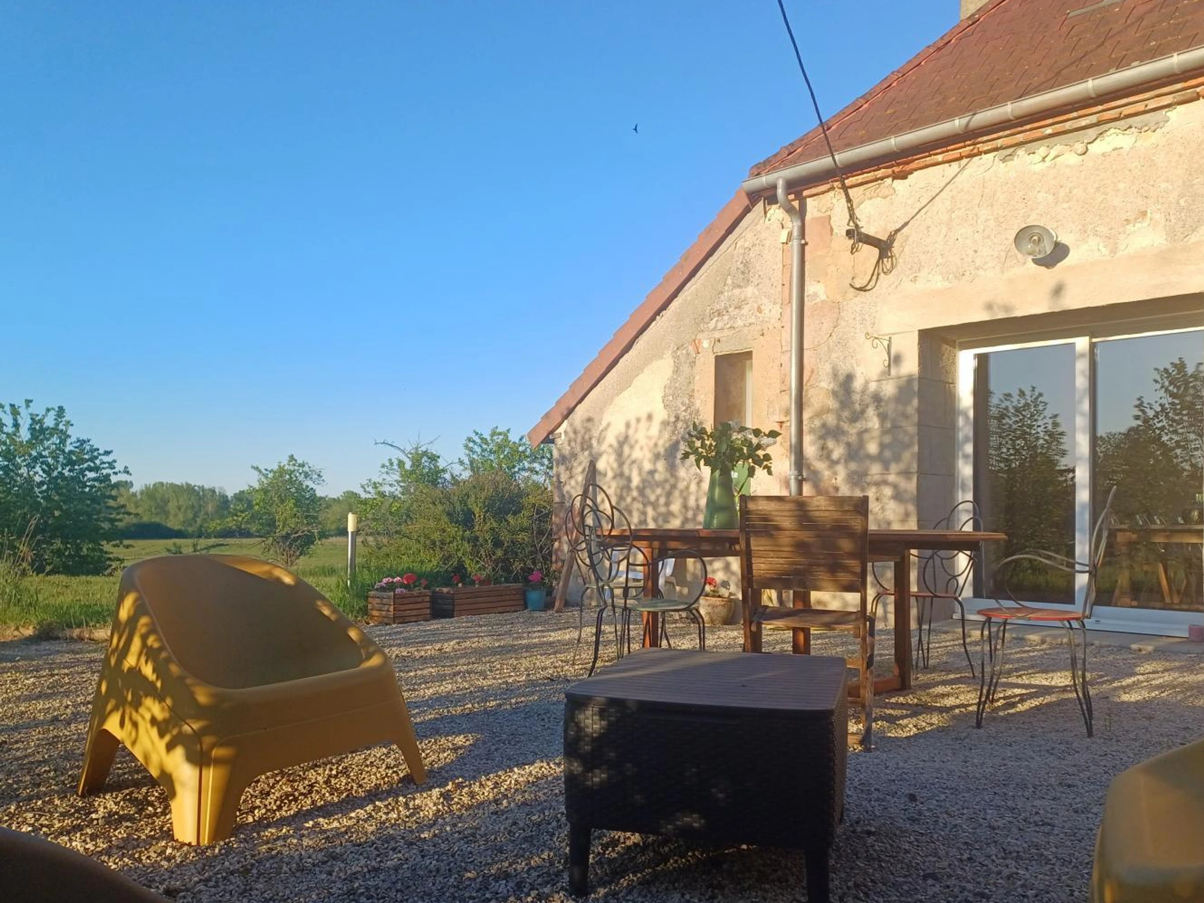 Upstairs: 2 bedrooms (1 double bed 140x190 cm), 1 bedroom (2 single beds 90x190 cm), bathroom (bathtub), separate WC. Electric heating. Prepaid mobile phone available upon request. Large terrace. Large garden. The Allier River is 2 km away for fishing. Bagneux and Bagnolet forests are 5 km away (deer rutting season and mushroom hunting). Canoeing and kayaking are available nearby.