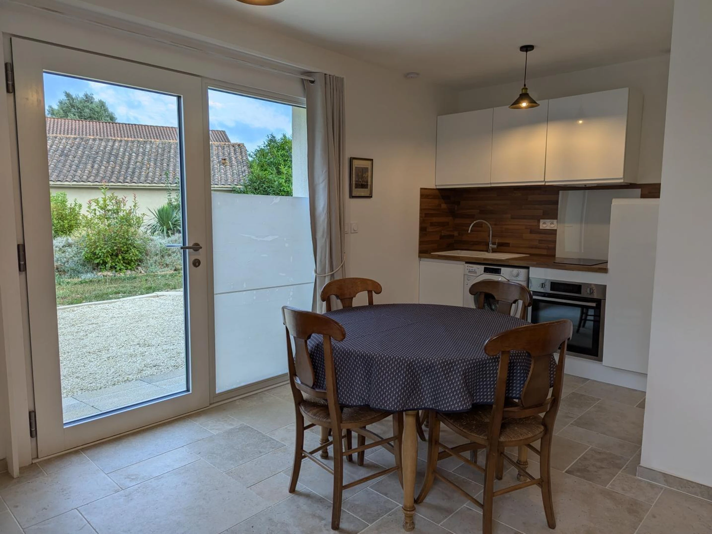 Private space, Cleaning fee applies, Ground floor, Bedroom on the ground floor, Washing machine, Linens provided, Barbecue/Griddle, Garden furniture, Television, Microwave, Baby equipment, On-site parking, Village area, Freezer, Wi-Fi/Internet, Garden, Towels provided.